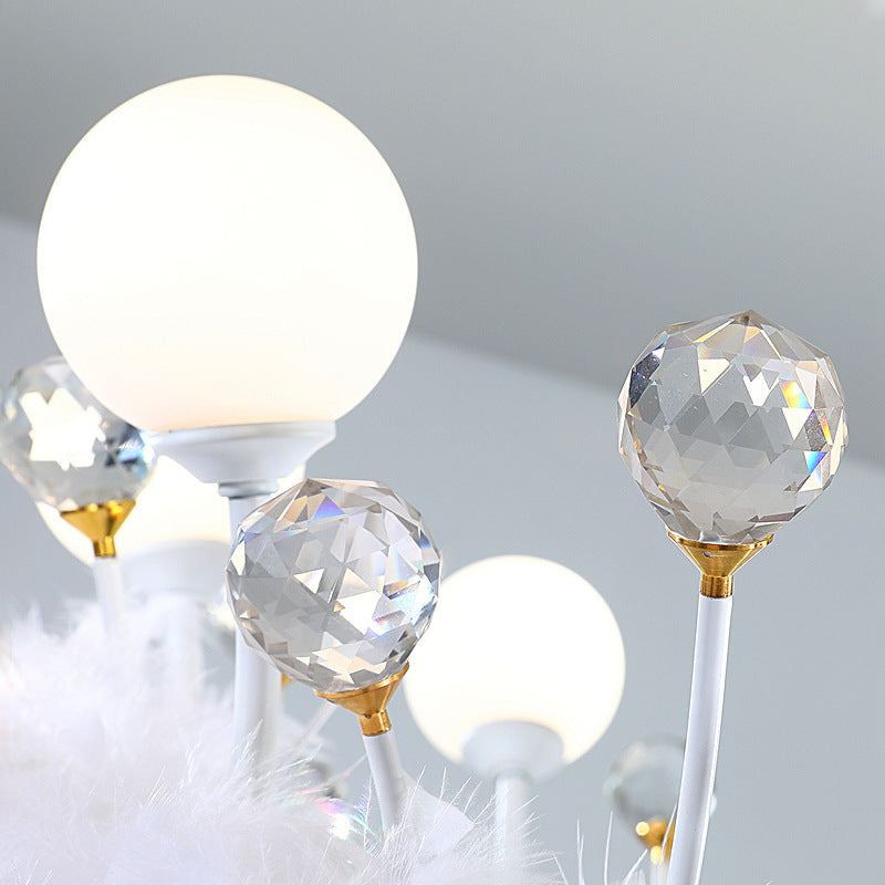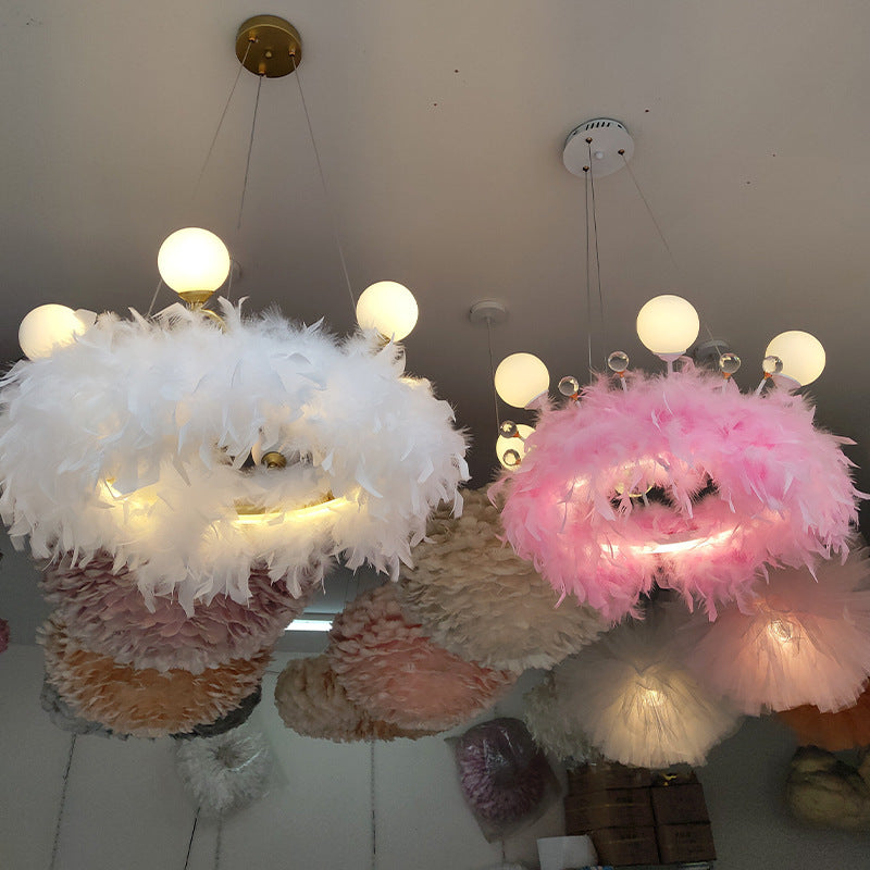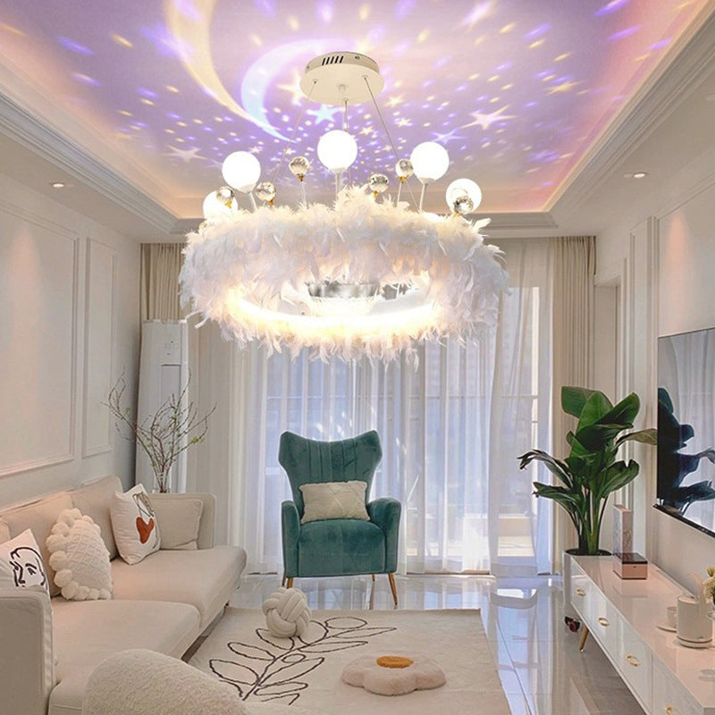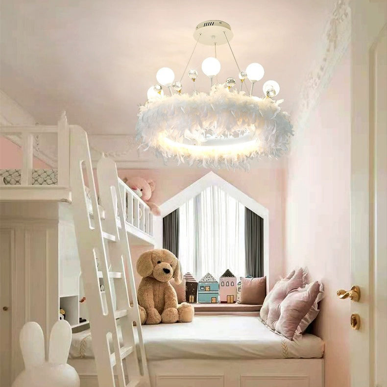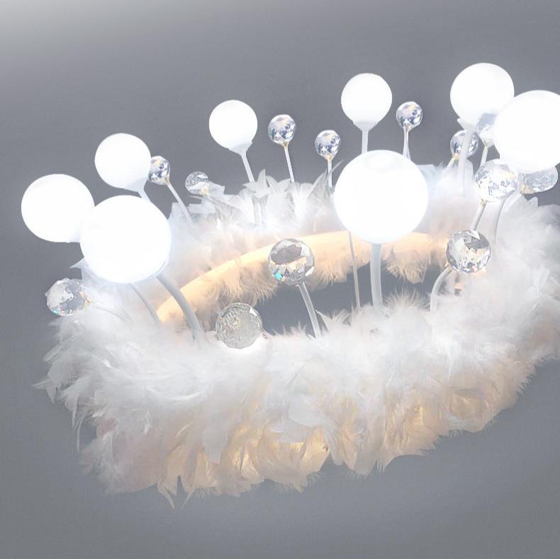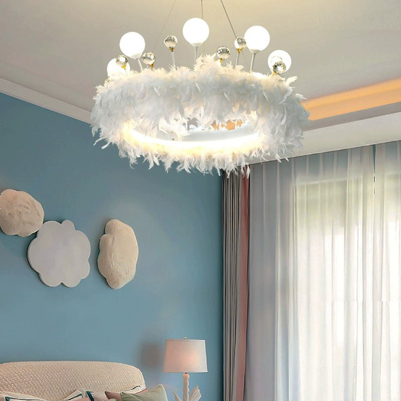 Contemporary Creative Crown Acrylic Ring Feather Decor LED Chandelier For Living Room