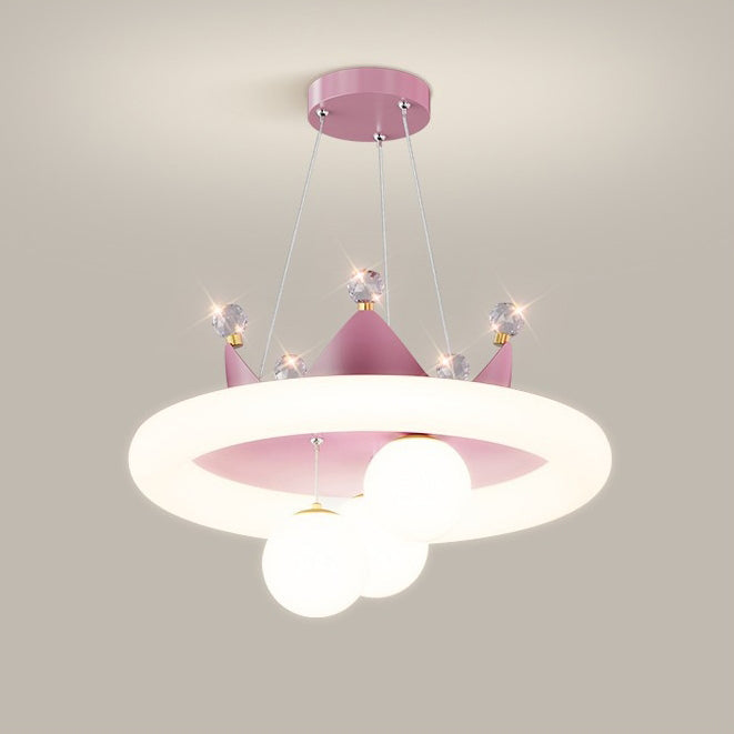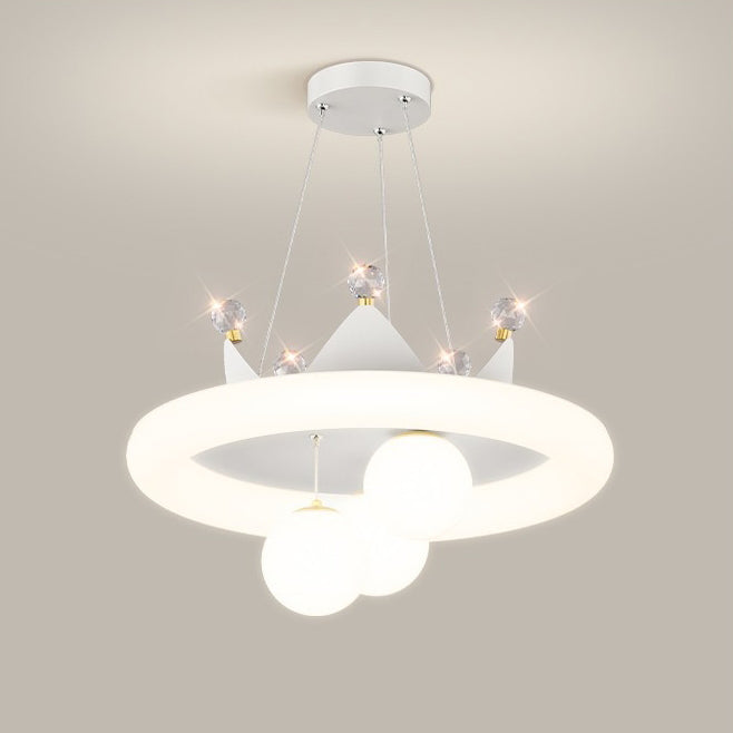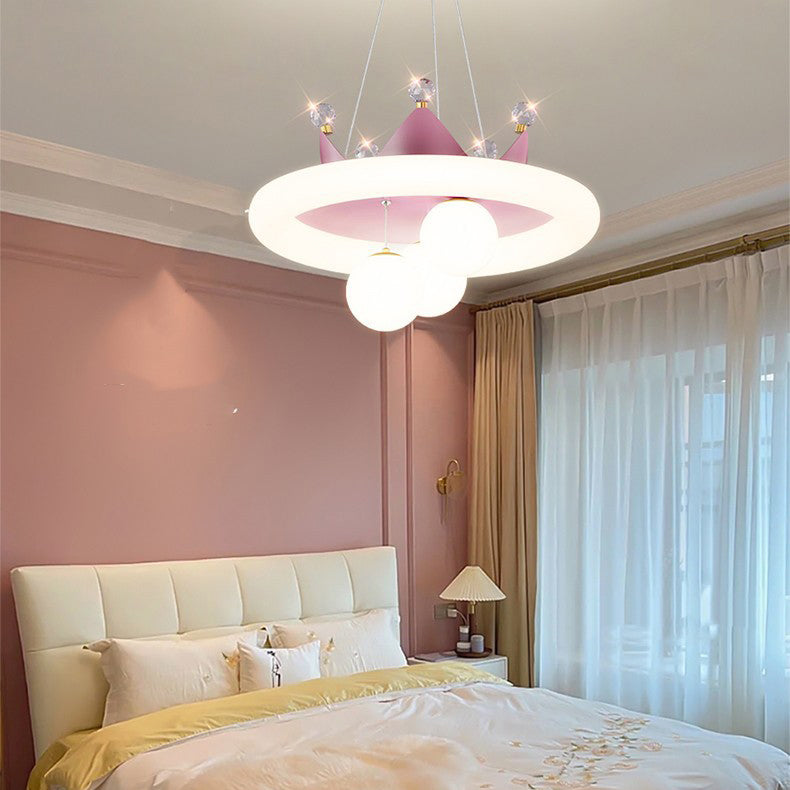 Contemporary Creative Crystal Crown PE Round Shade LED Chandelier For Bedroom