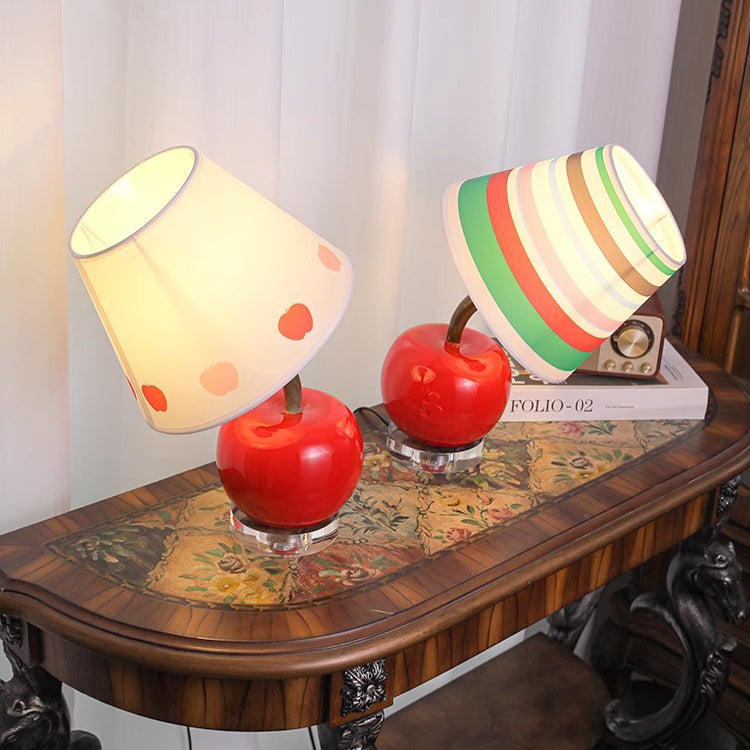 Contemporary Creative Cute Apple Rainbow Stripe Curved Ball Round Table Resin Hardware Fabric 1-Light Table Lamp For Bedroom