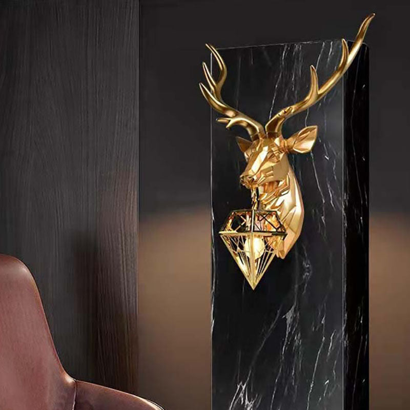 Contemporary Creative Deer Head Resin 1-Light Wall Sconce Lamp For Living Room