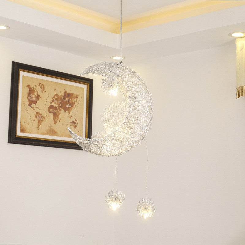Contemporary Creative Dome Moon Aluminum Wire Hardware 6 - Light Pendant Light For Bedroom