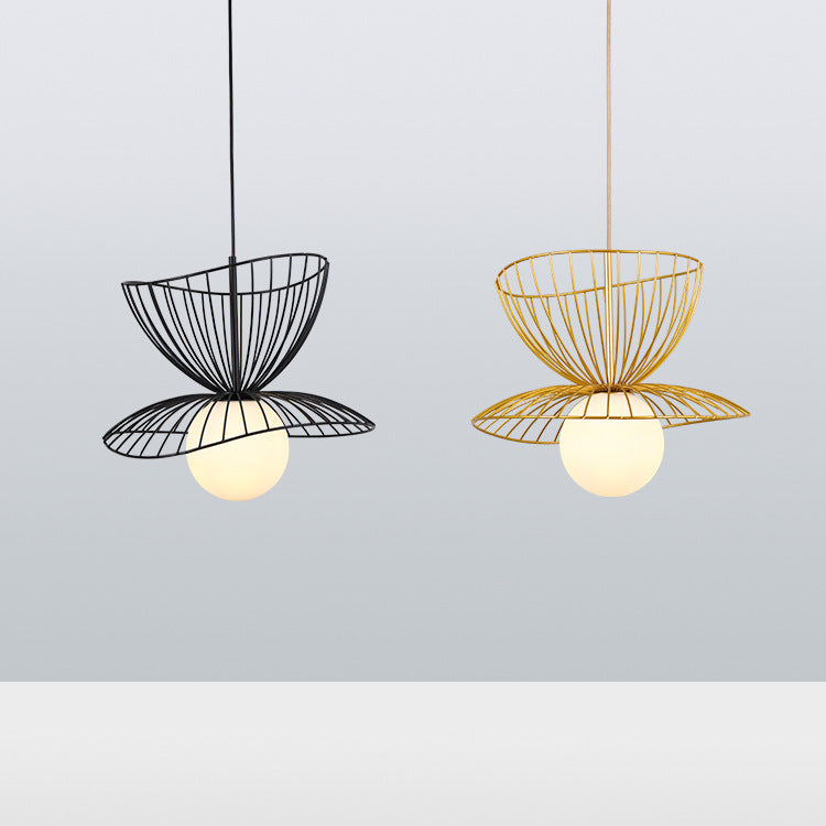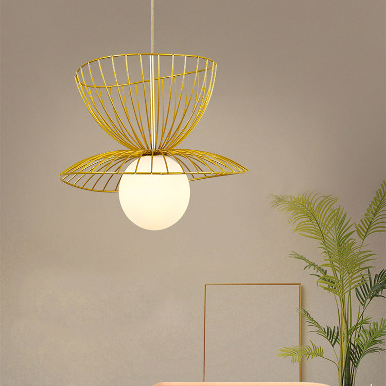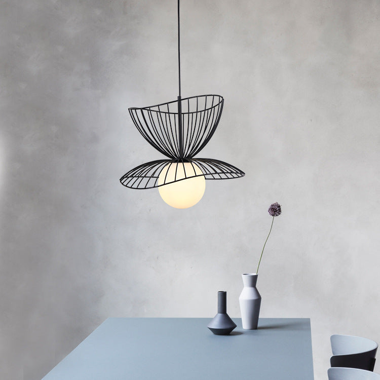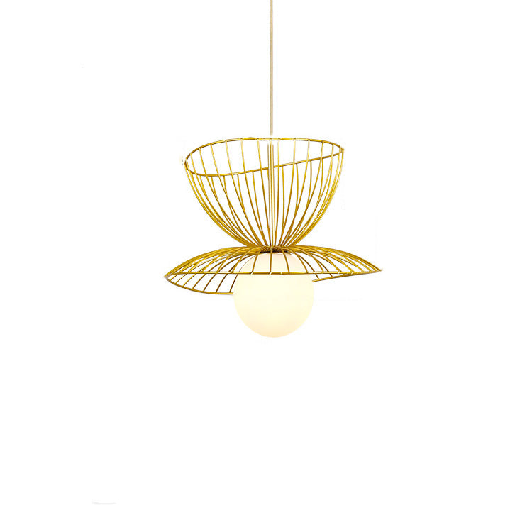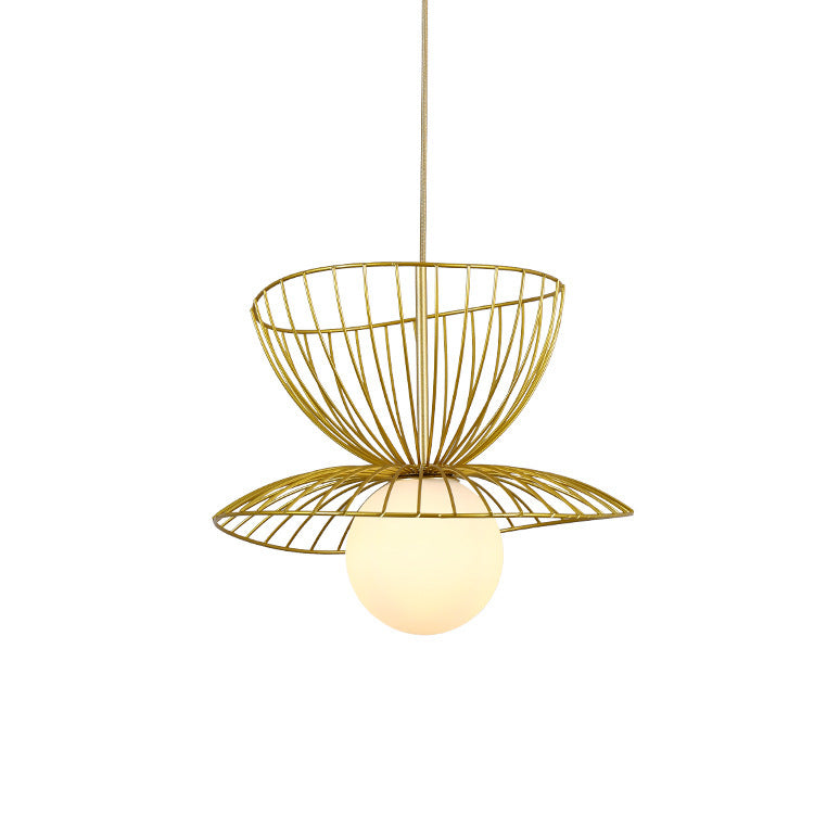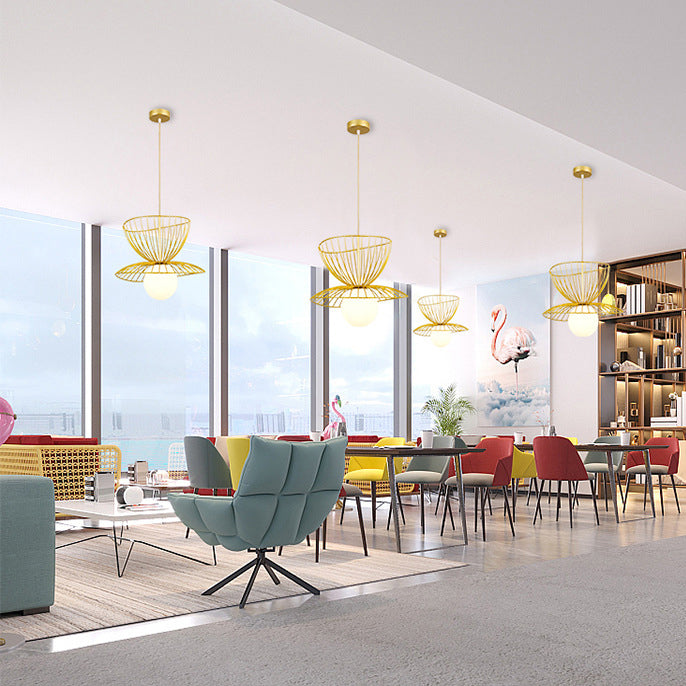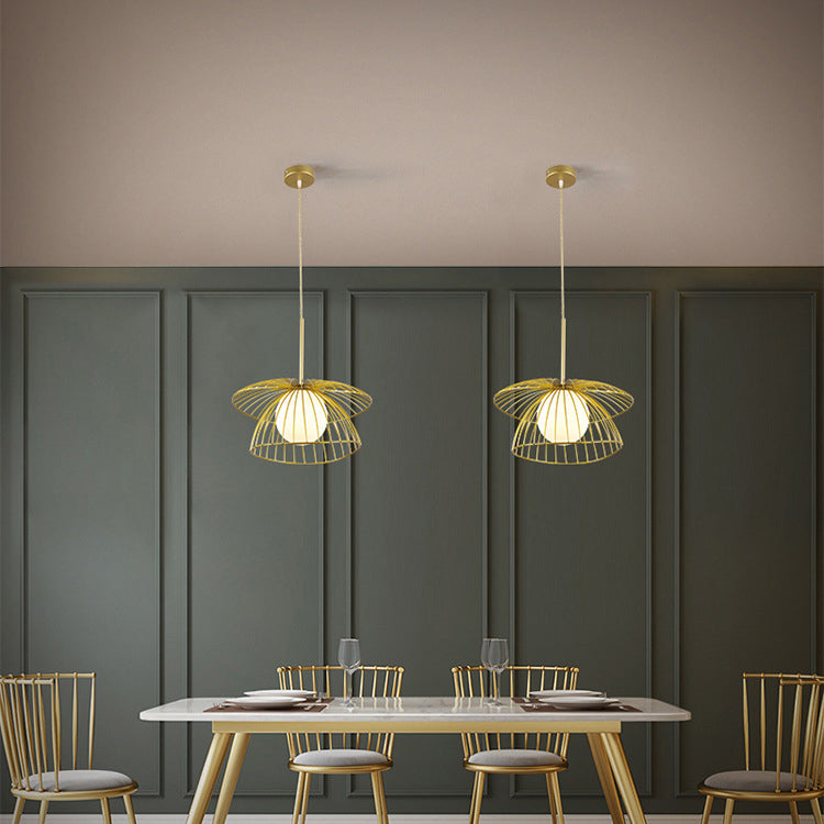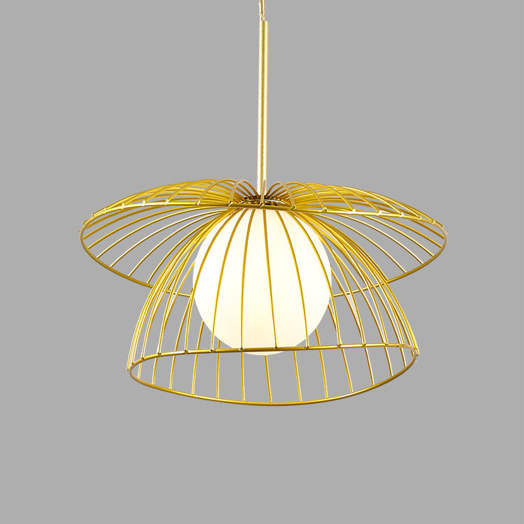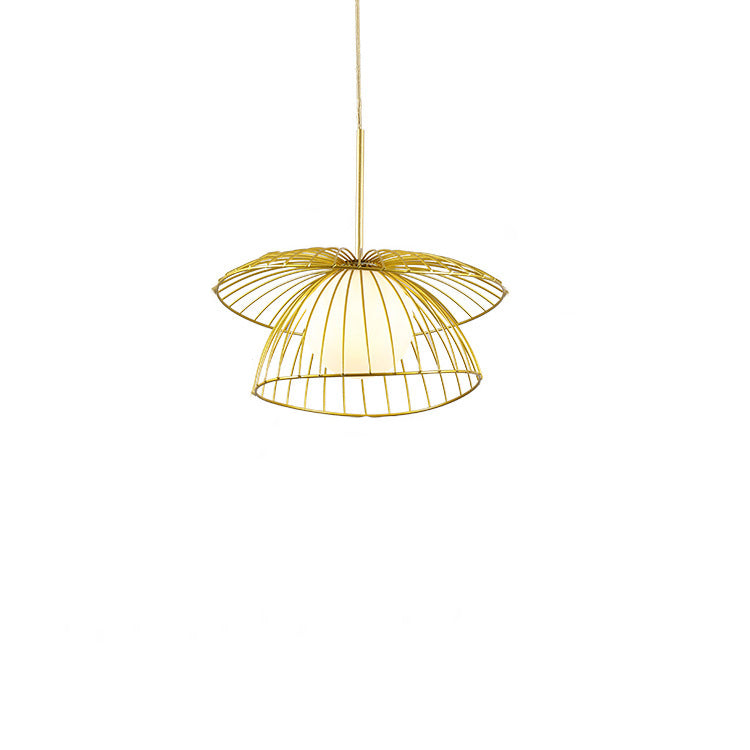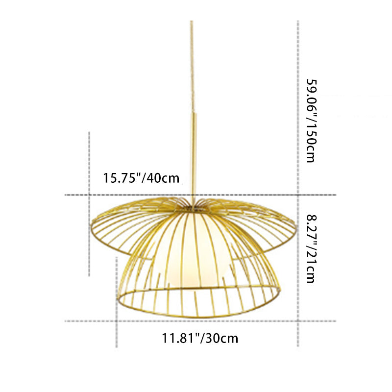 Contemporary Creative Double-Layer Straw Hat Stacking Hardware Acrylic 1-Light Pendant Light For Living Room