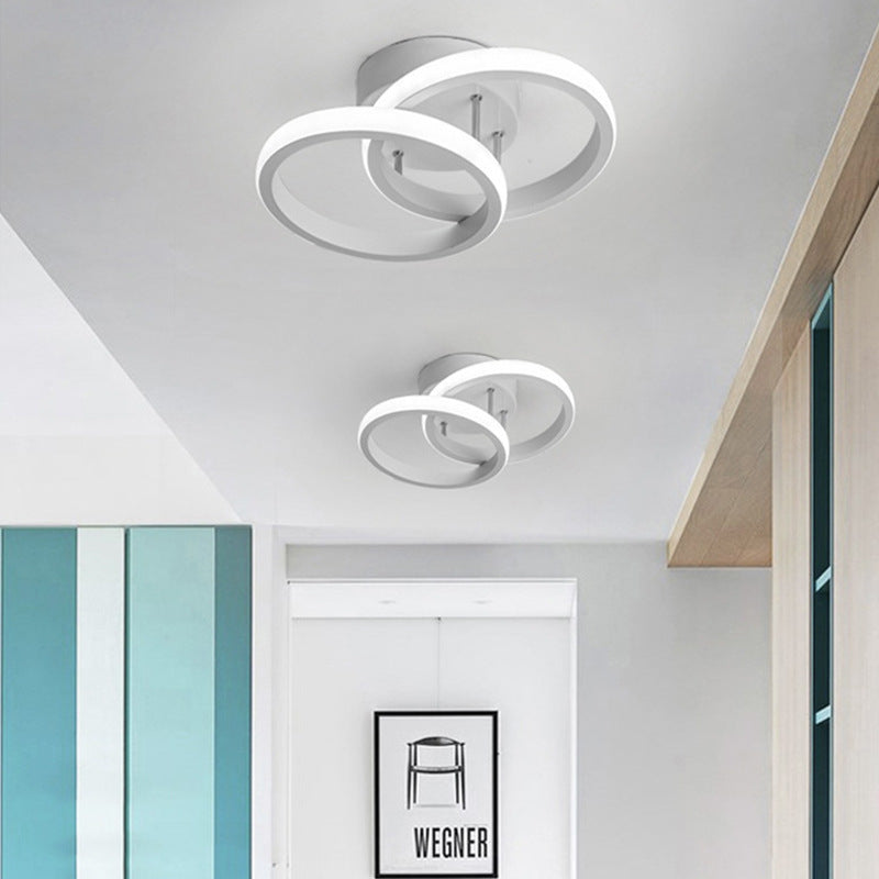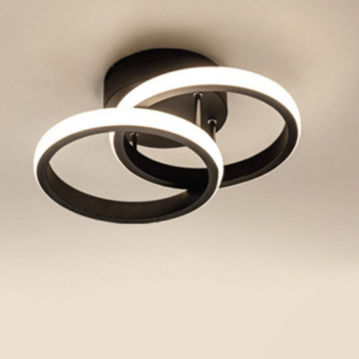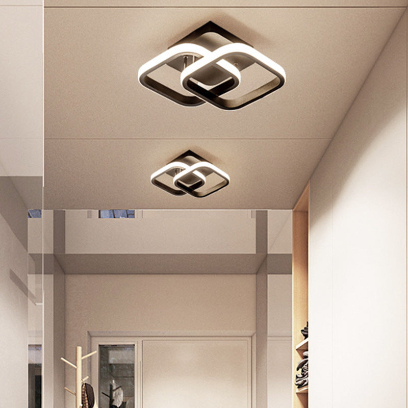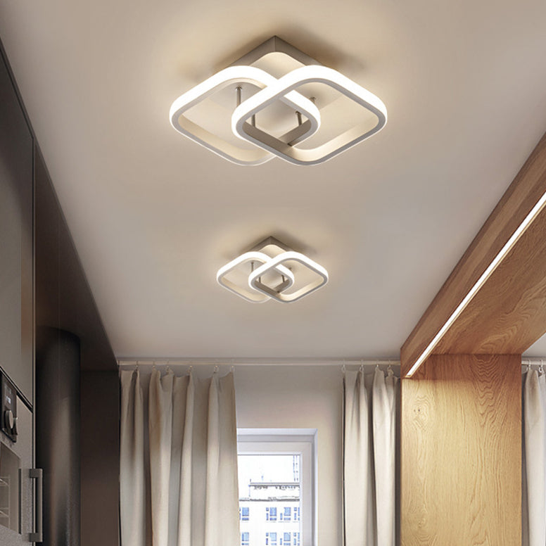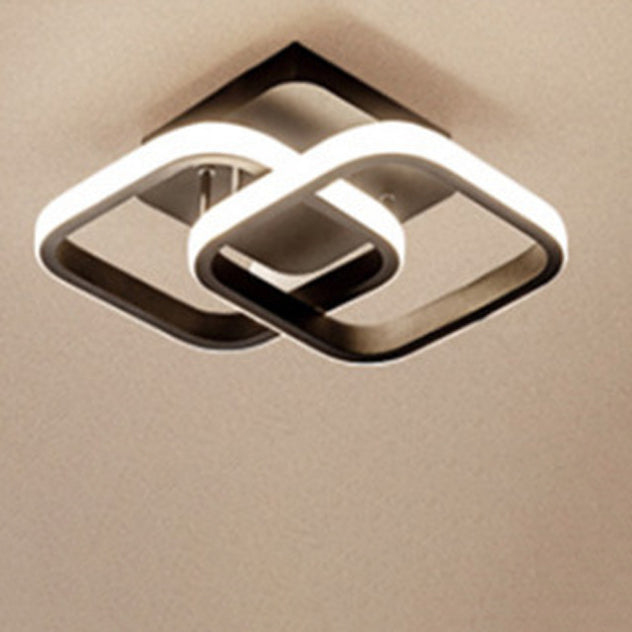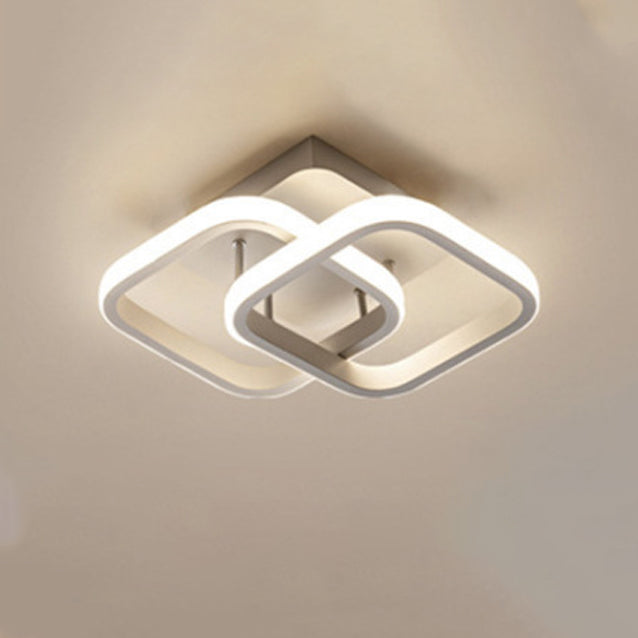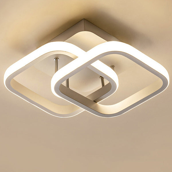 Contemporary Creative Double Square Round Iron Acrylic LED Semi-Flush Mount Ceiling Light For Bedroom