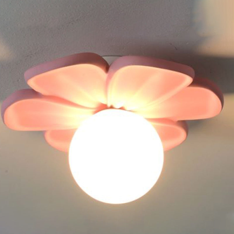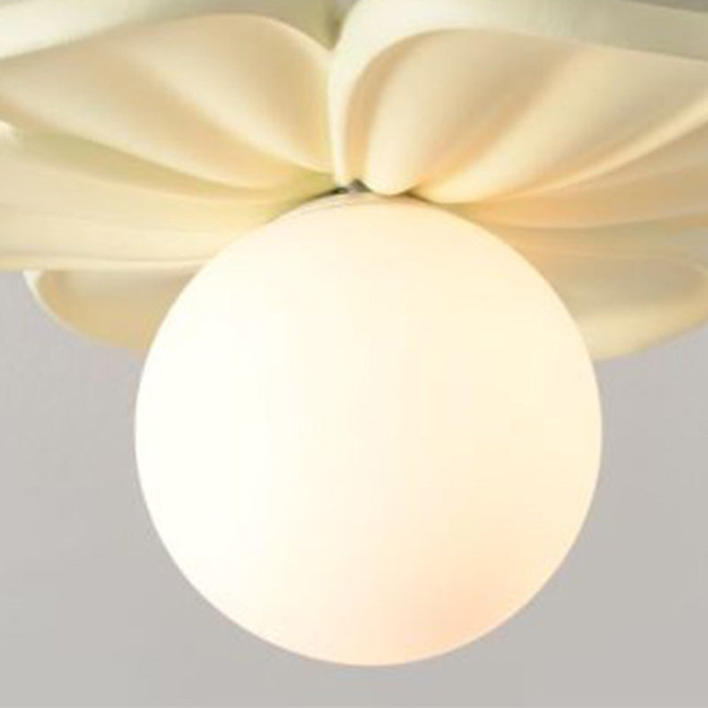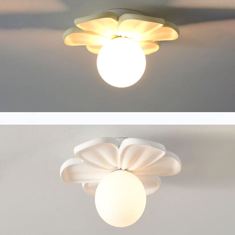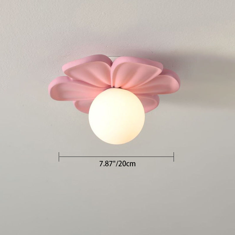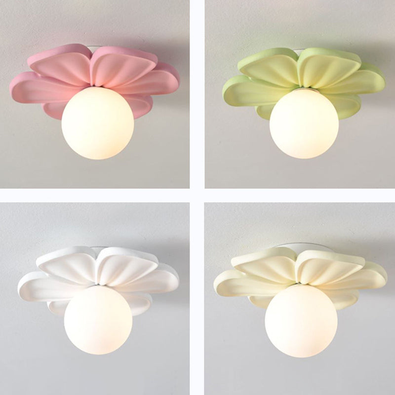 Contemporary Creative Floral Globe Iron PE Shade 1-Light Semi-Flush Mount Light For Living Room