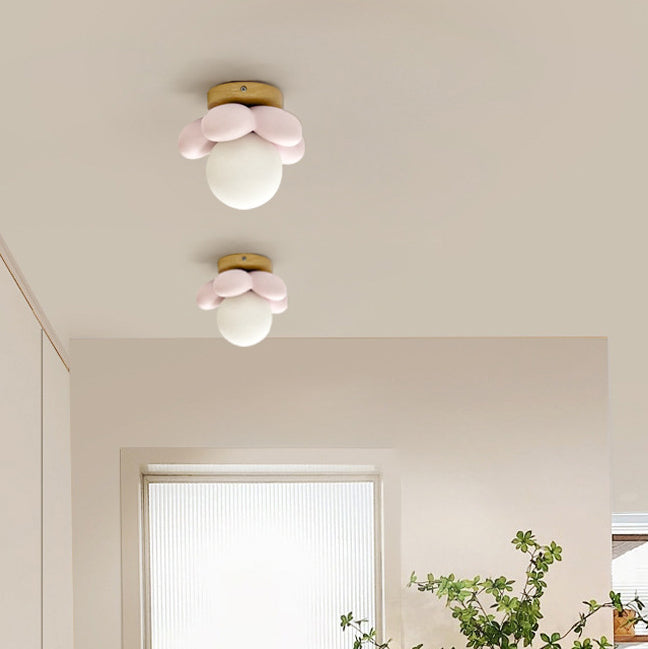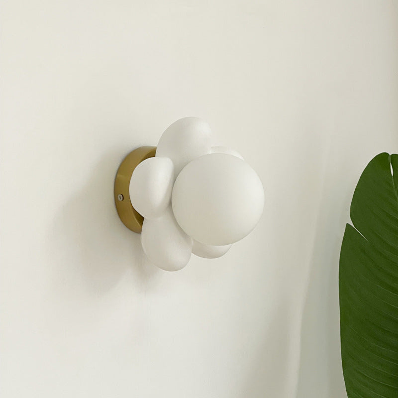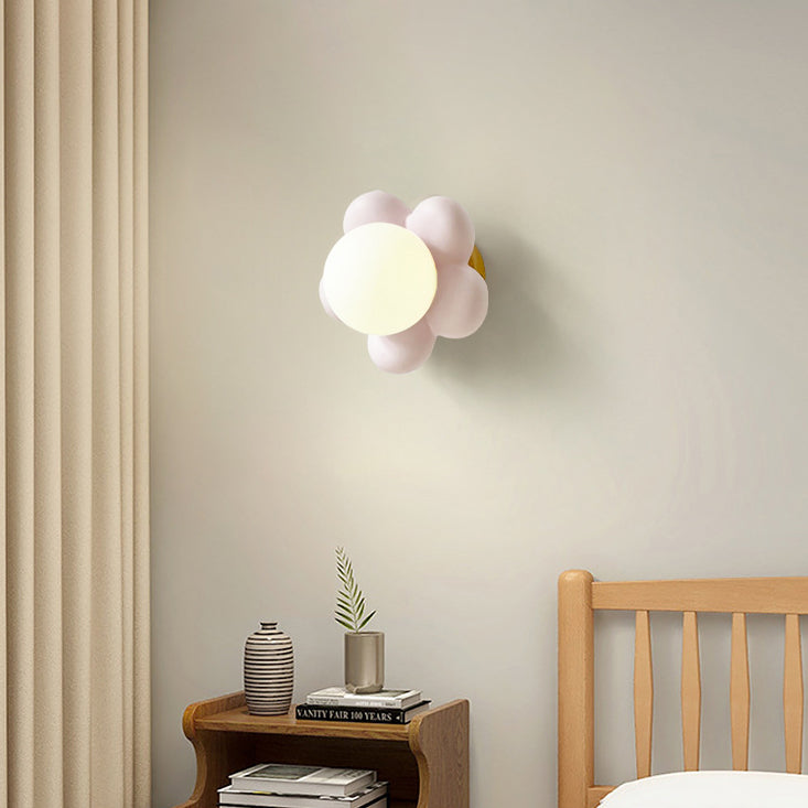 Contemporary Creative Floral Iron Wood Ceramic 1-Light Wall Sconce Lamp For Bedroom