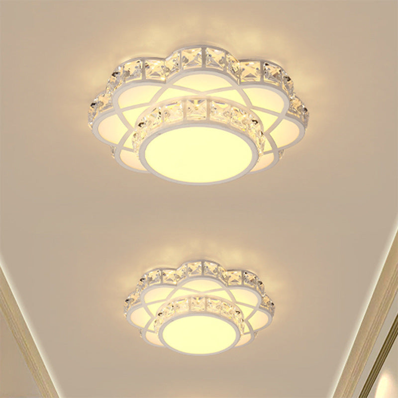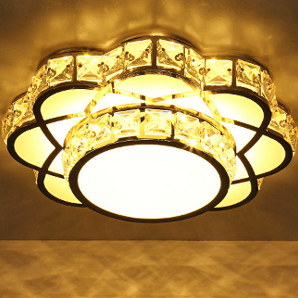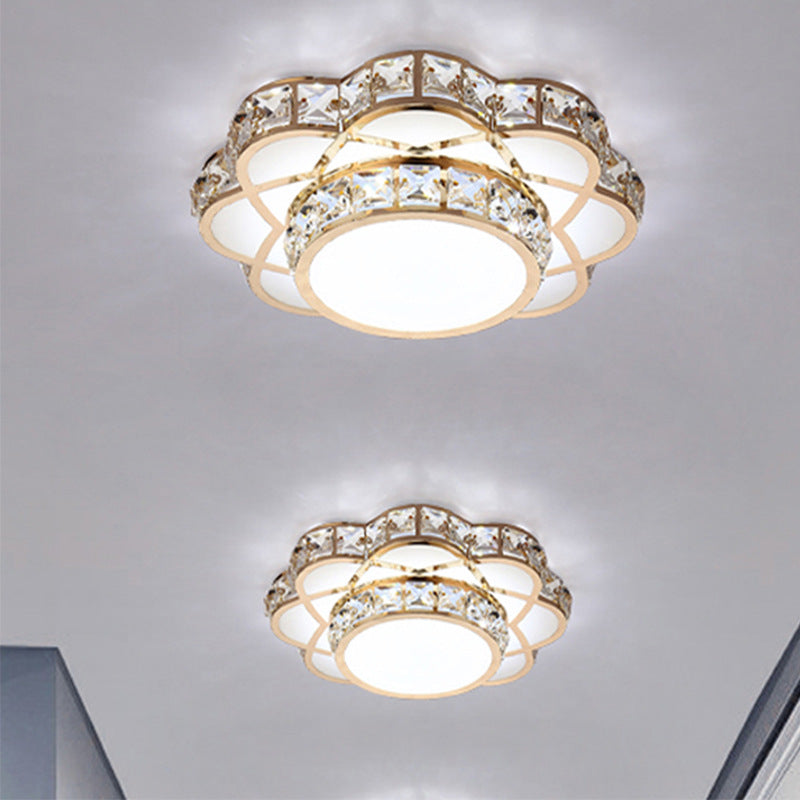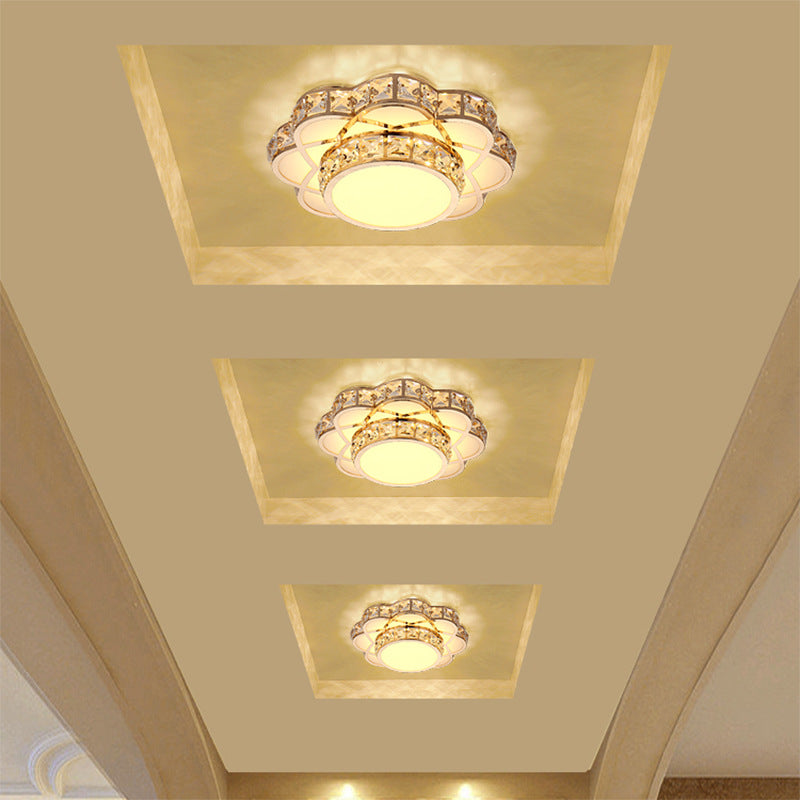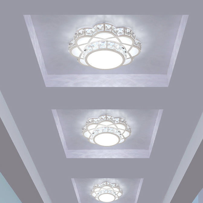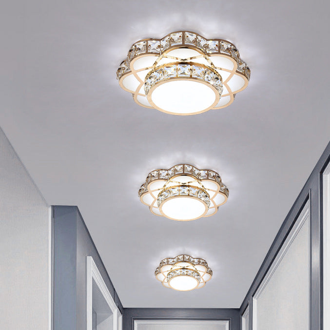 Contemporary Creative Flower Iron Crystal Glass Shade LED Flush Mount Ceiling Light For Hallway