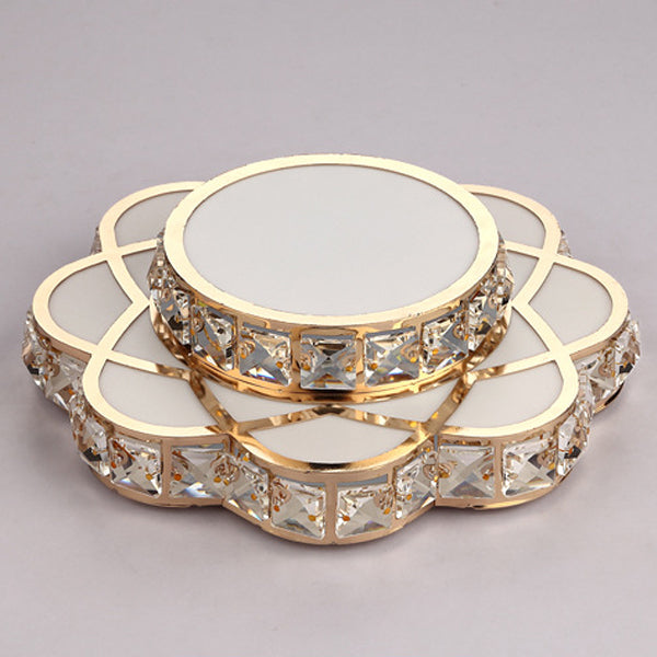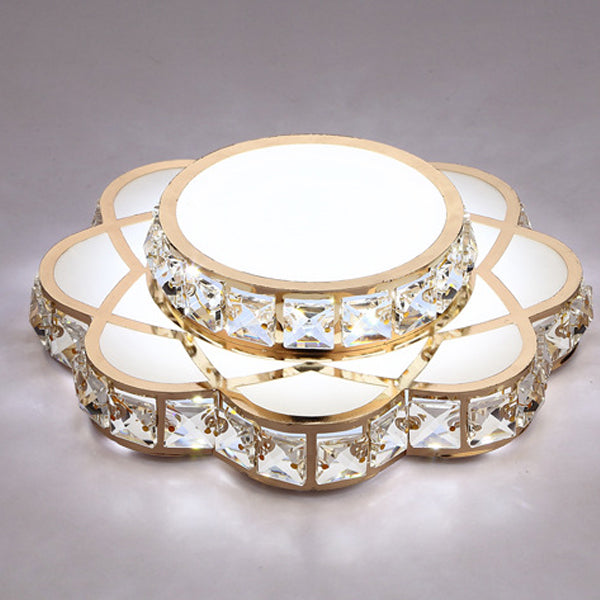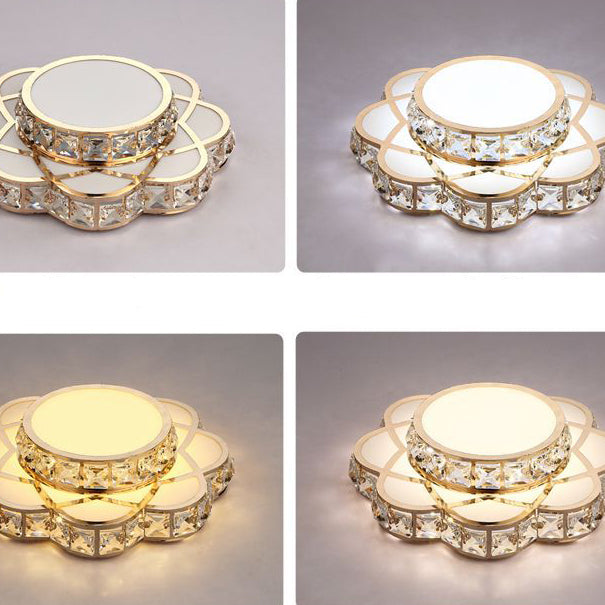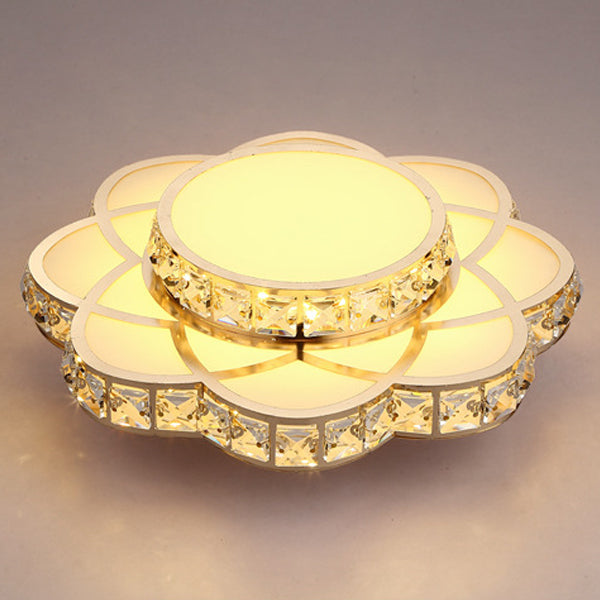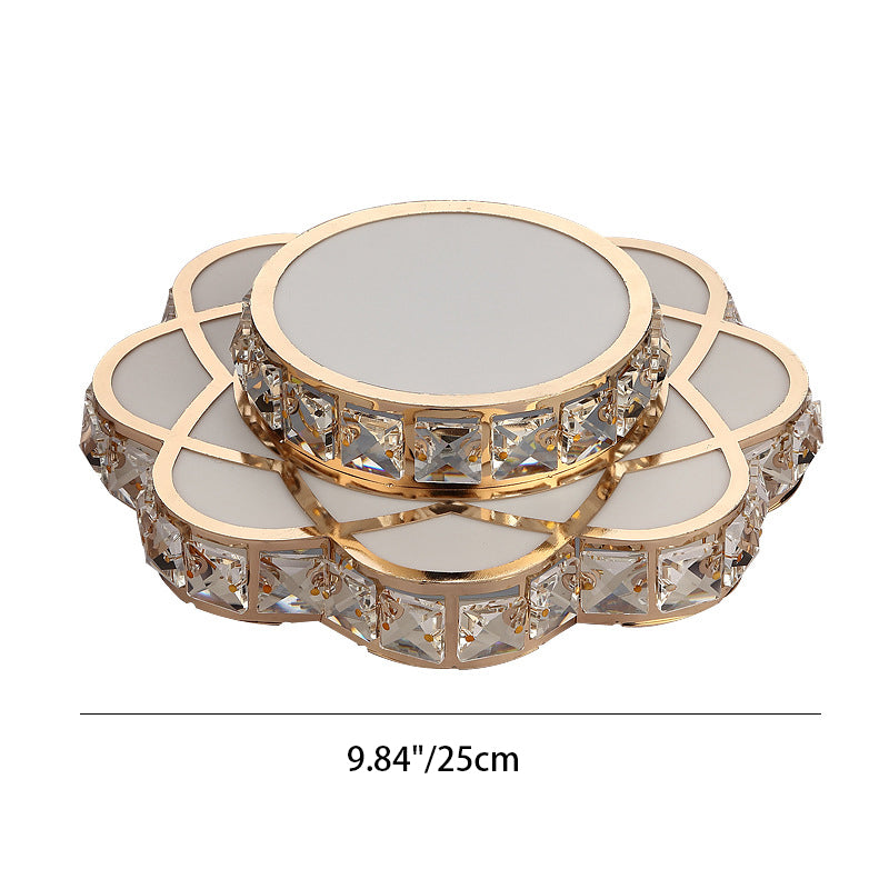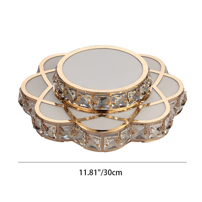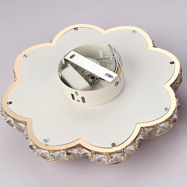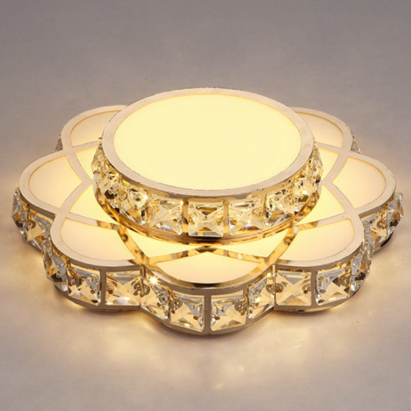 Contemporary Creative Flower Iron Crystal Glass Shade LED Flush Mount Ceiling Light For Hallway