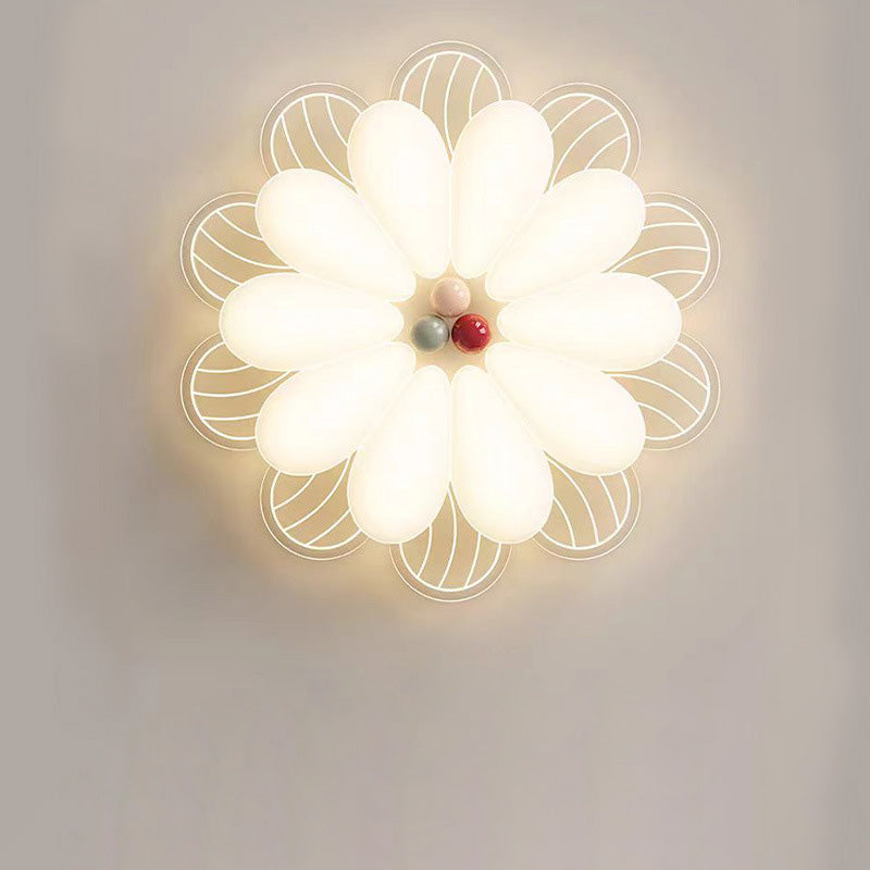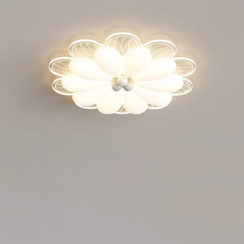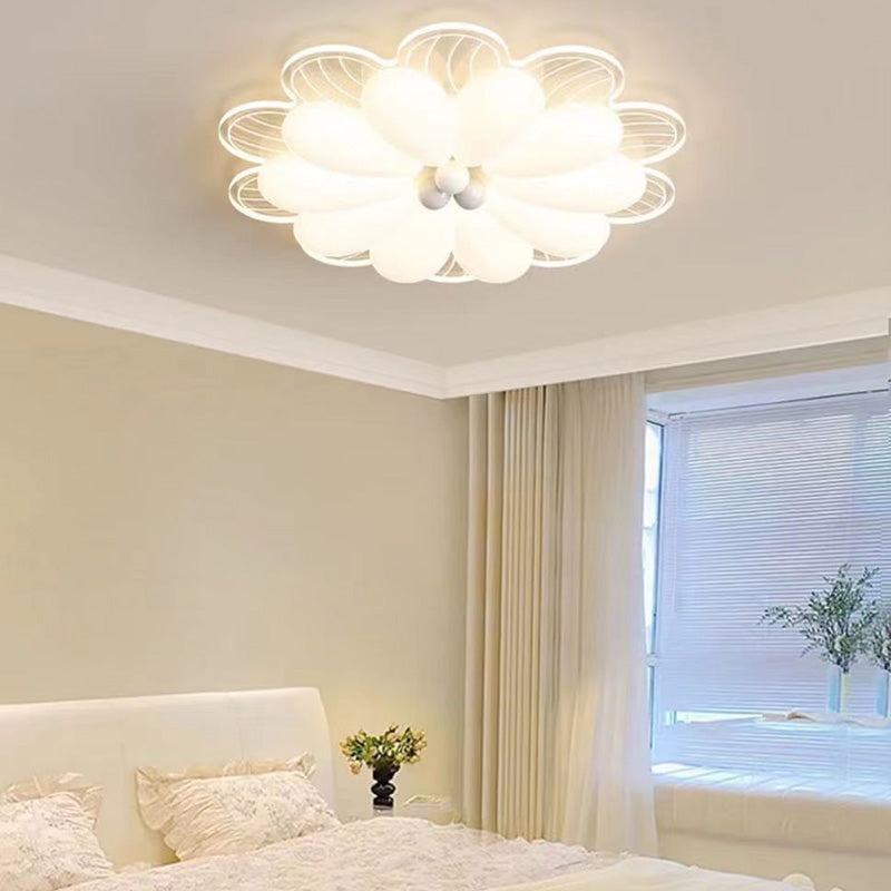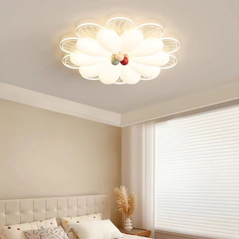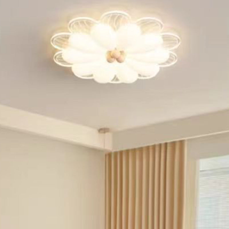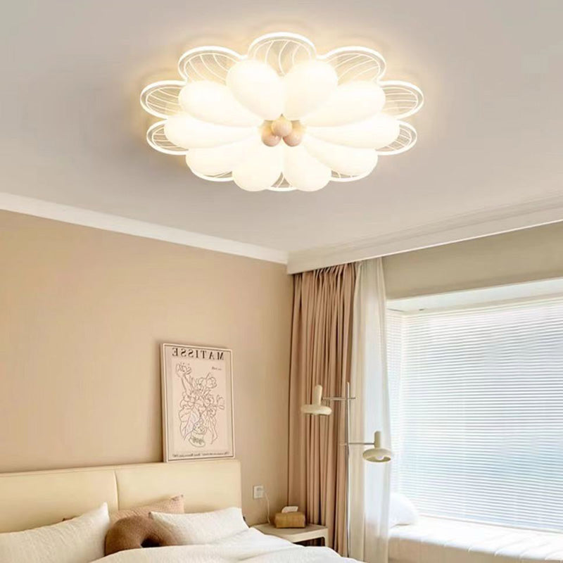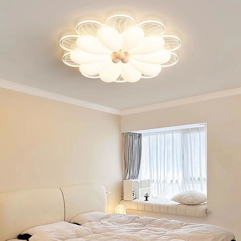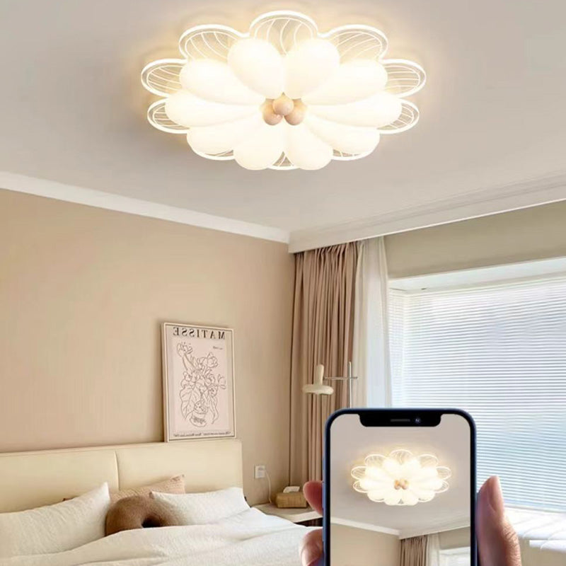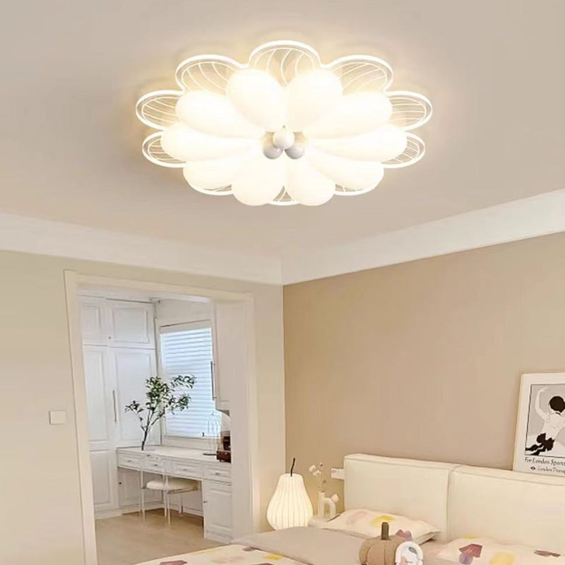 Contemporary Creative Flower Iron PE LED Flush Mount Ceiling Light For Bedroom