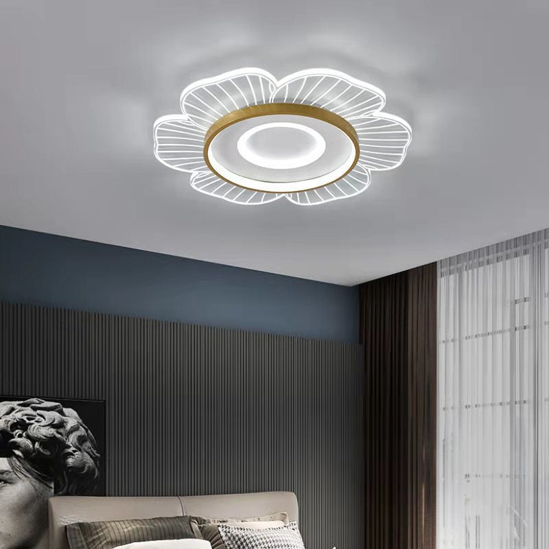 Contemporary Creative Flower Petal Iron Acrylic Silicone LED Flush Mount Ceiling Light For Living Room