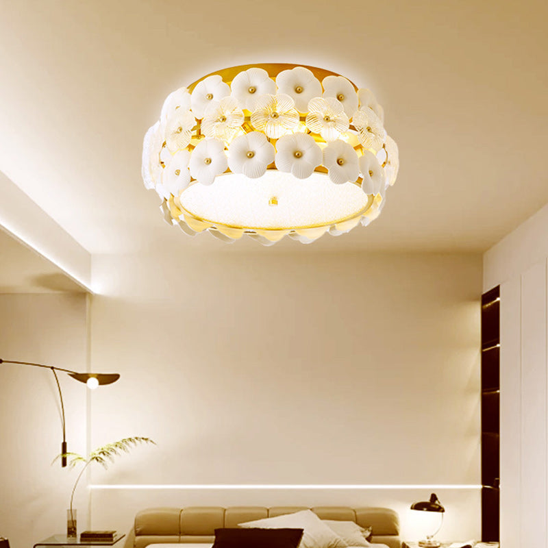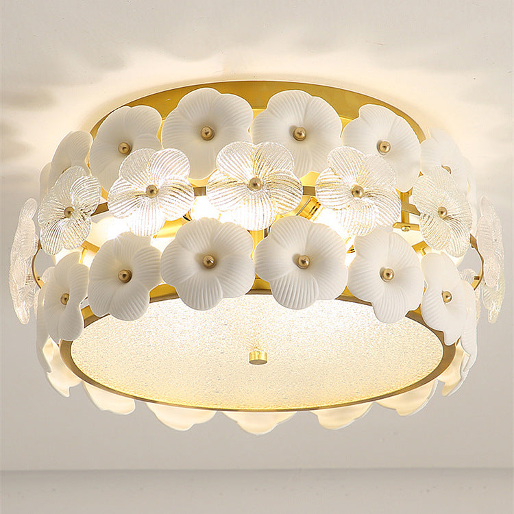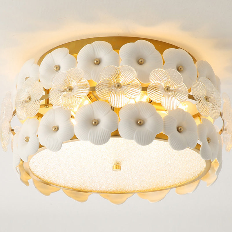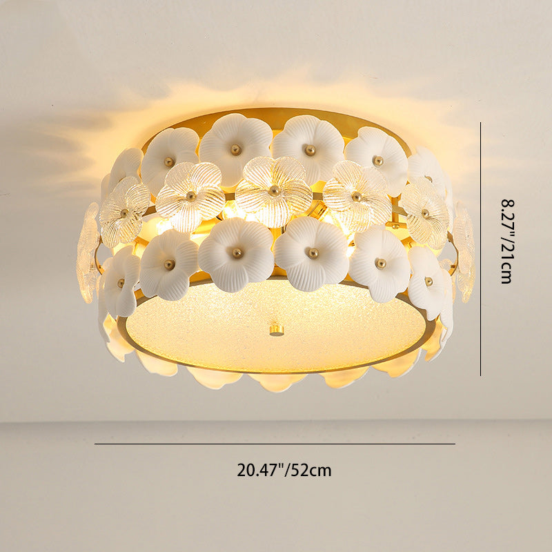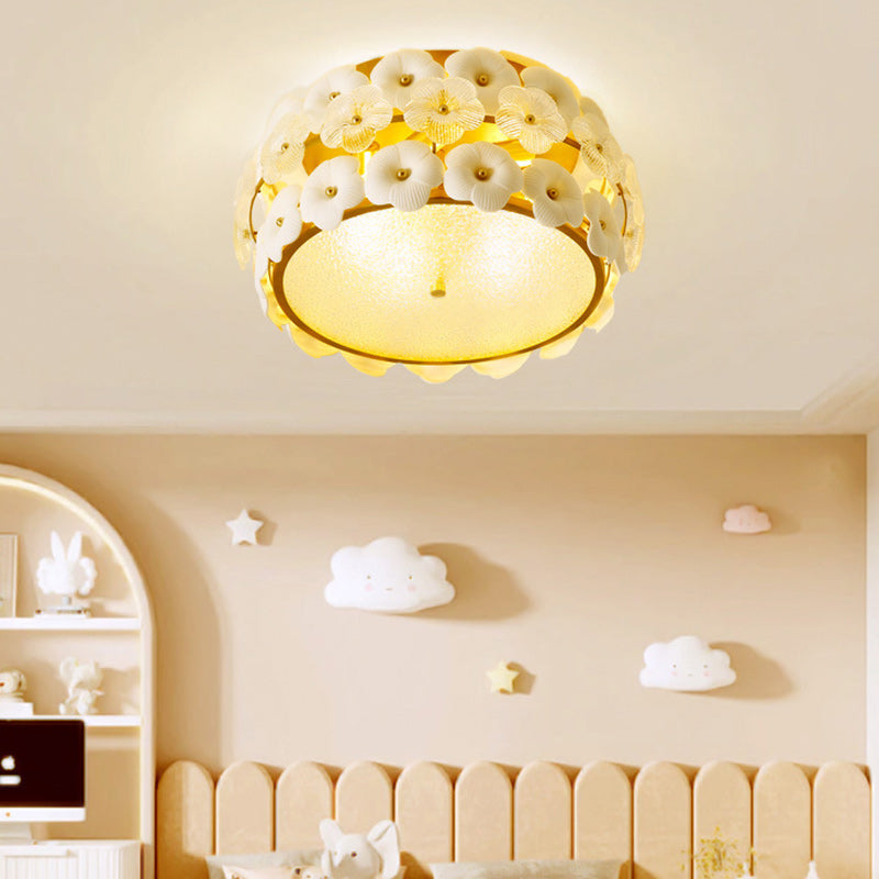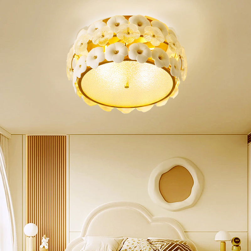 Contemporary Creative Flower Round Dome Iron Glass 6/9 Light Flush Mount Ceiling Light For Bedroom