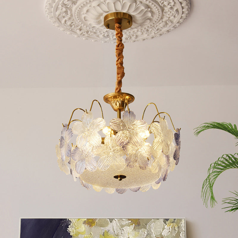 Contemporary Creative Flower Round Iron Glass 5/6 Light Chandelier For Living Room