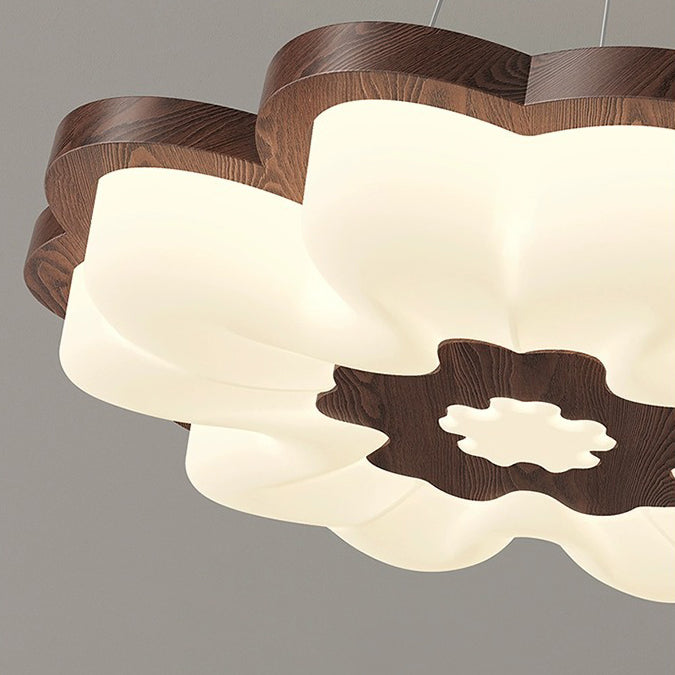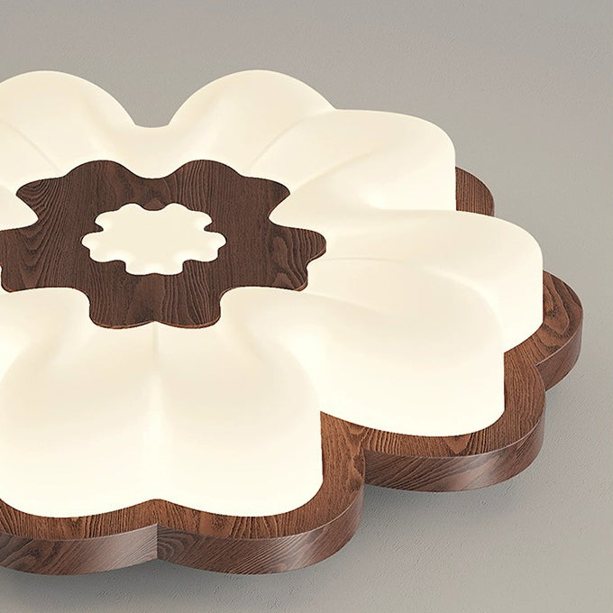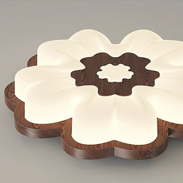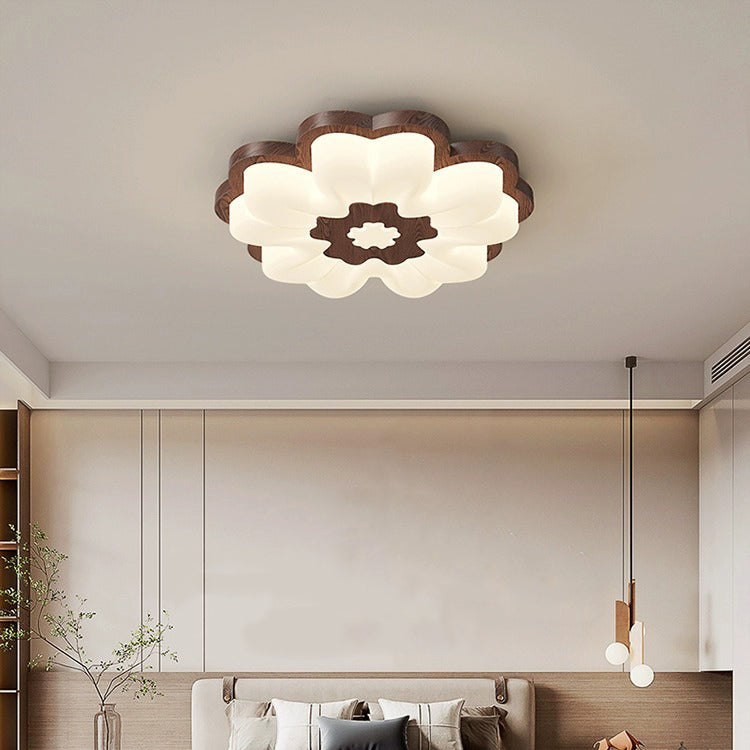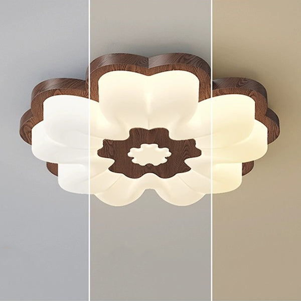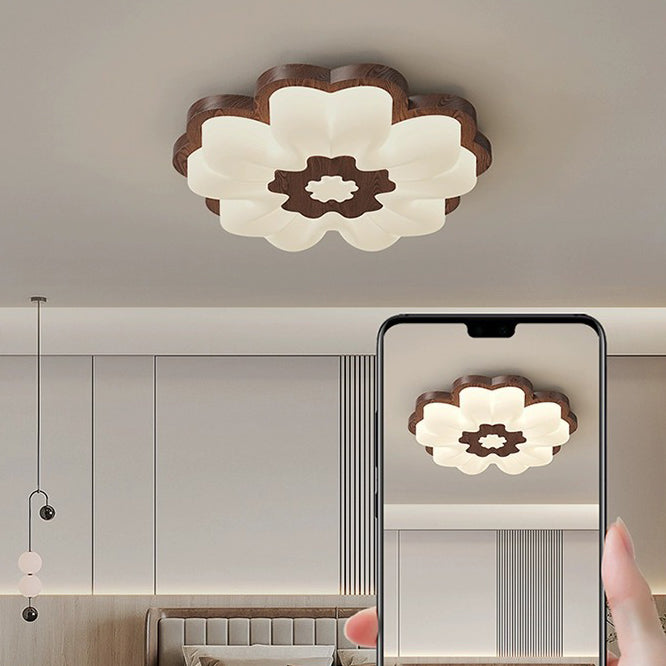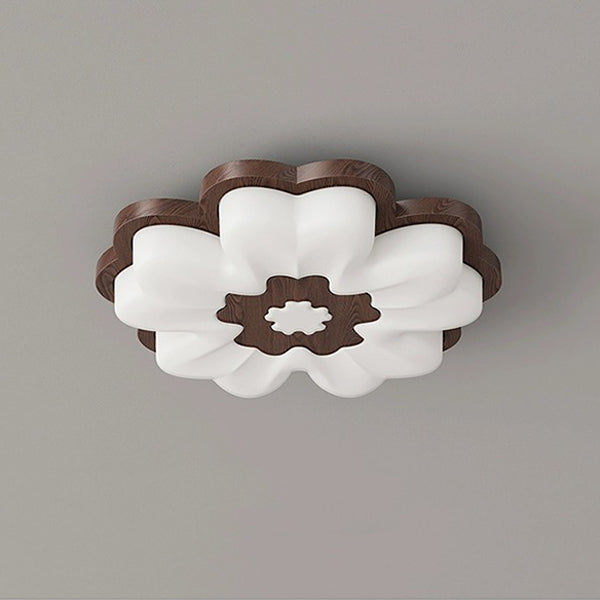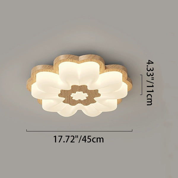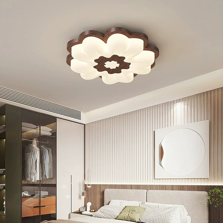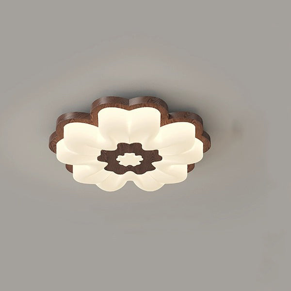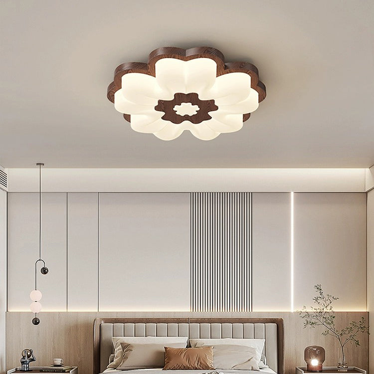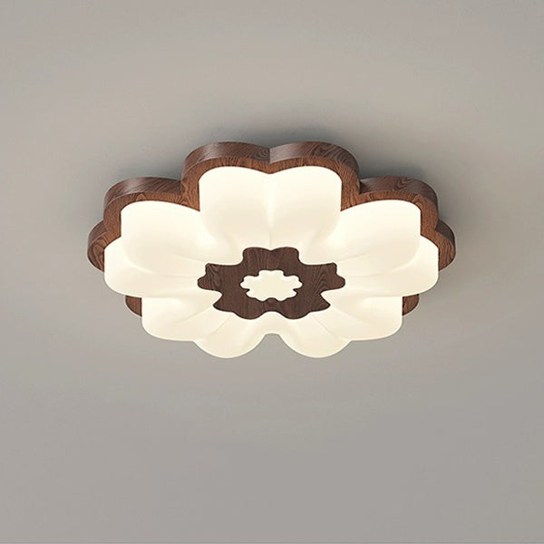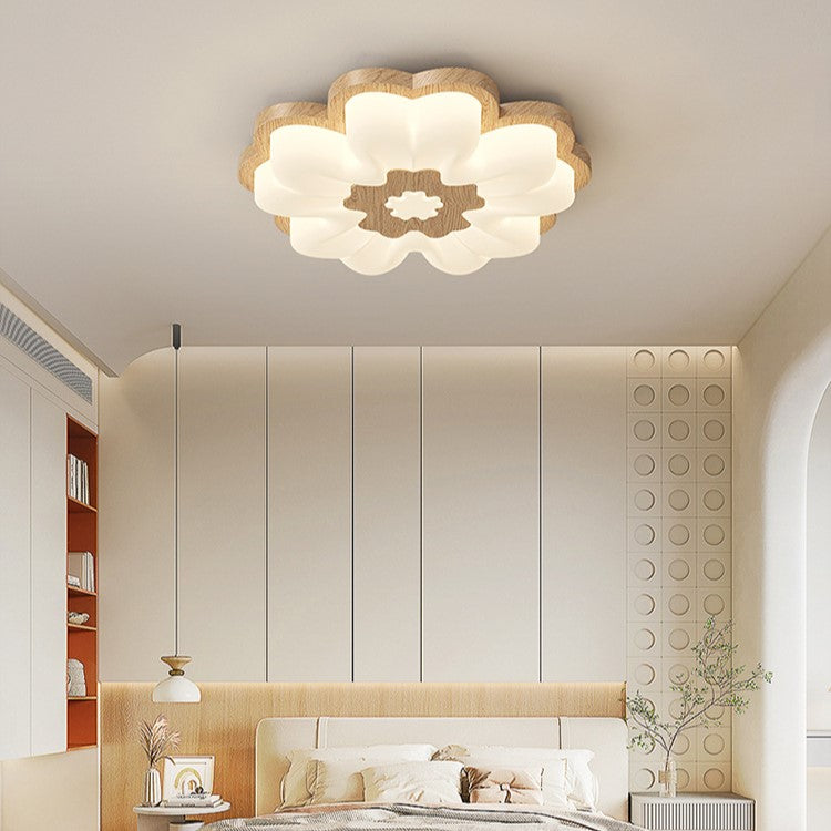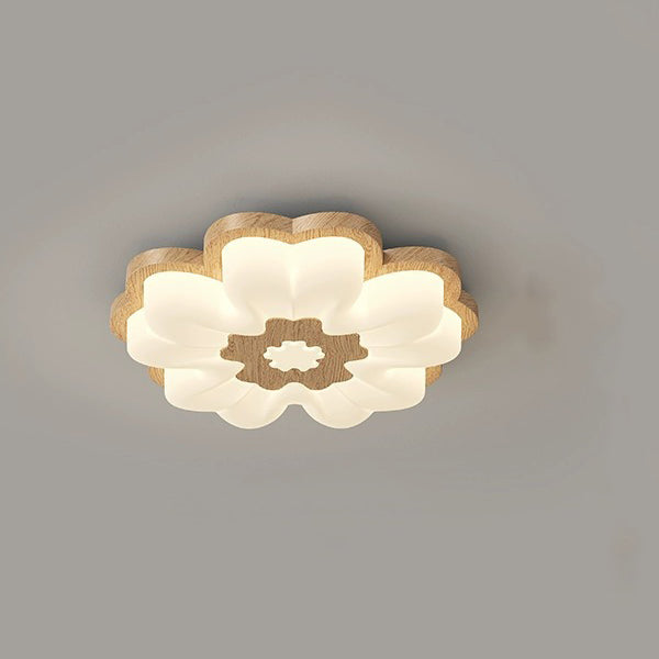 Contemporary Creative Flower Shape PE Rubberwood LED Flush Mount Ceiling Light For Bedroom
