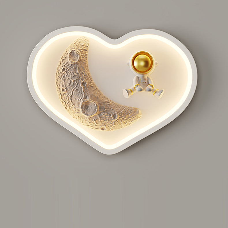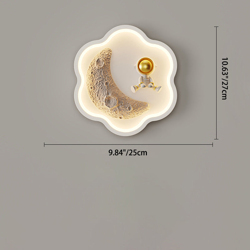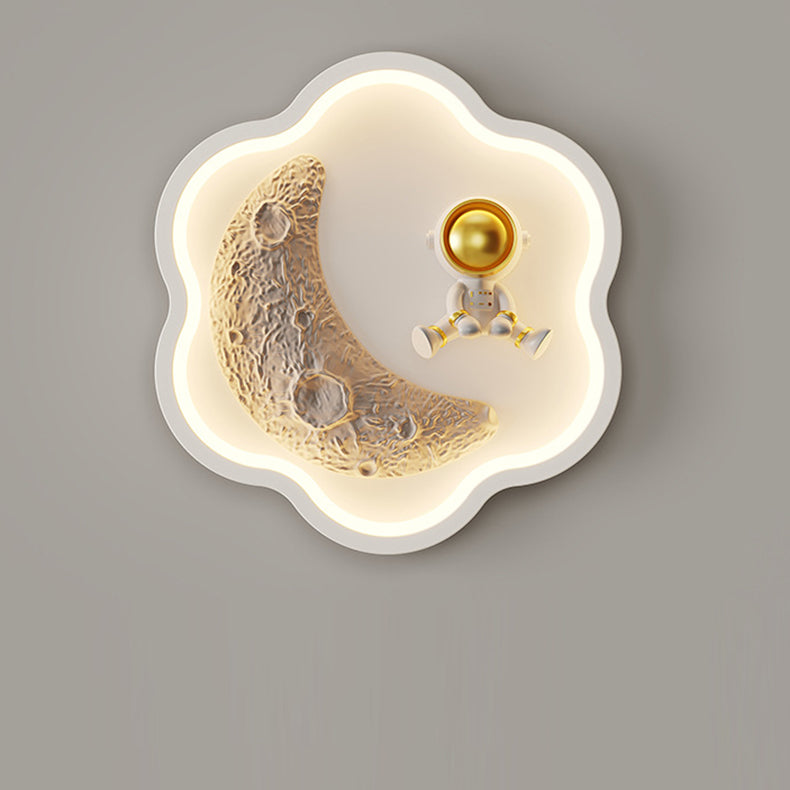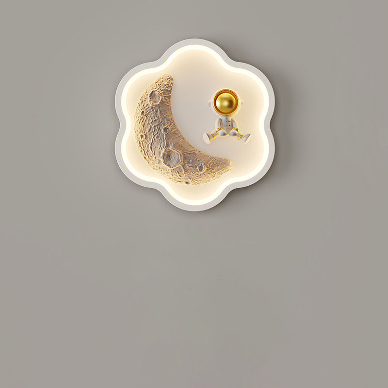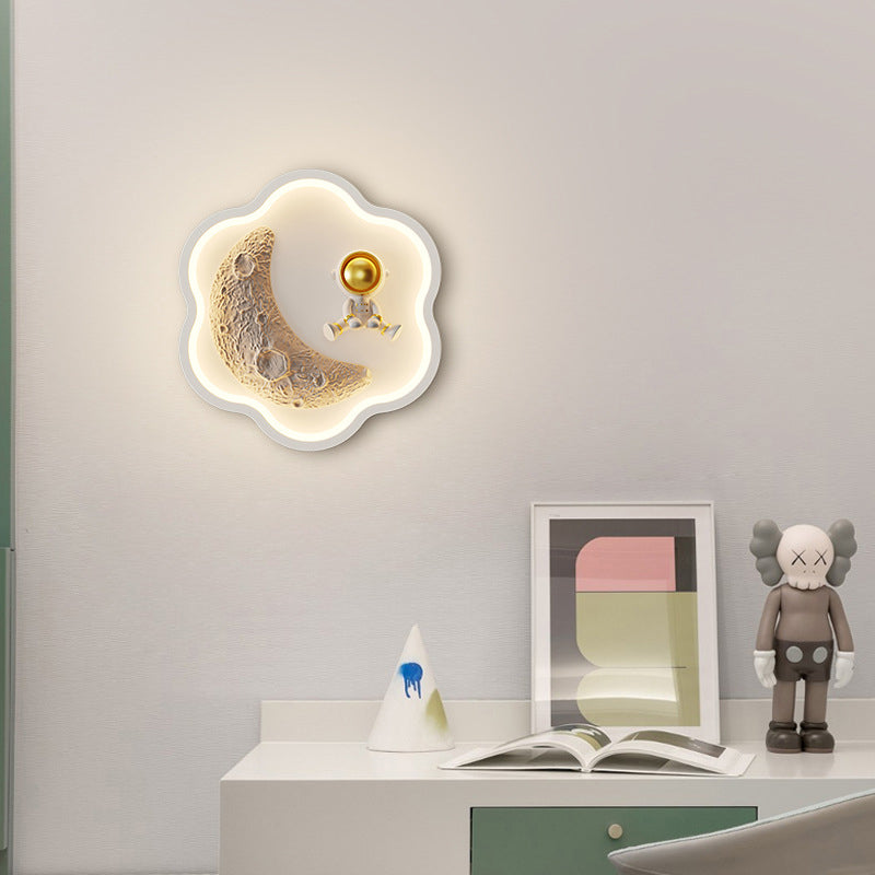Contemporary Creative Flower-Shaped Resin Moon Astronaut LED Wall Sconce Lamp For Living Room