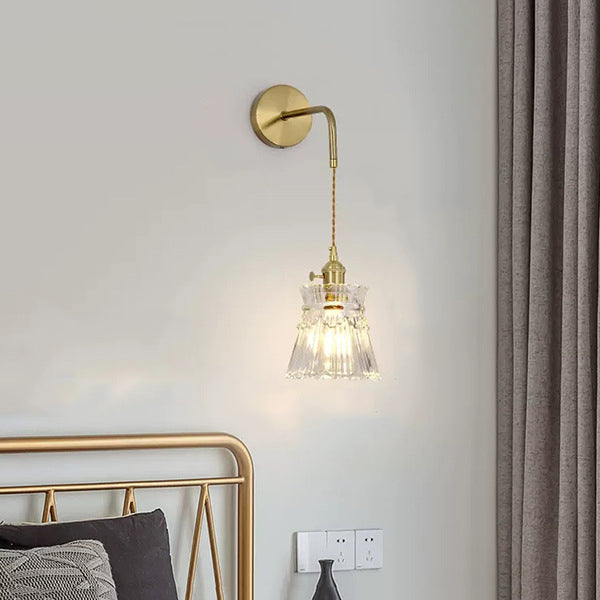 Contemporary Creative Flower Skirt Vase Petals Glass Iron Copper 1-Light Wall Sconce Lamp For Living Room