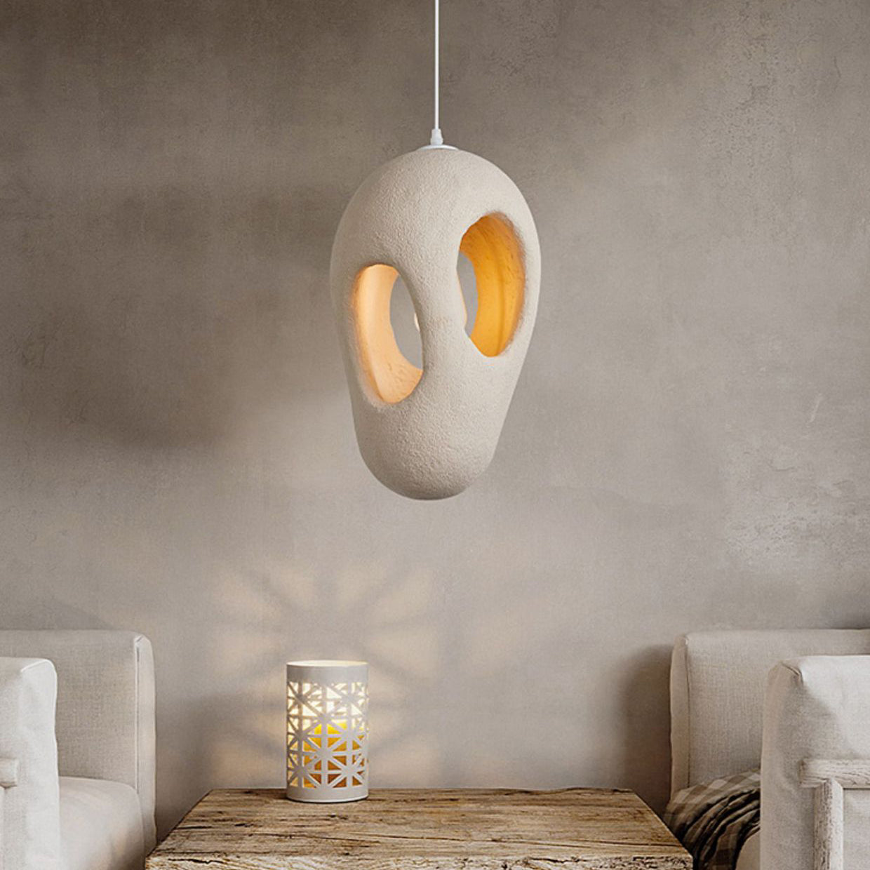 Contemporary Creative Geometric Cave-Shaped High-Density Polystyrene 1 - Light Pendant Light For Bedroom