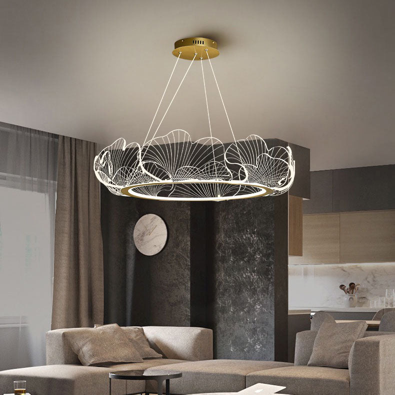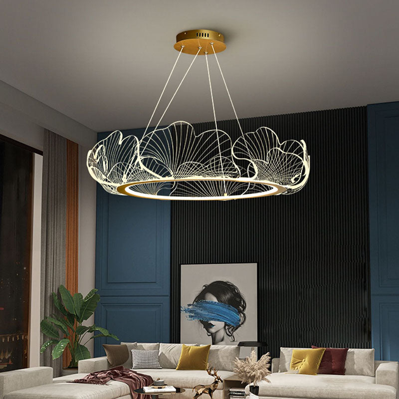 Contemporary Creative Ginkgo Leaf Iron Acrylic LED Pendant Light For Living Room