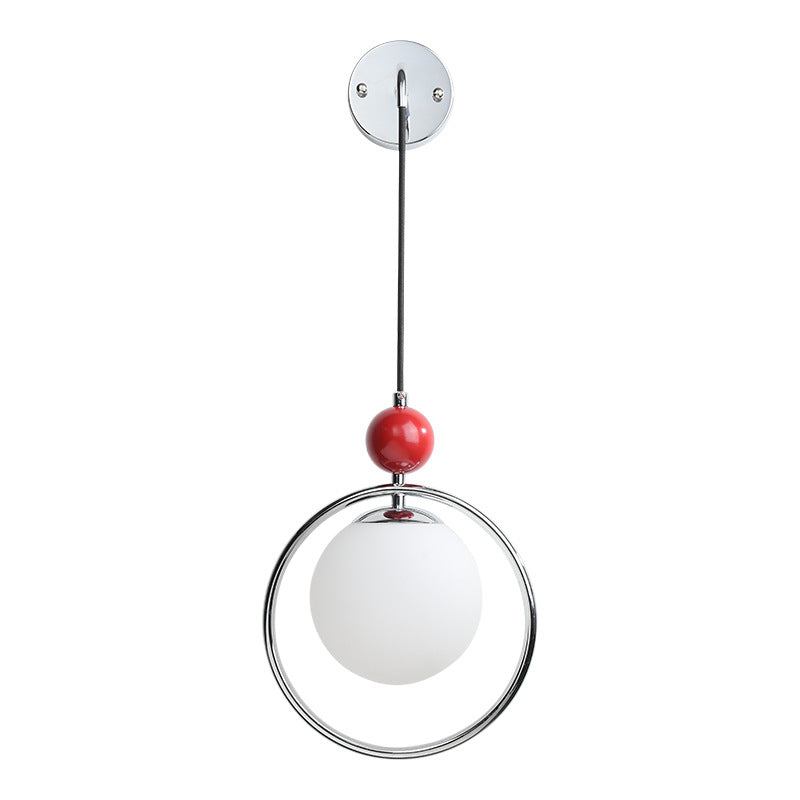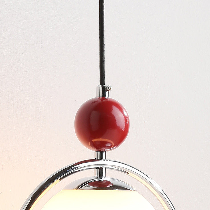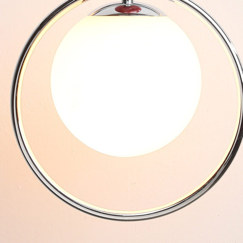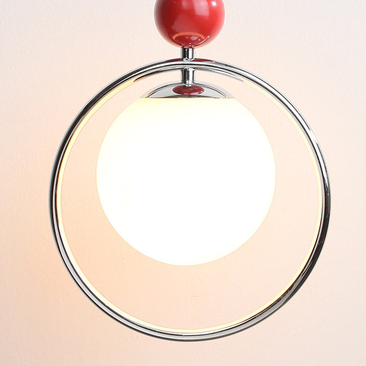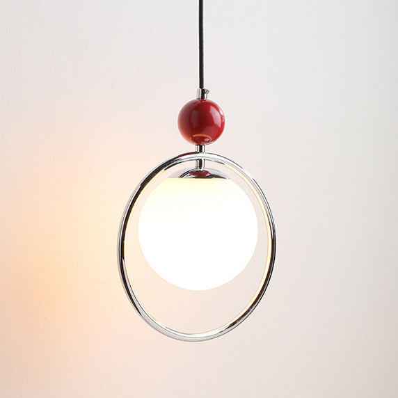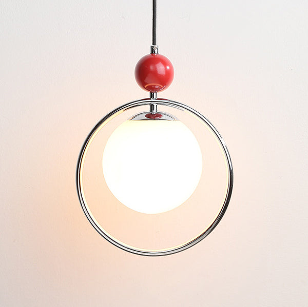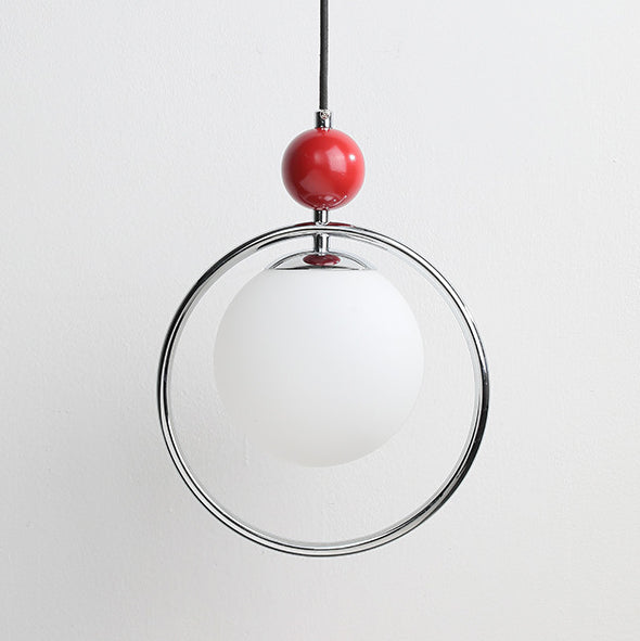 Contemporary Creative Glass Ball Shade Iron Ring 1-Light Pendant Light For Living Room