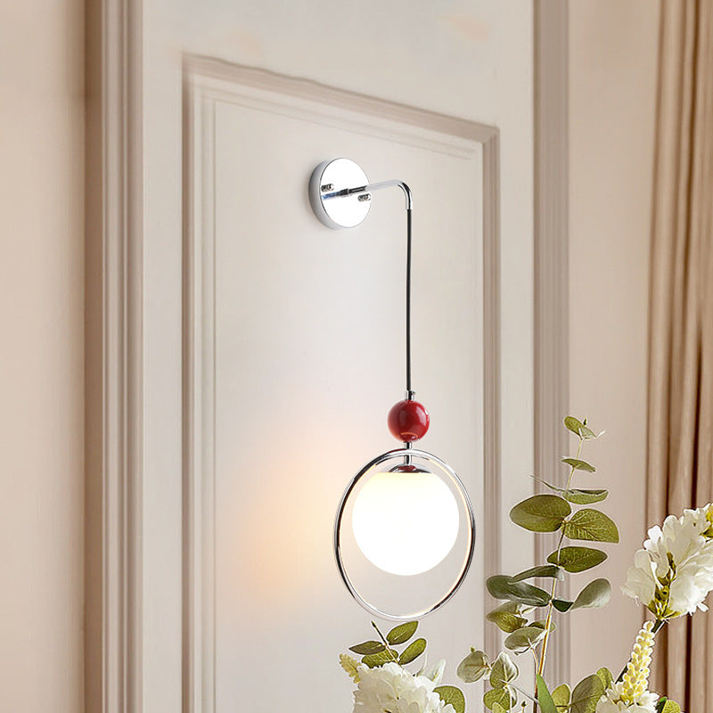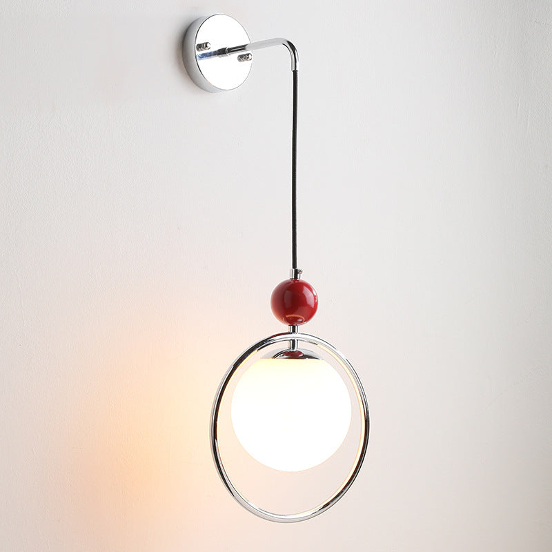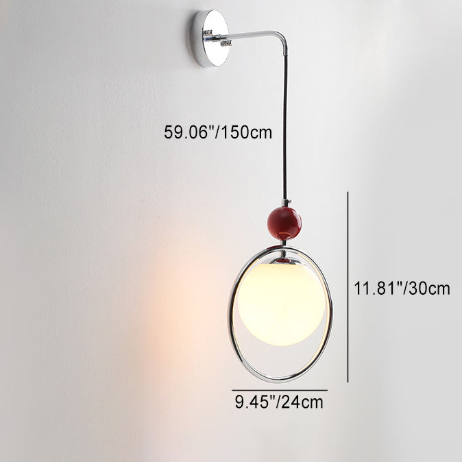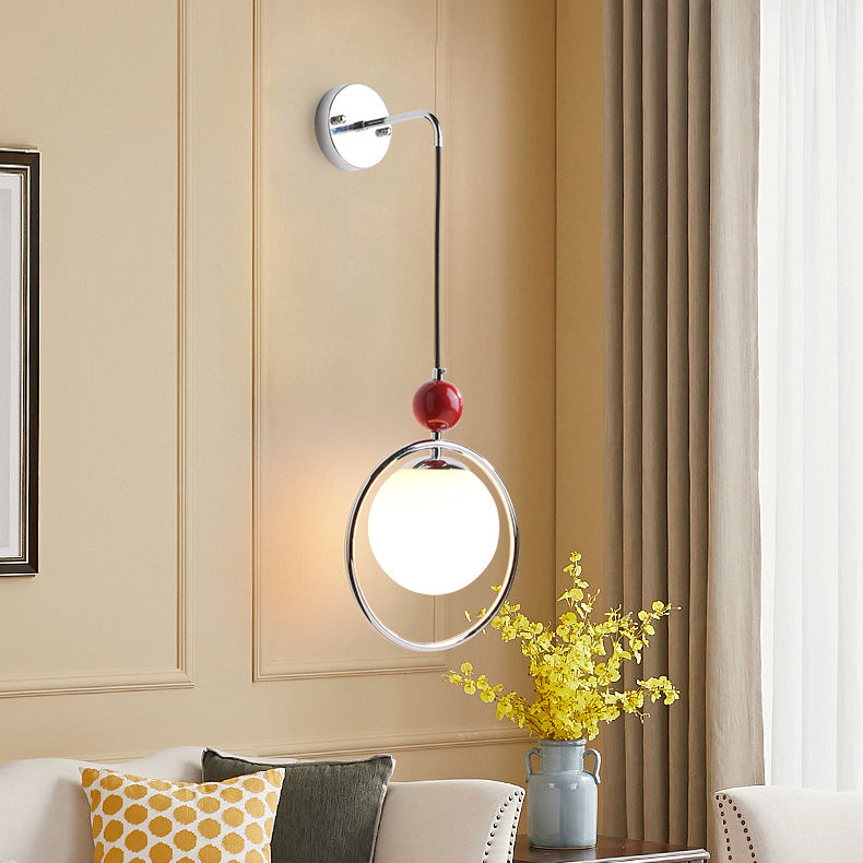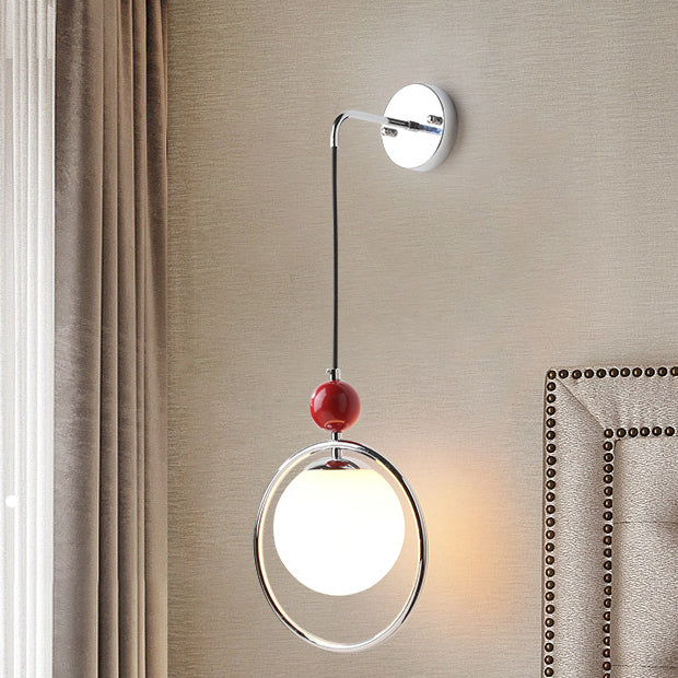 Contemporary Creative Glass Ball Shade Iron Ring 1-Light Pendant Light For Living Room
