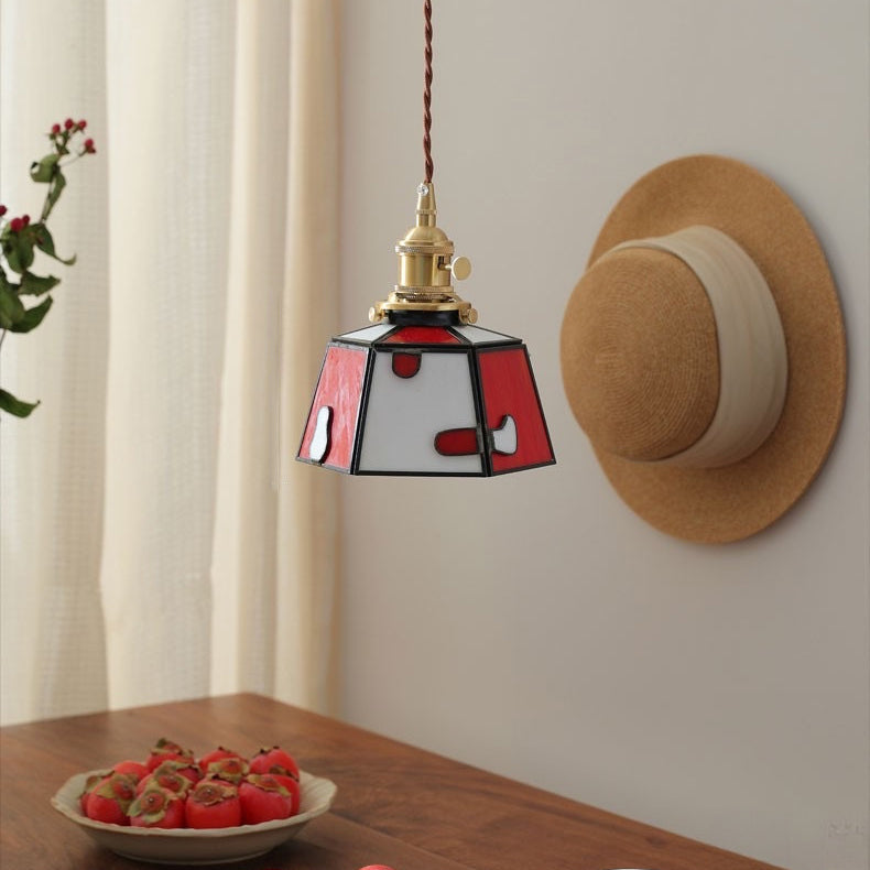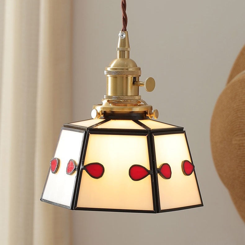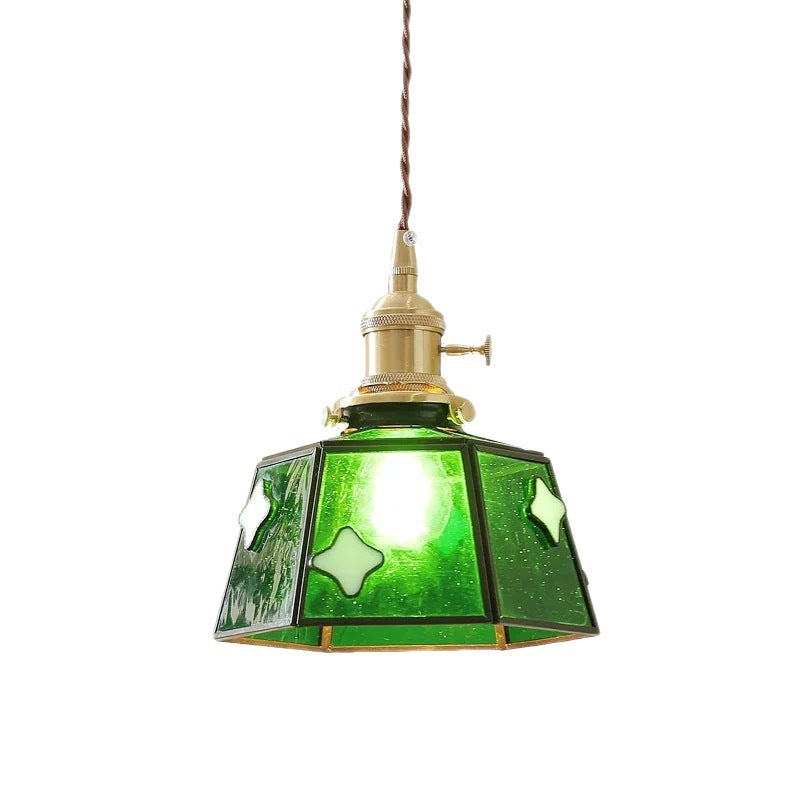 Contemporary Creative Glass Brass Polygon 1-Light Pendant Light For Dining Room