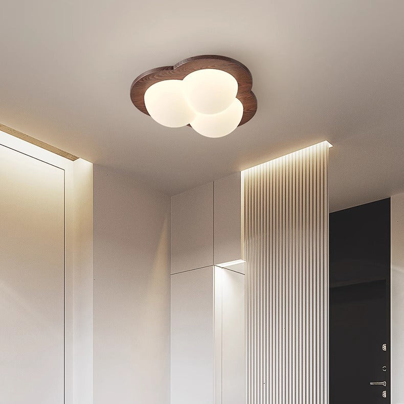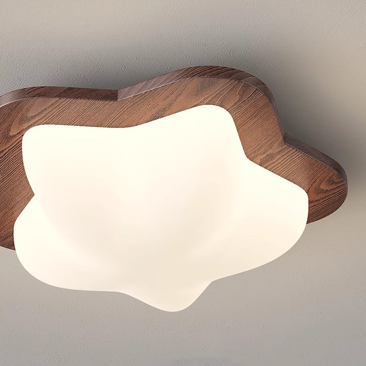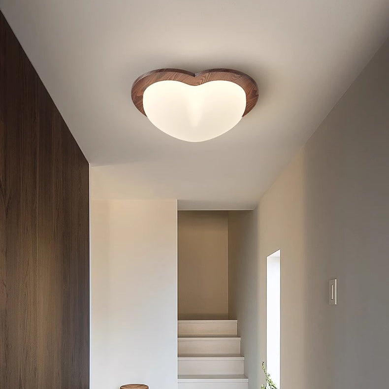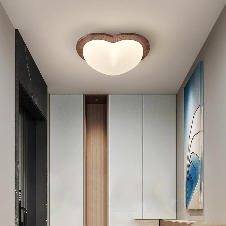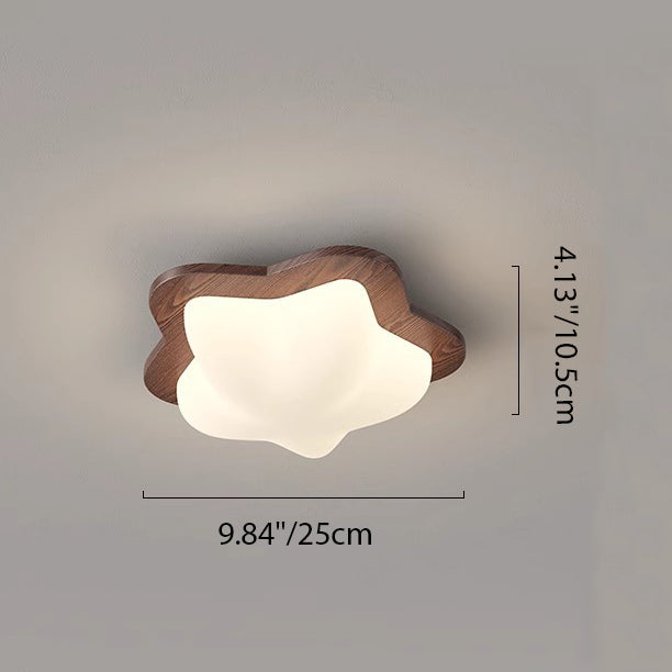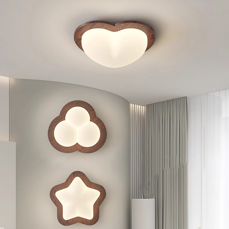 Contemporary Creative Globe Heart Star Wood PE Shade LED Flush Mount Ceiling Light For Bedroom