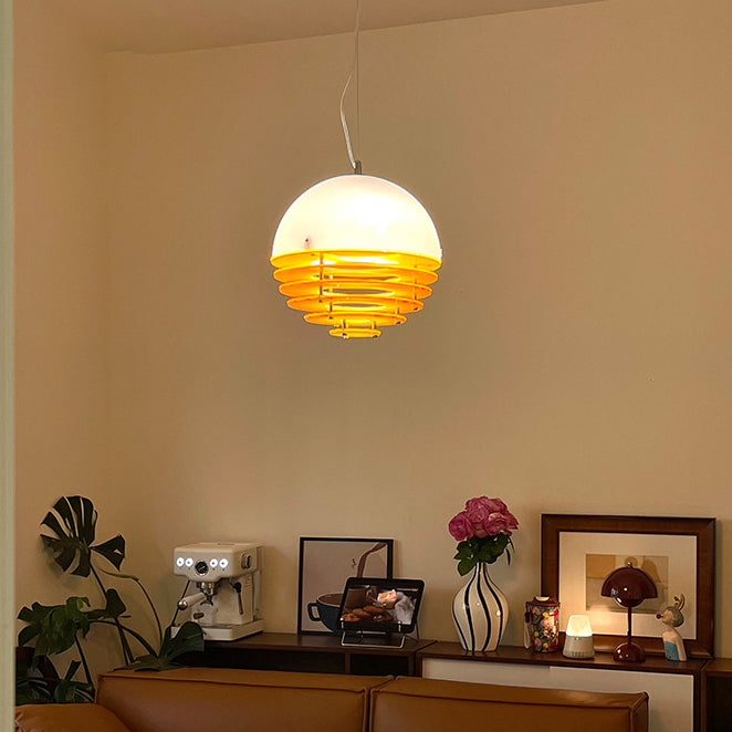 Contemporary Creative Globe Sunset Iron Glass Acrylic 1-Light Pendant Light For Living Room