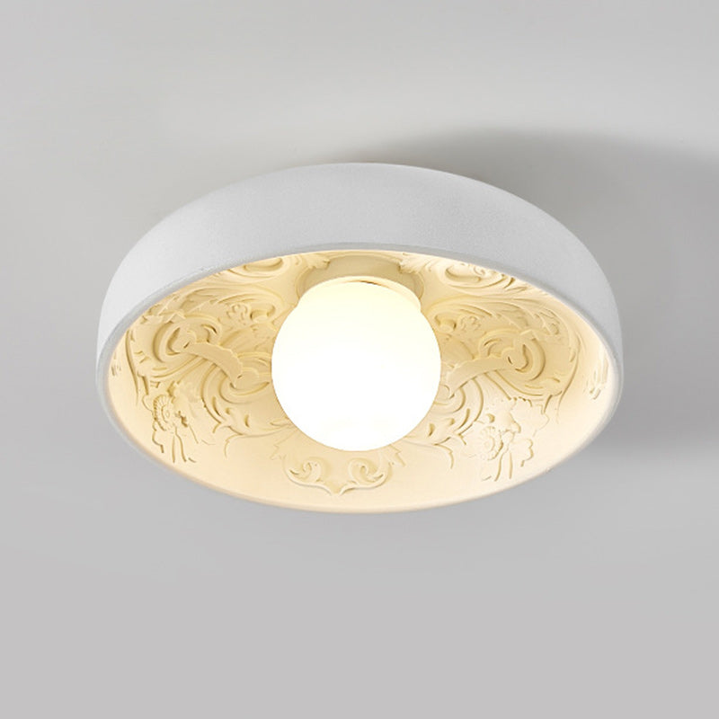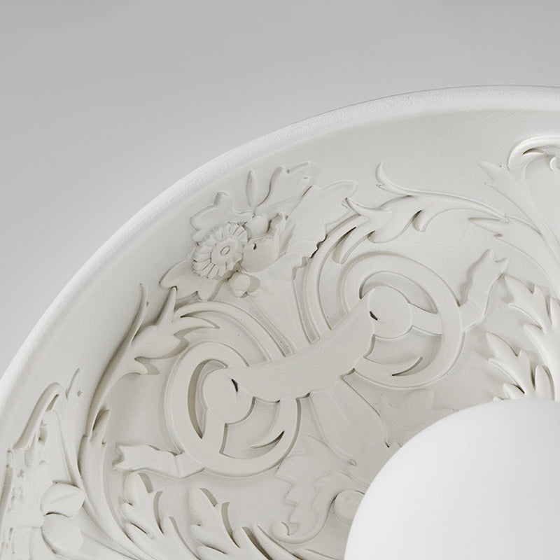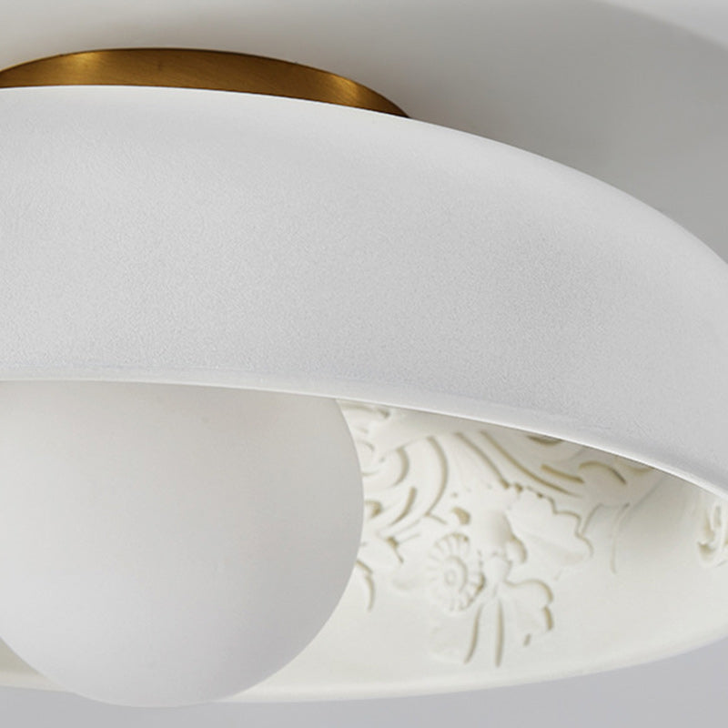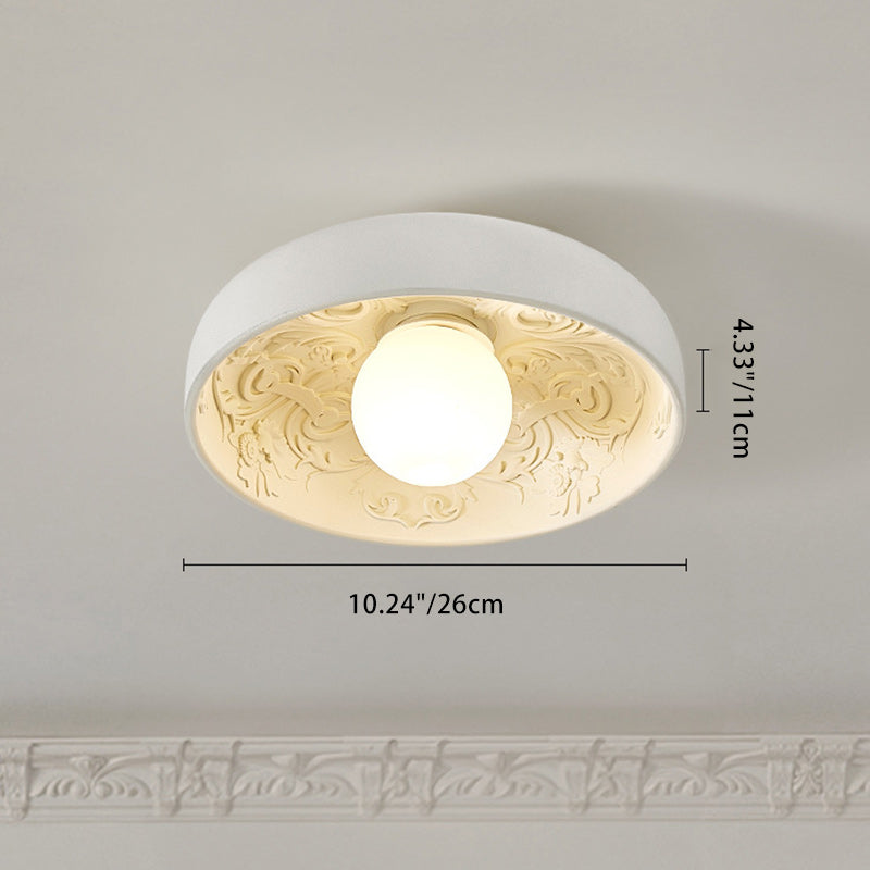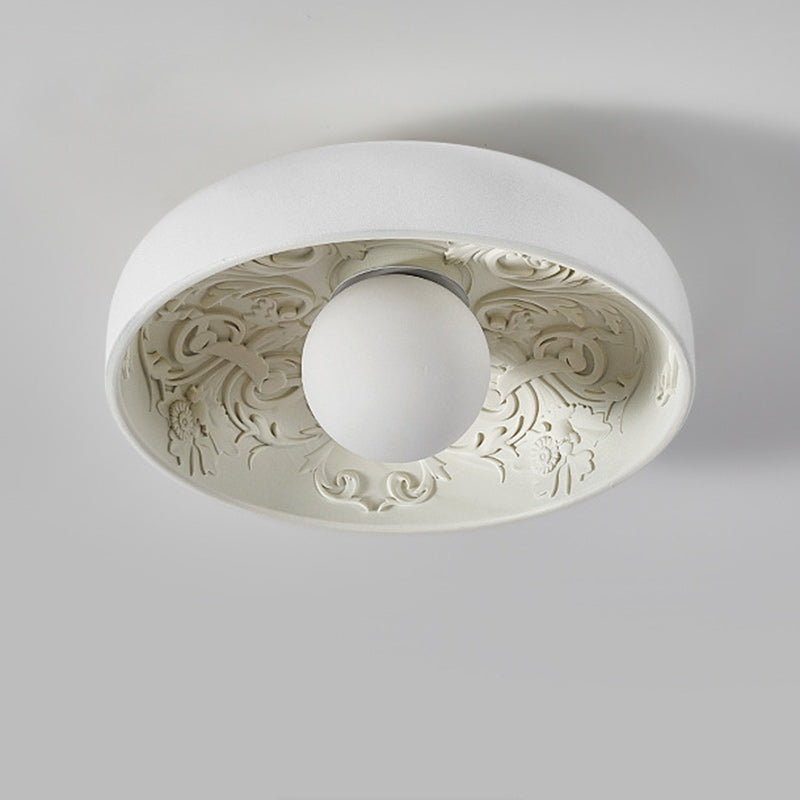 Contemporary Creative Half Round Carved Orb Resin Glass 1-Light Flush Mount Ceiling Light For Living Room
