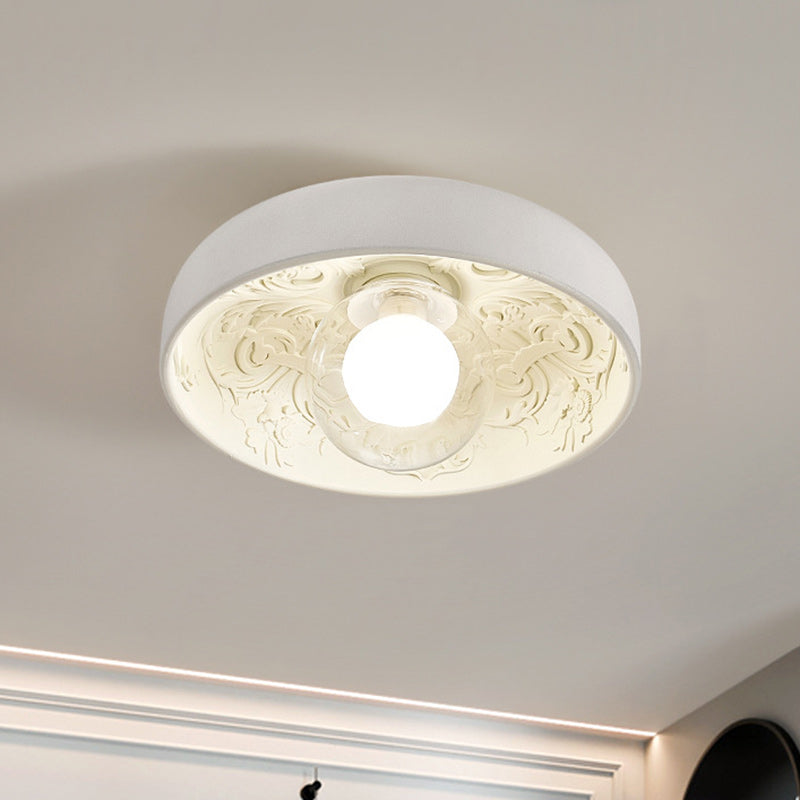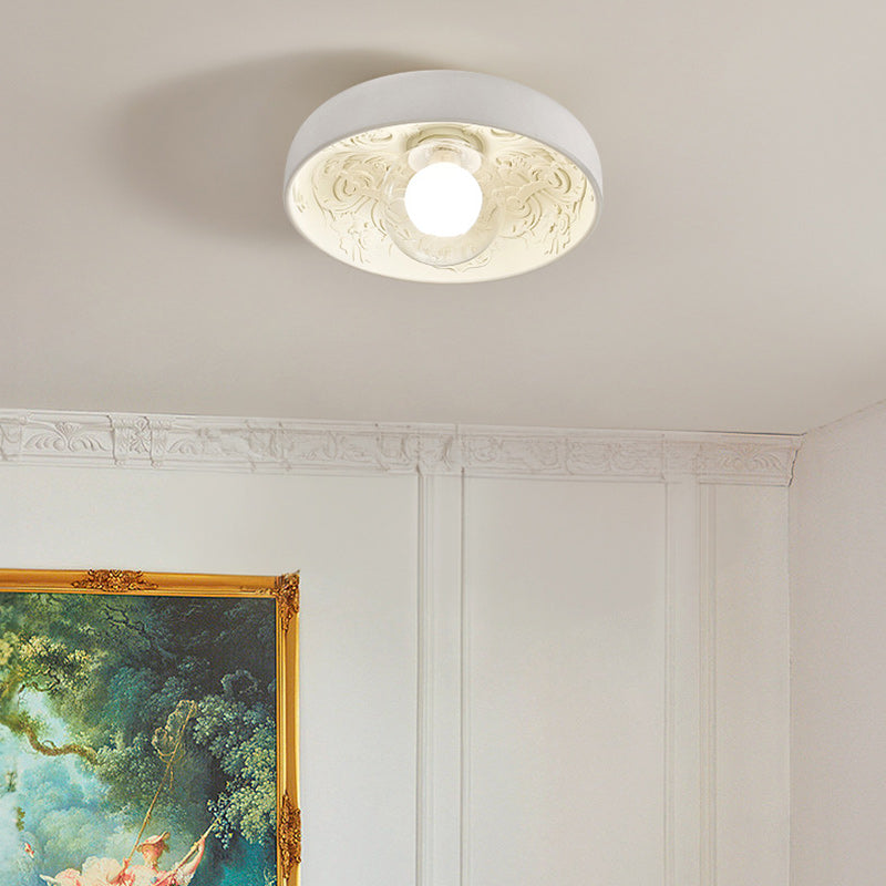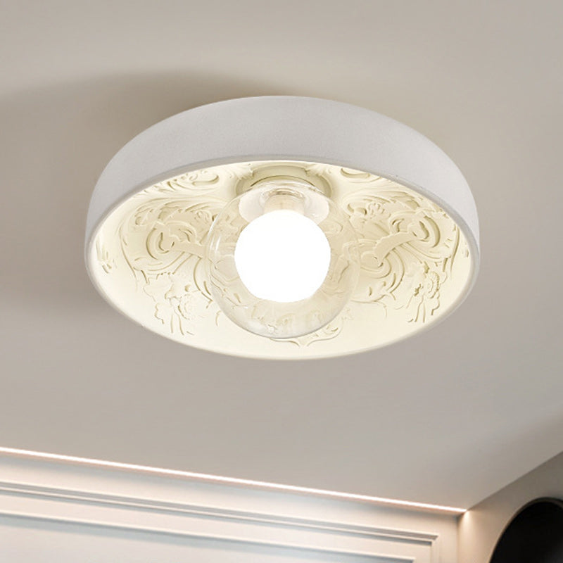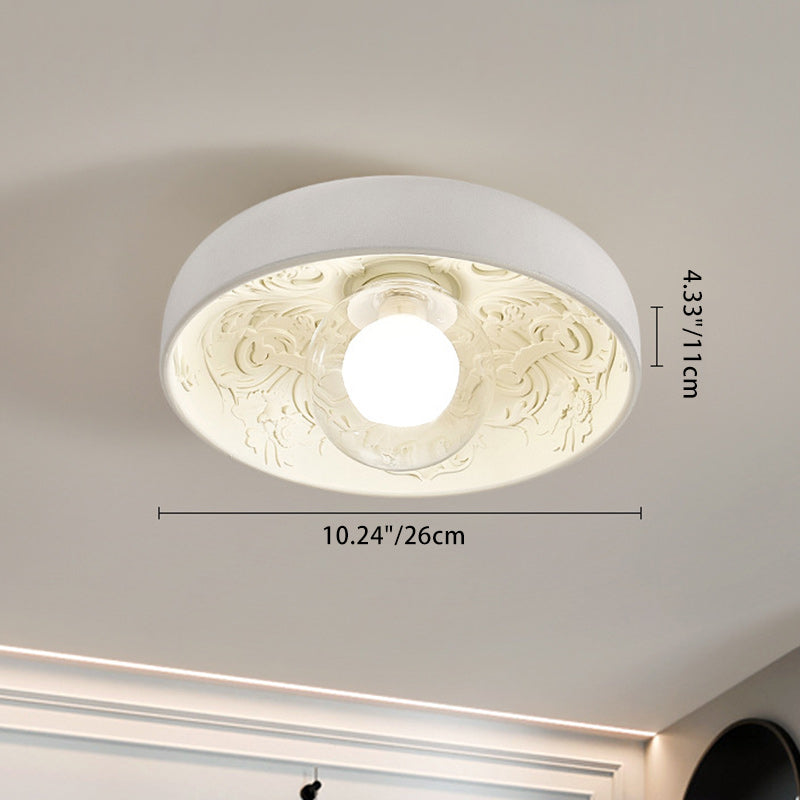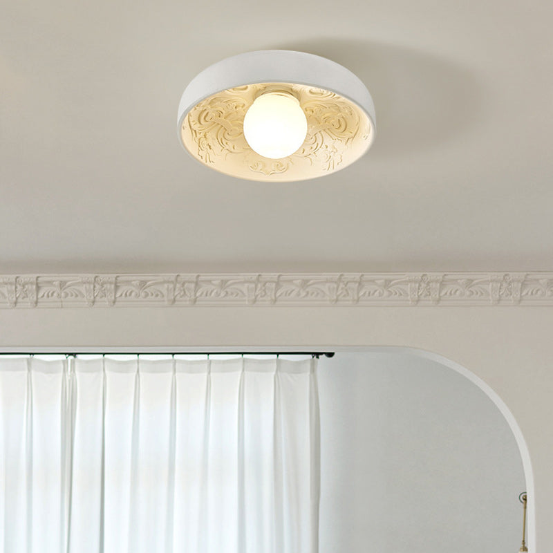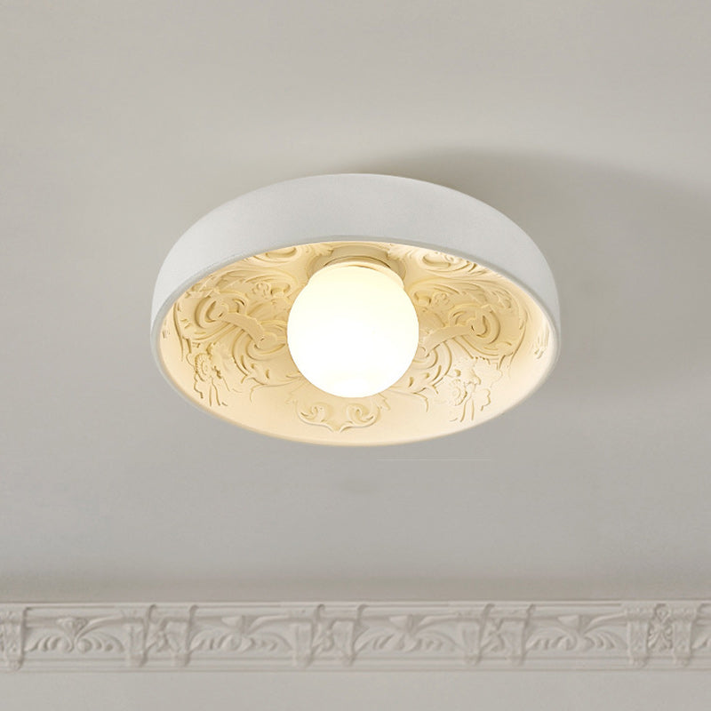 Contemporary Creative Half Round Carved Orb Resin Glass 1-Light Flush Mount Ceiling Light For Living Room