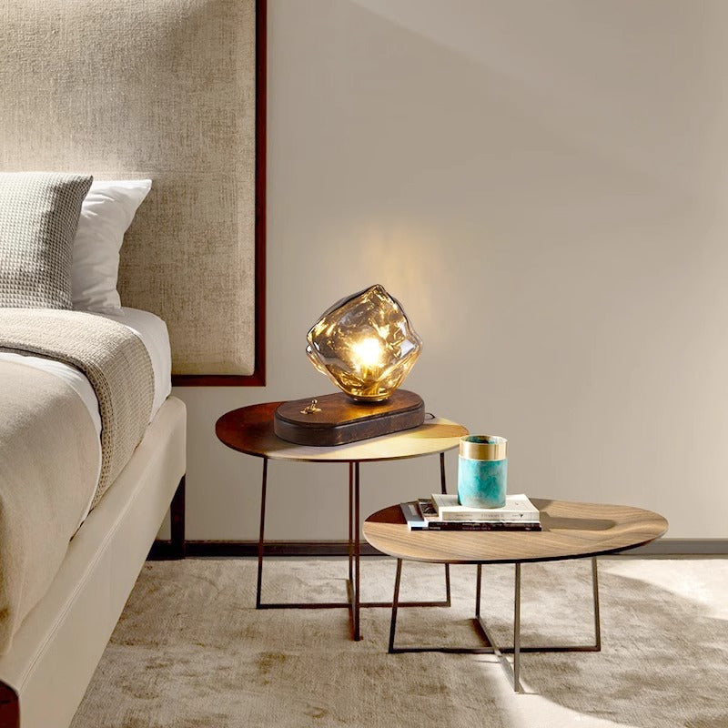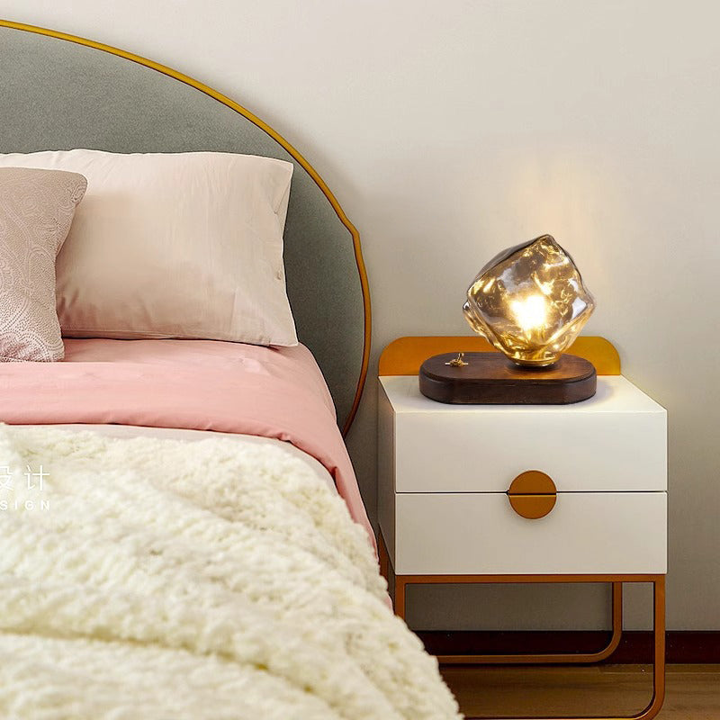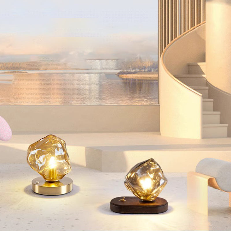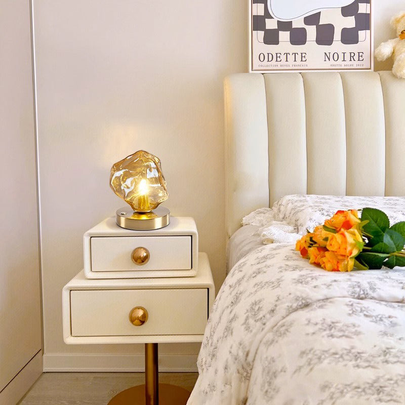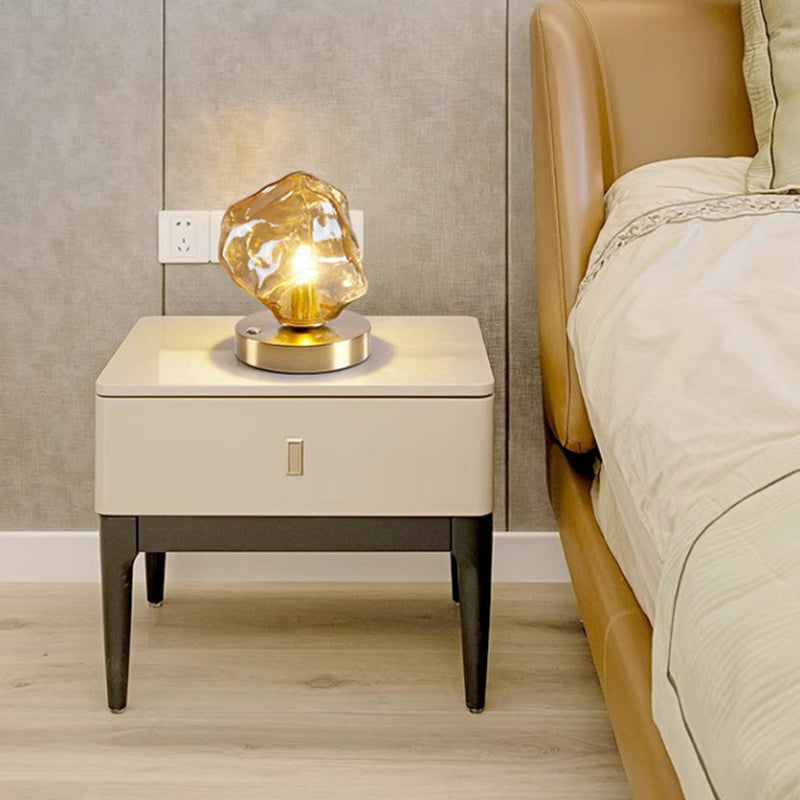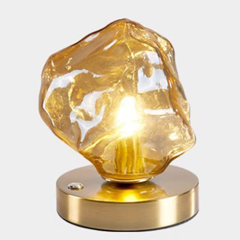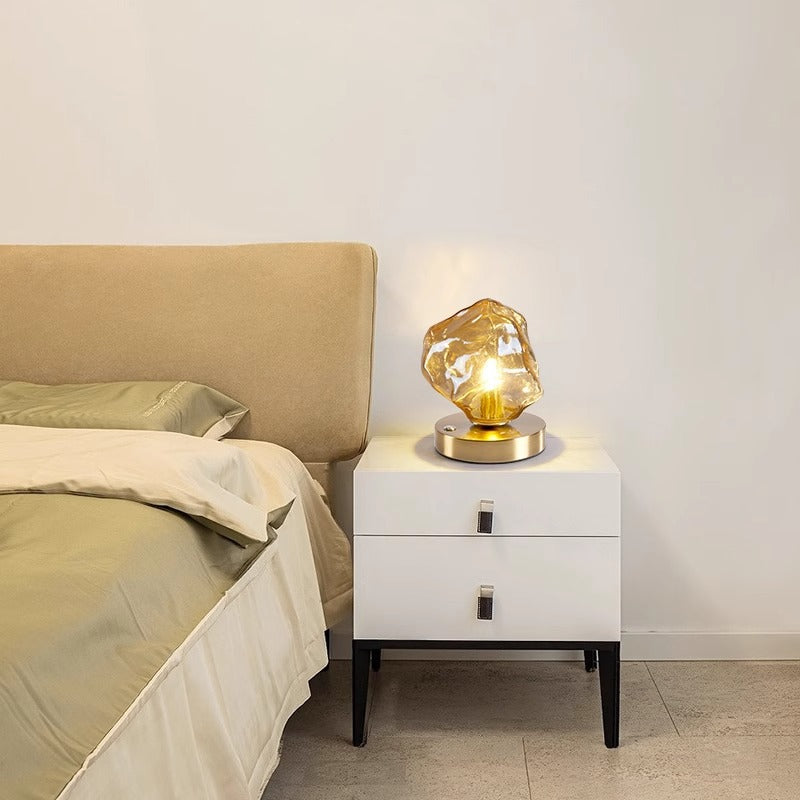 Contemporary Creative Ice Irregular Glass Aluminum Iron 1-Light Table Lamp For Bedroom
