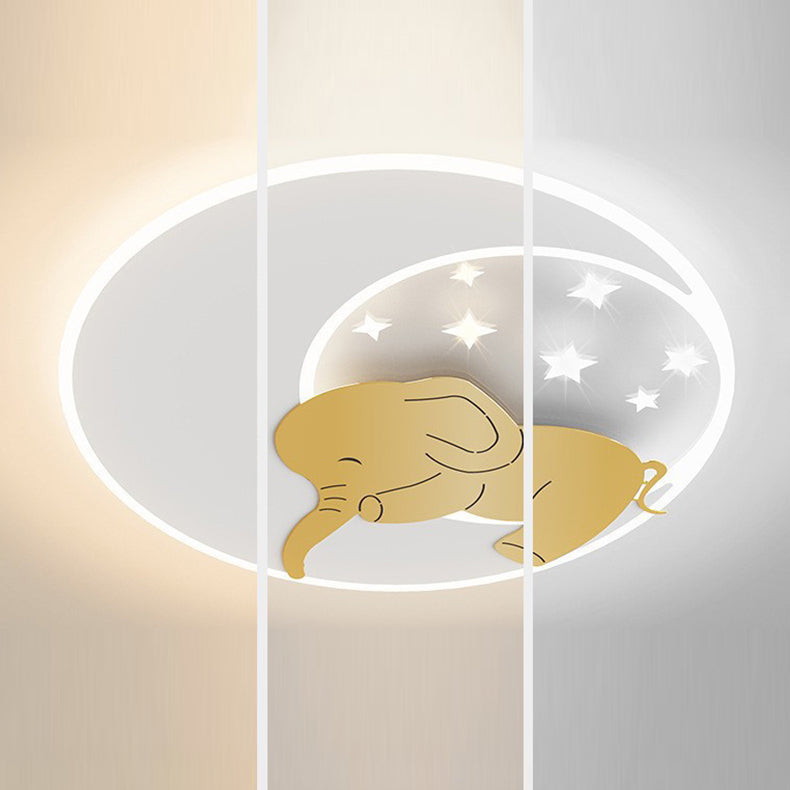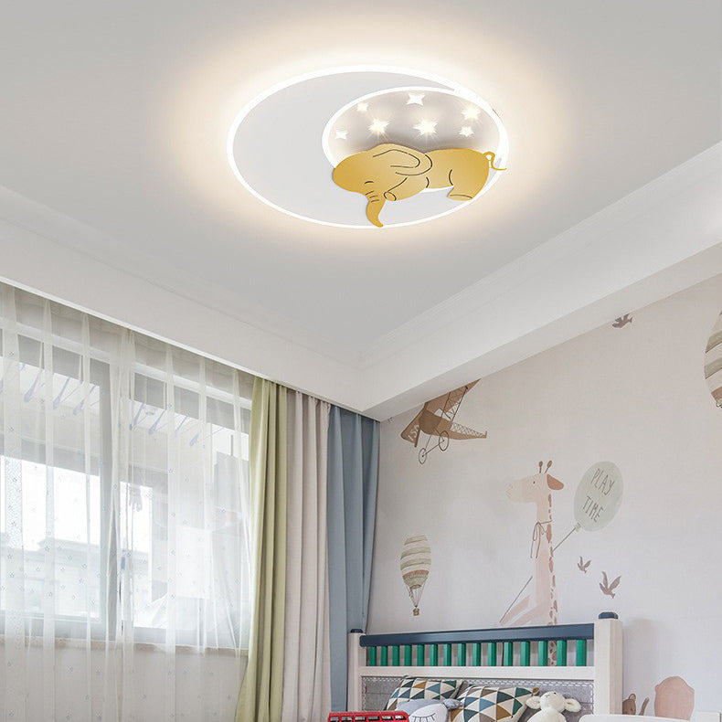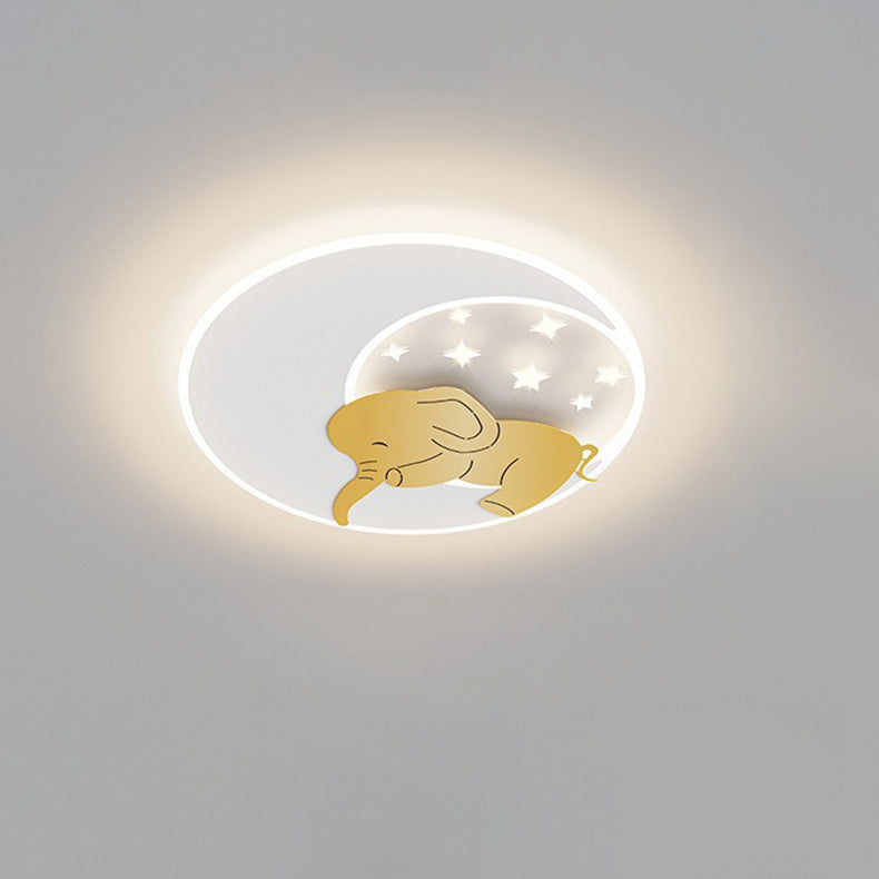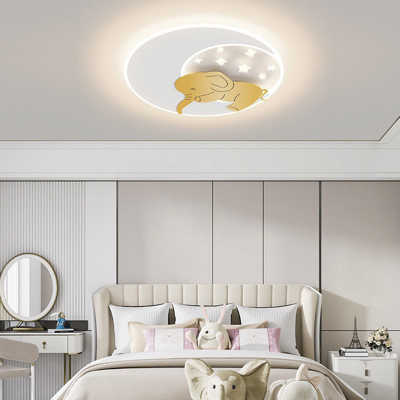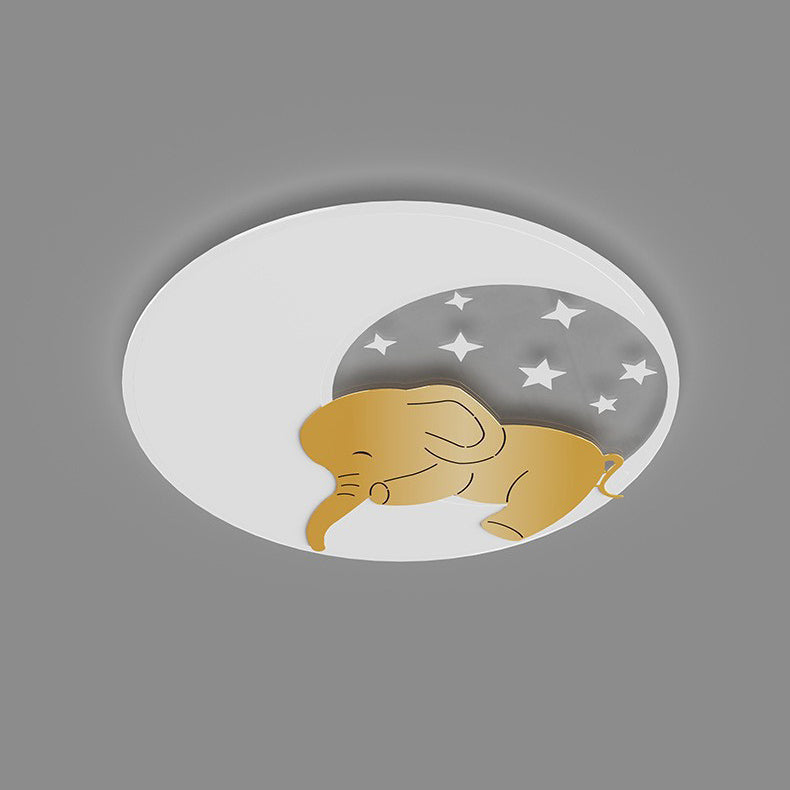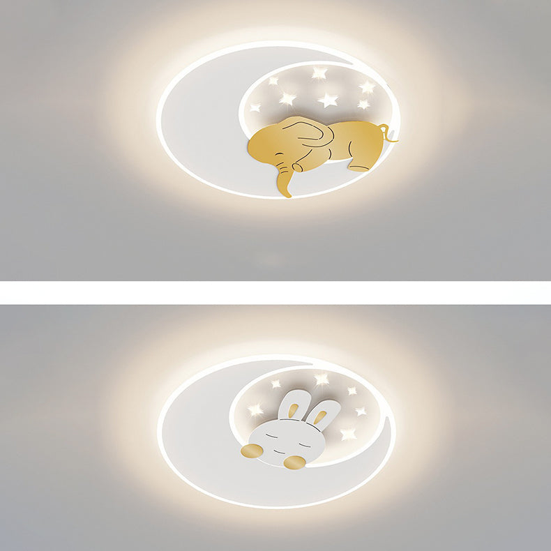 Contemporary Creative Iron Acrylic Round Elephant Rabbit LED Flush Mount Ceiling Light For Bedroom