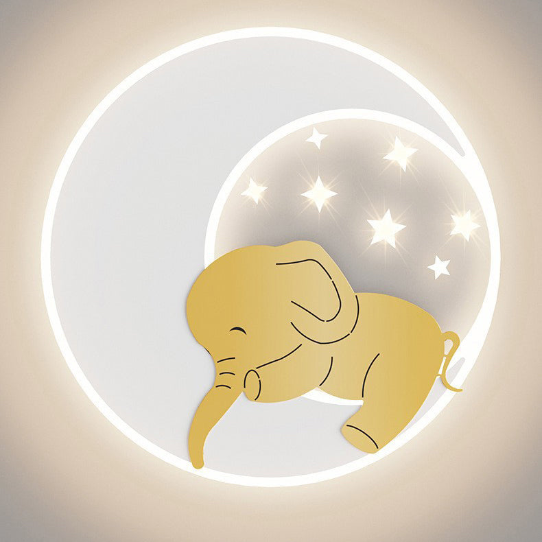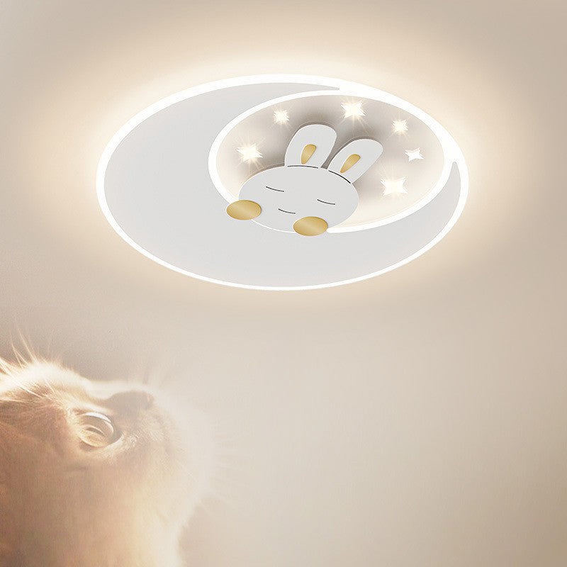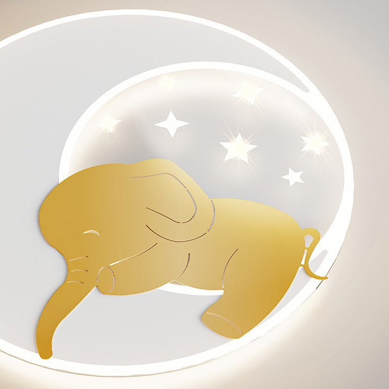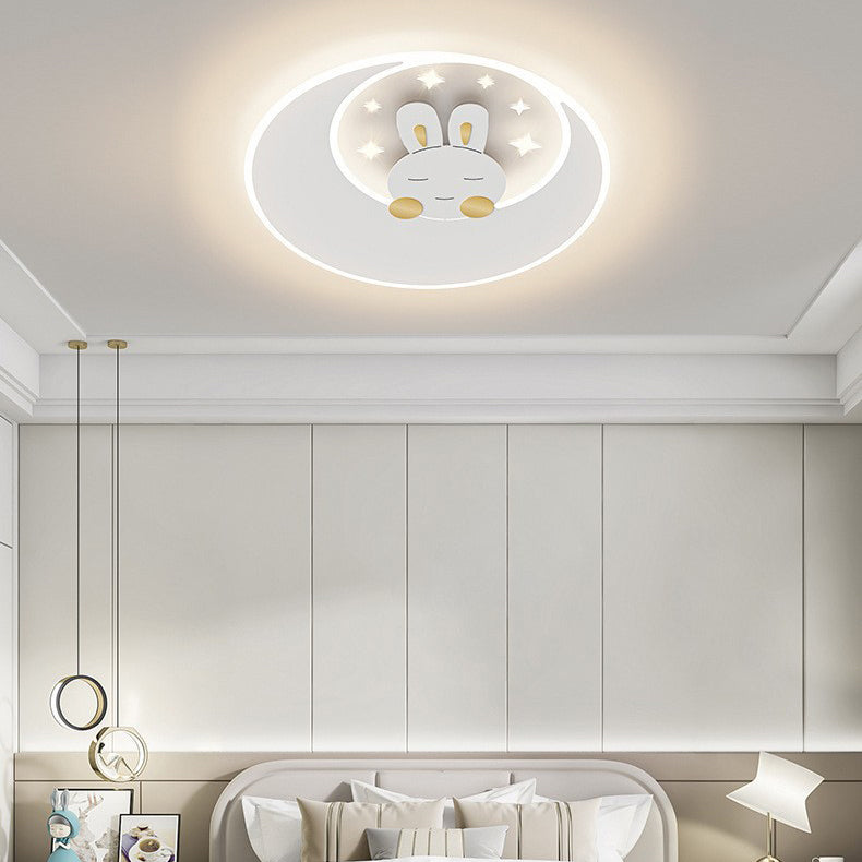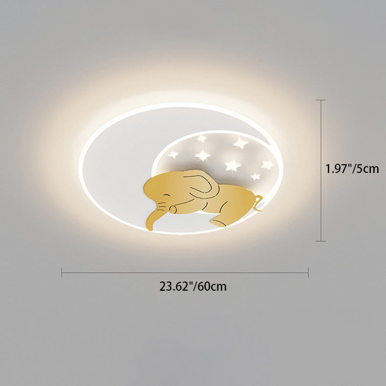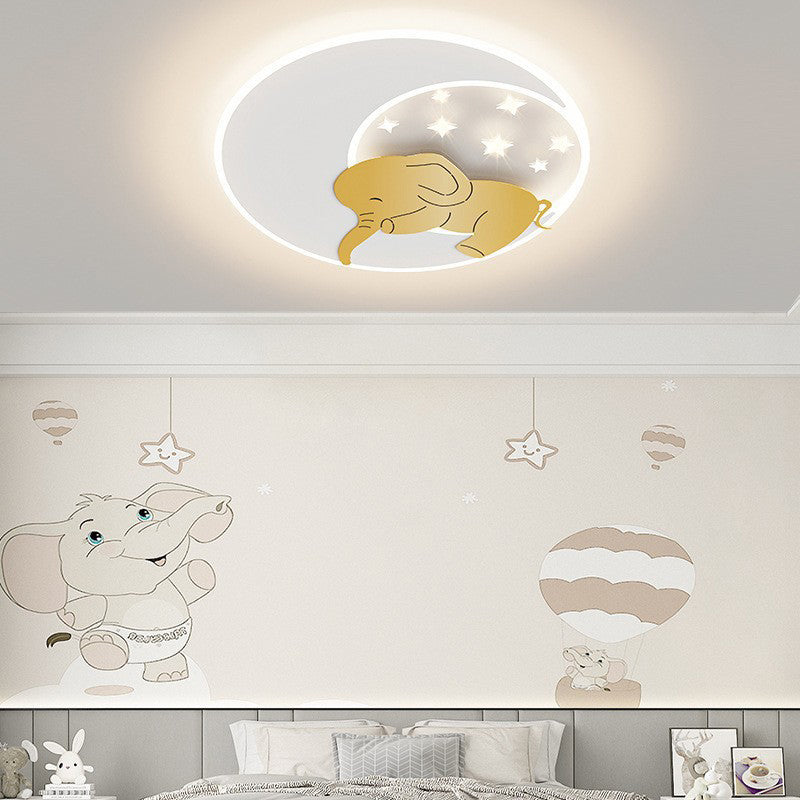 Contemporary Creative Iron Acrylic Round Elephant Rabbit LED Flush Mount Ceiling Light For Bedroom
