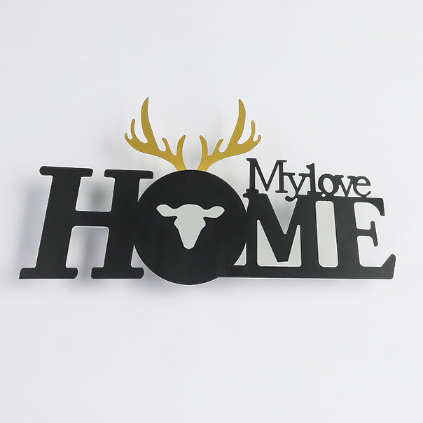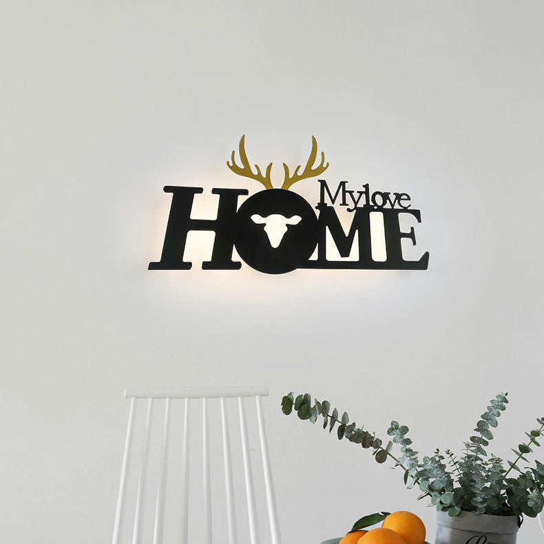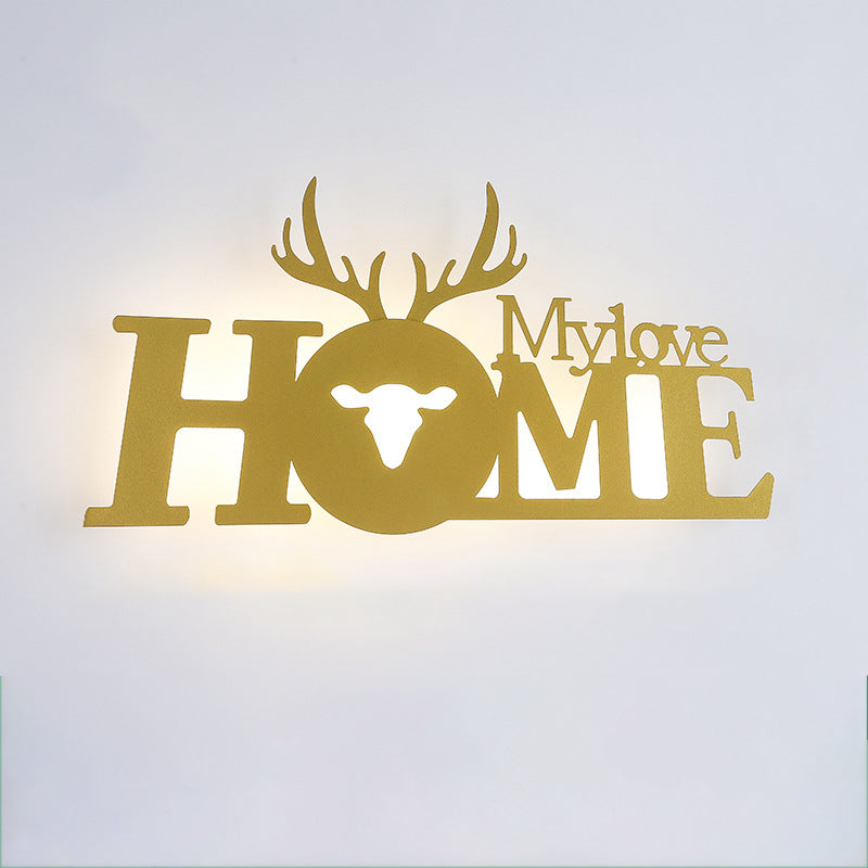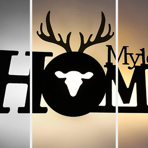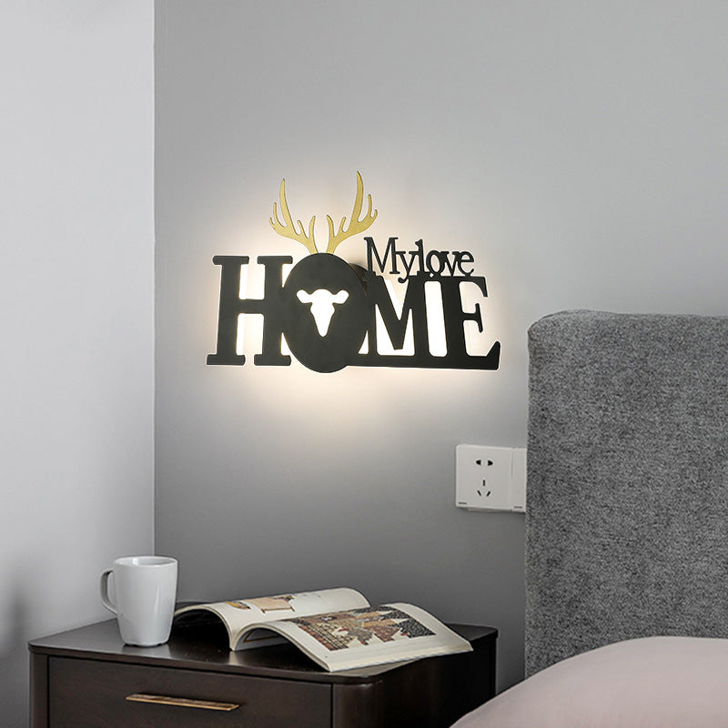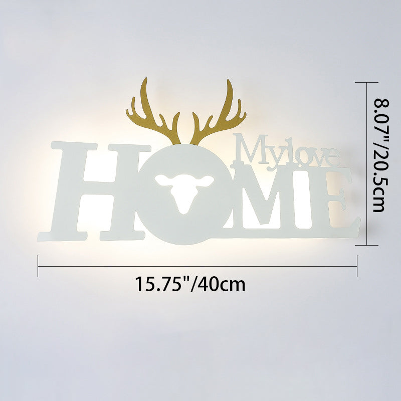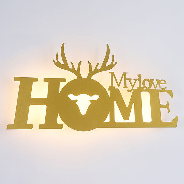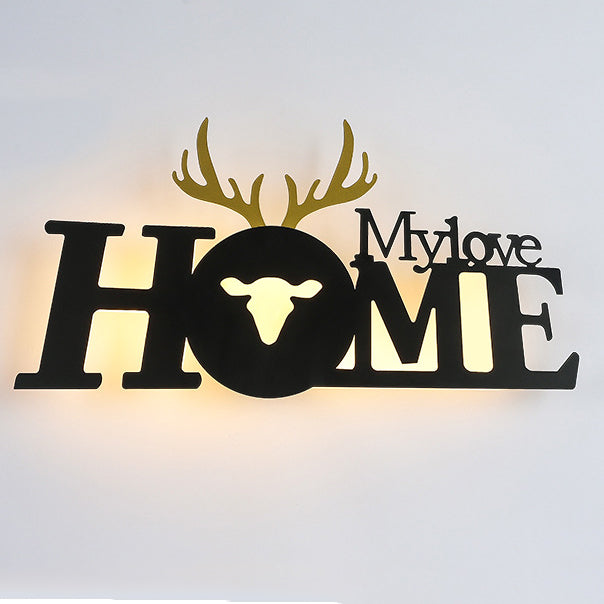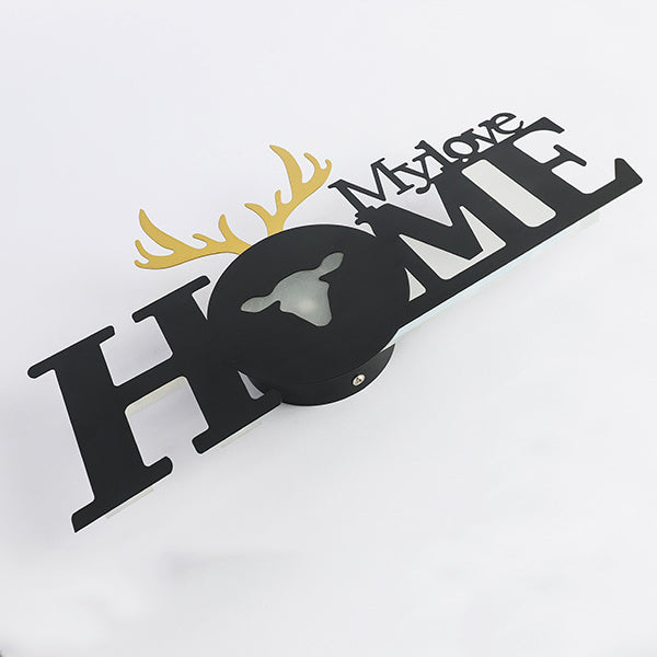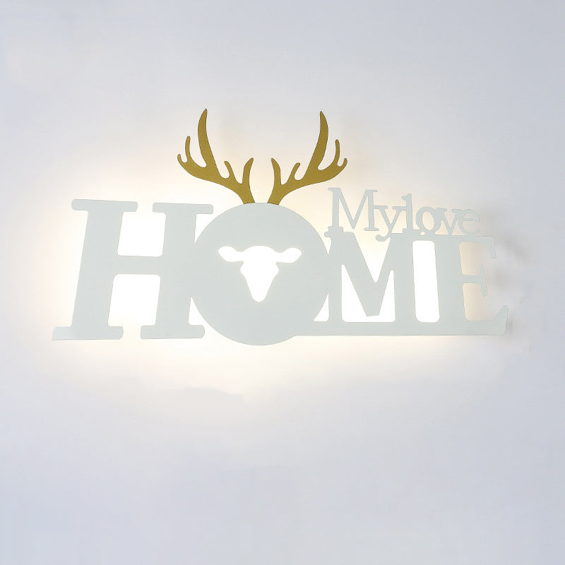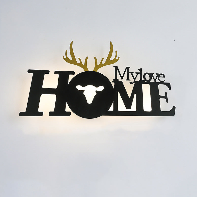 Contemporary Creative Letters Antler Decoration Iron Acrylic LED Wall Sconce Lamp For Living Room