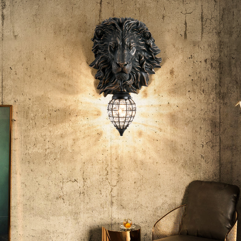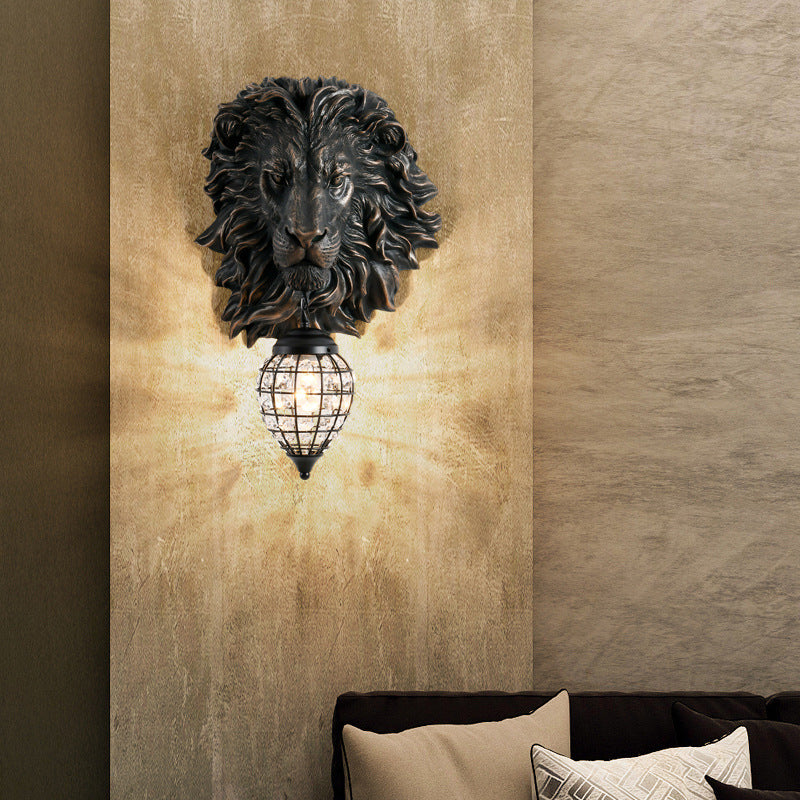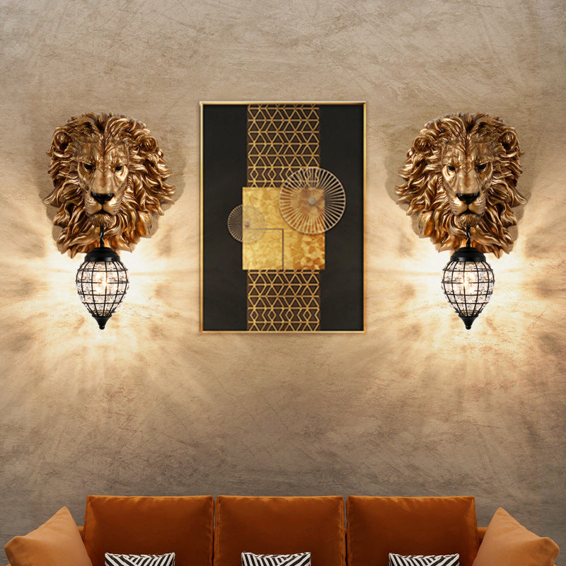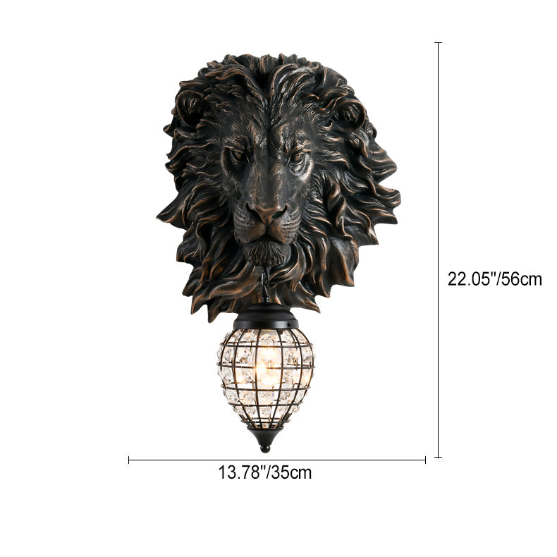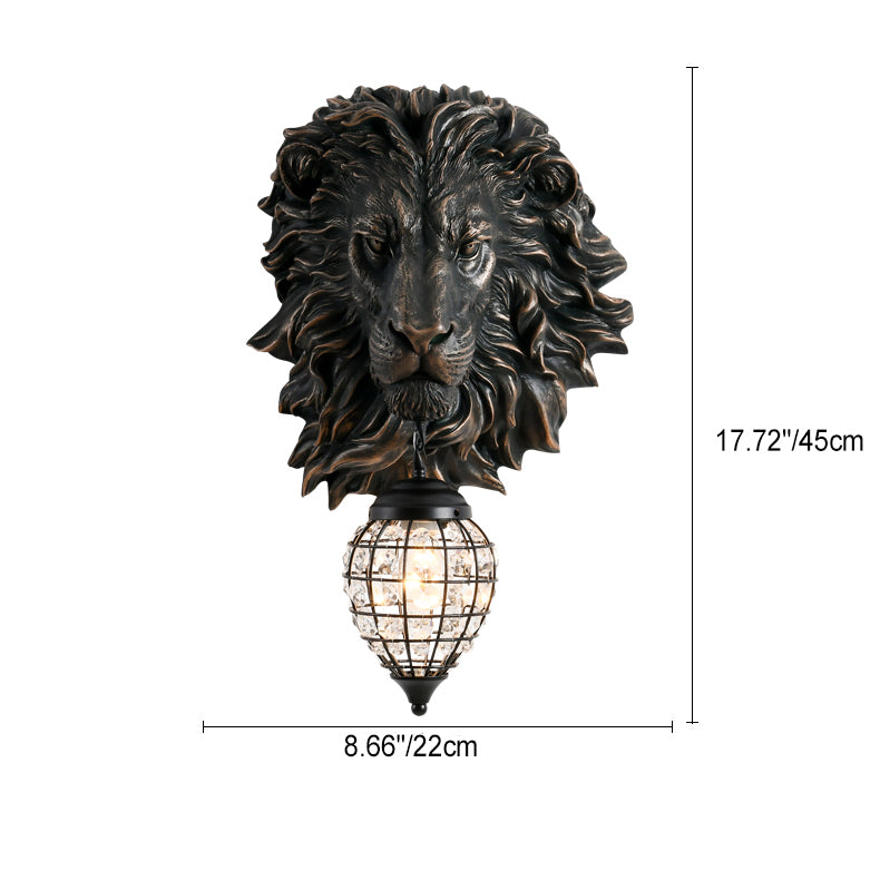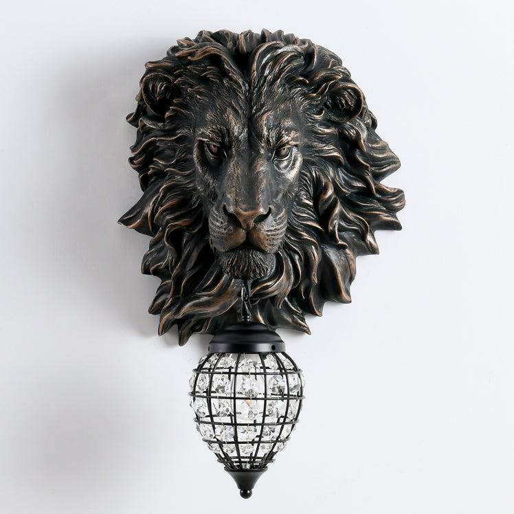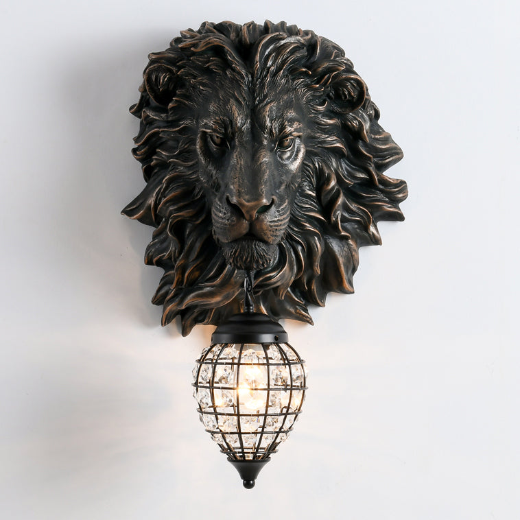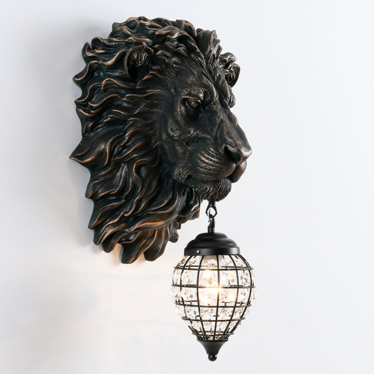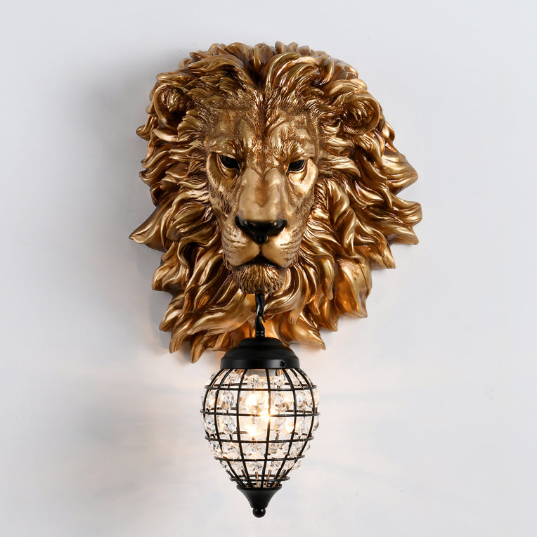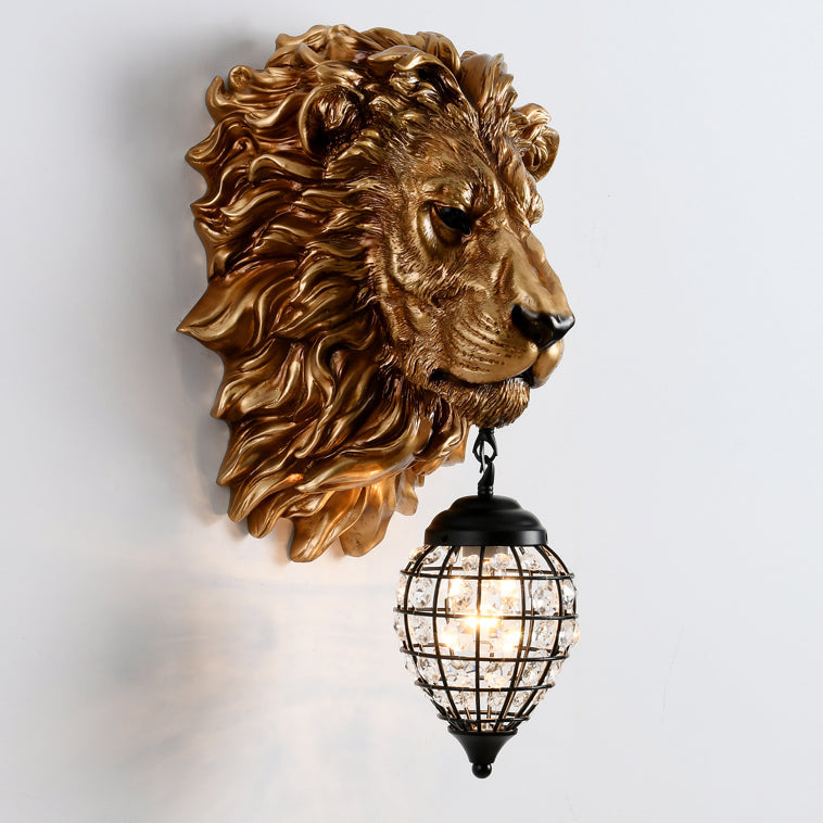 Contemporary Creative Lion Water Drop Resin Crystal 1-Light Wall Sconce Lamp For Living Room