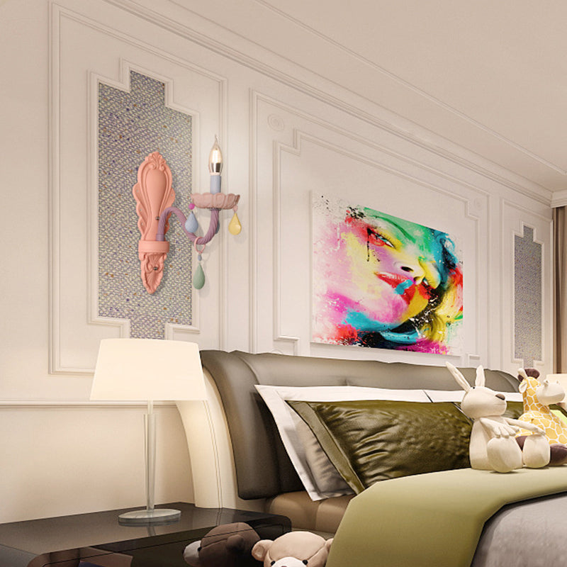 Contemporary Creative Macaron Colored Candlestick Aluminum Glass 1/2-Light Wall Sconce Lamp For Bedroom