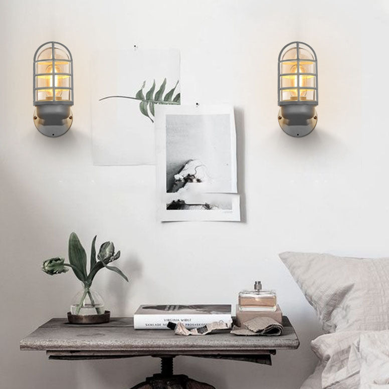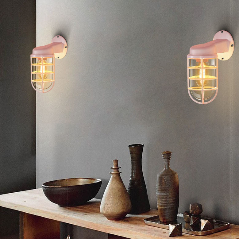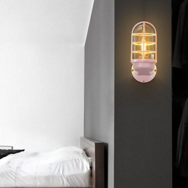 Contemporary Creative Macaron Cylinder Grid Iron Glass 1-Light Wall Sconce Lamp For Living Room