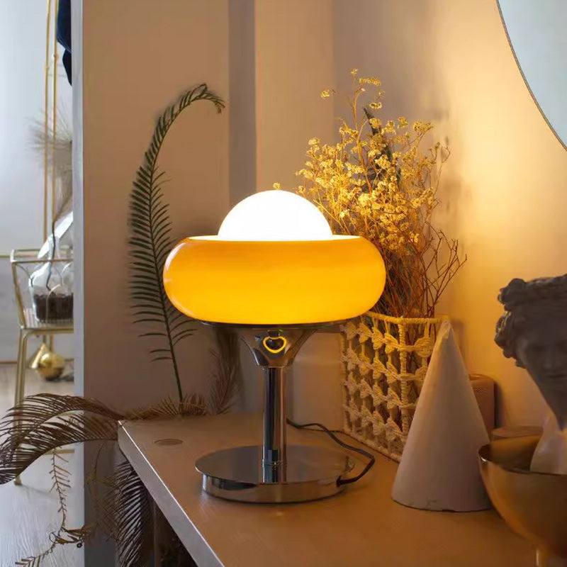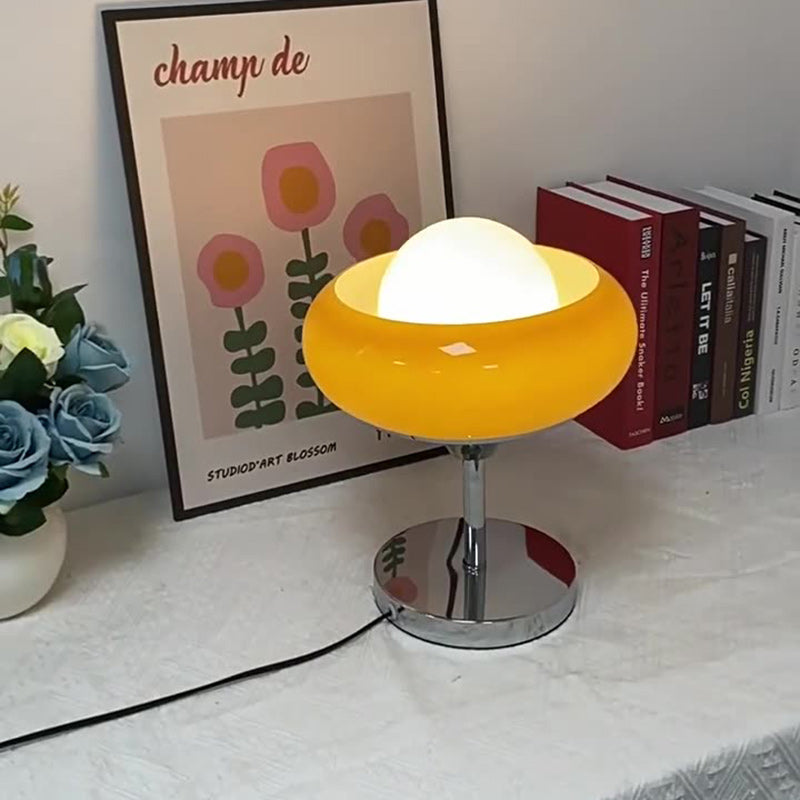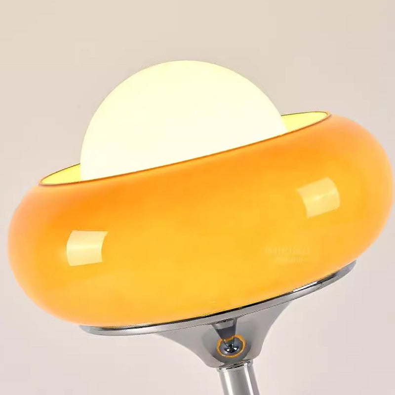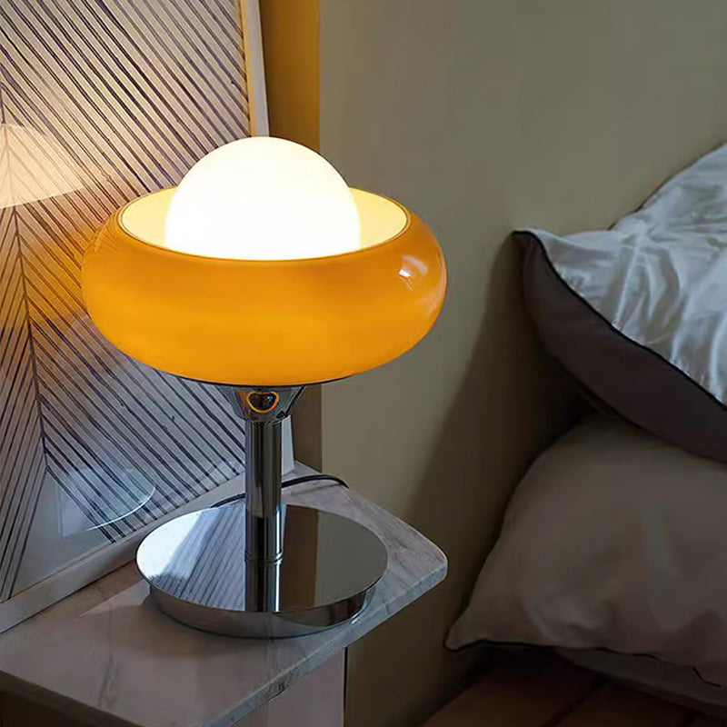 Contemporary Creative Metal & Glass Egg Tart-Shape Round 1-Light Table Lamp For Bedroom & Living Room