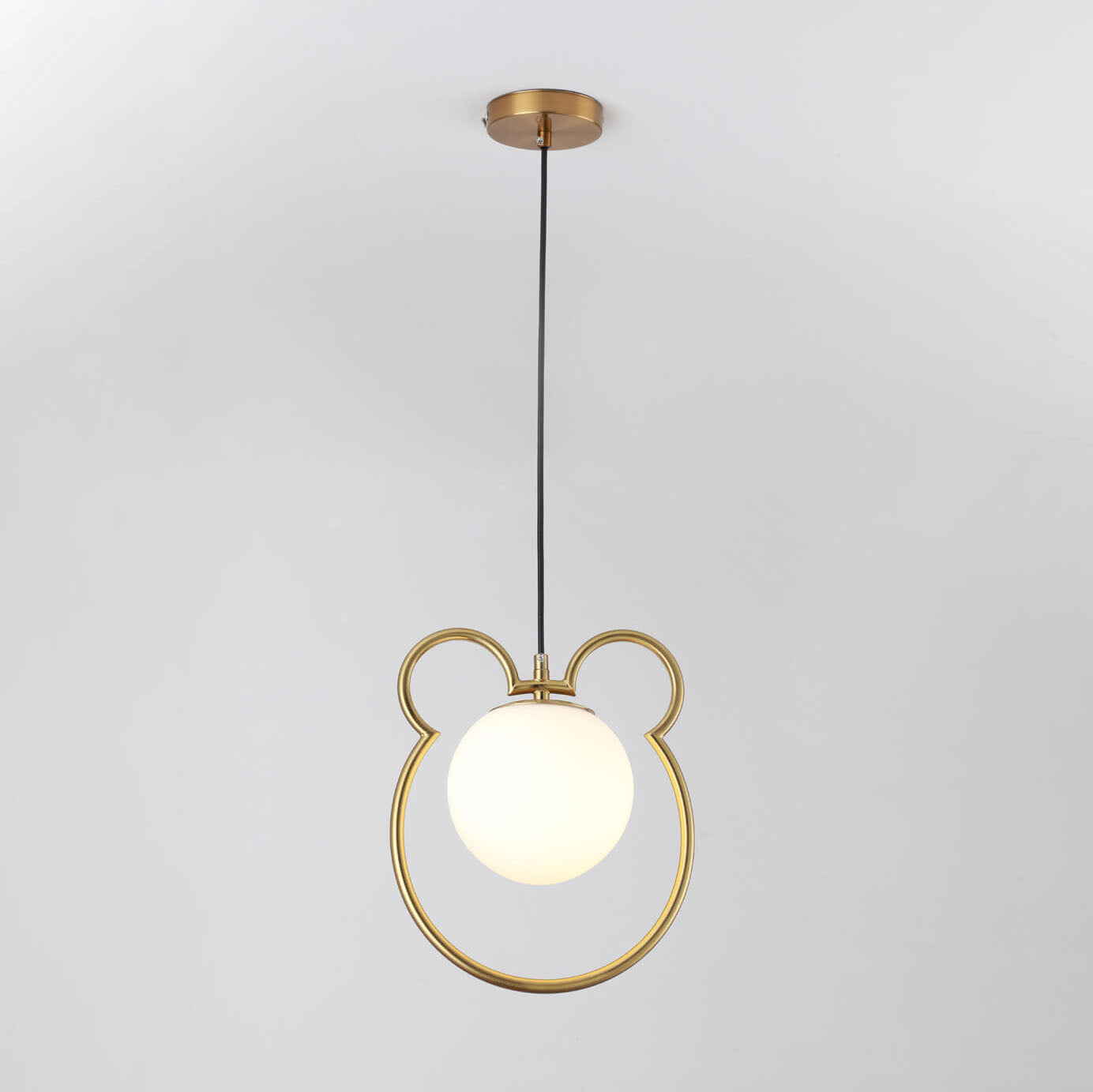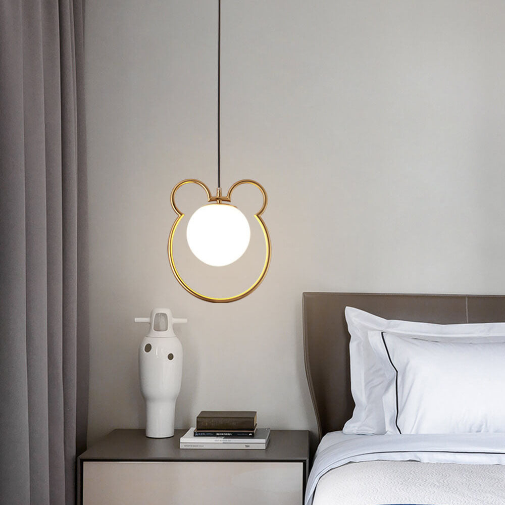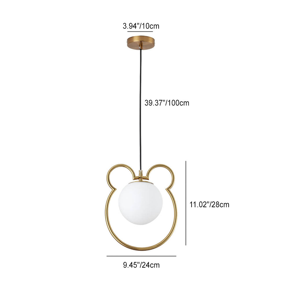 Contemporary Creative Mouse Iron Frame Globe Glass Shade 1-Light Pendant Light For Bedroom