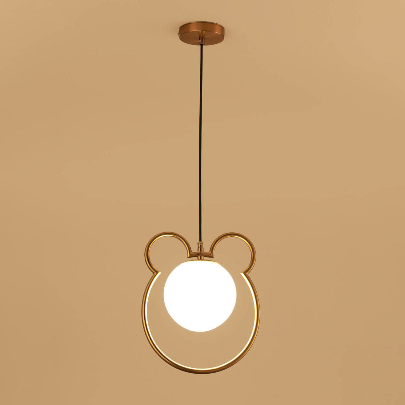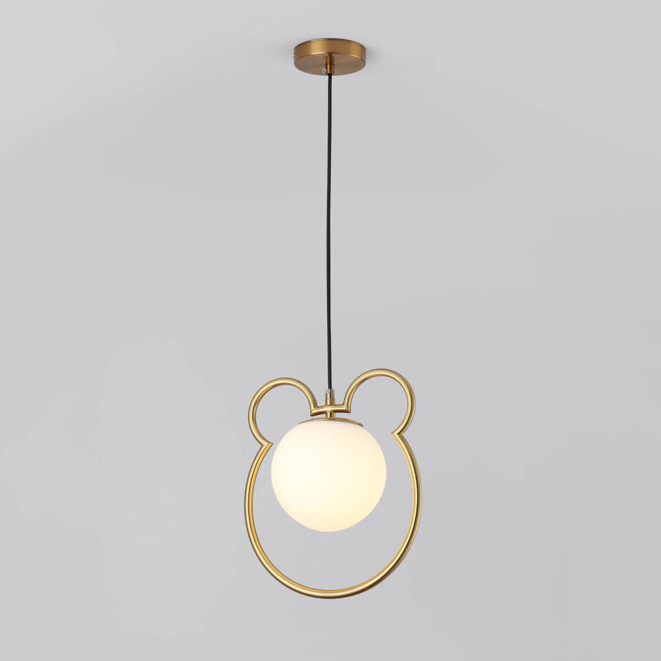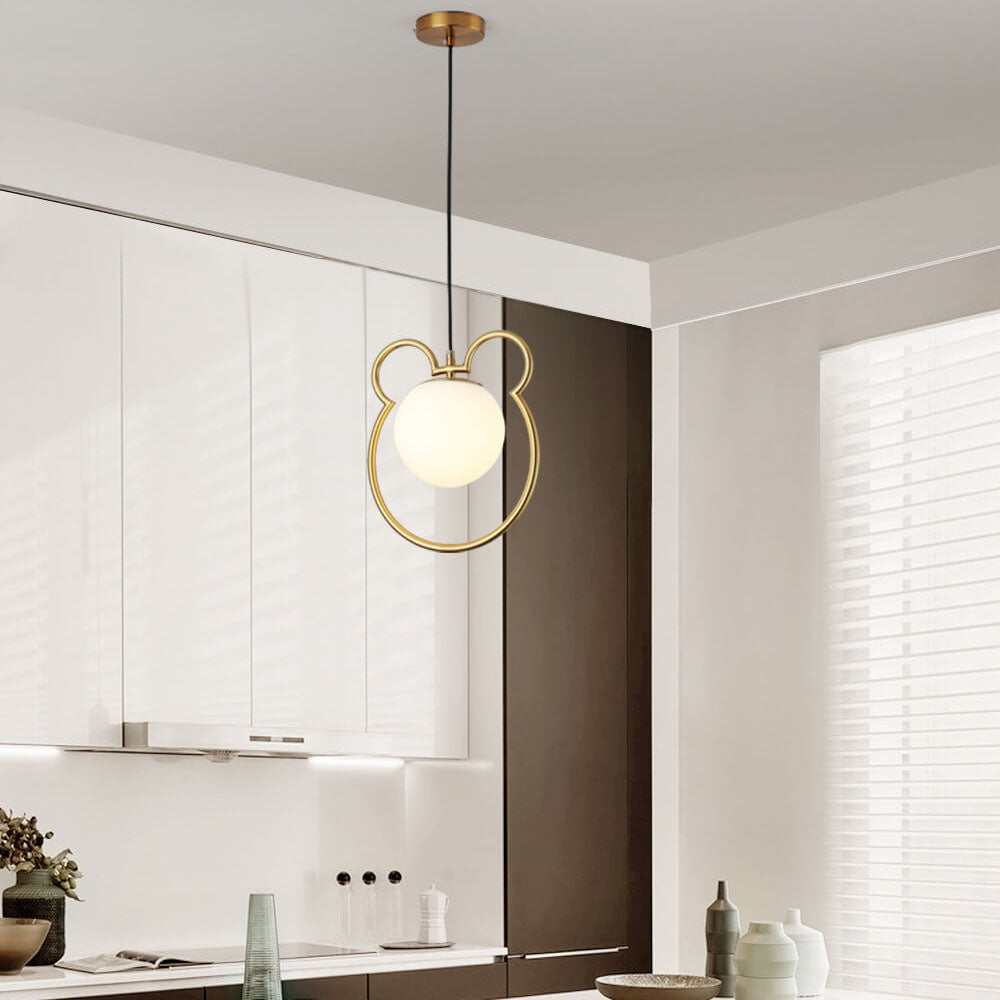 Contemporary Creative Mouse Iron Frame Globe Glass Shade 1-Light Pendant Light For Bedroom