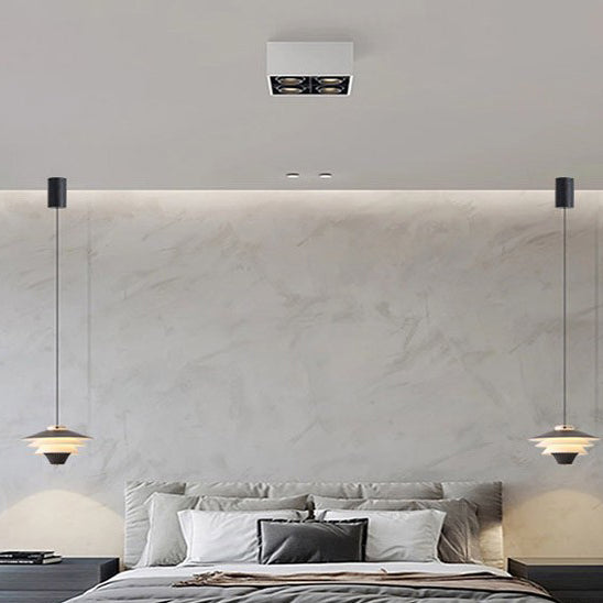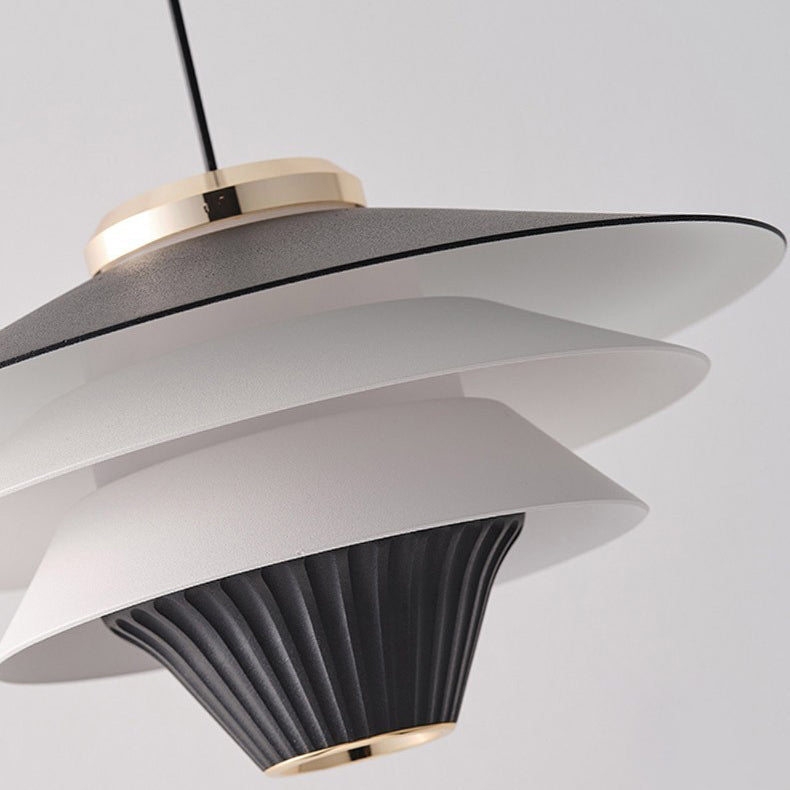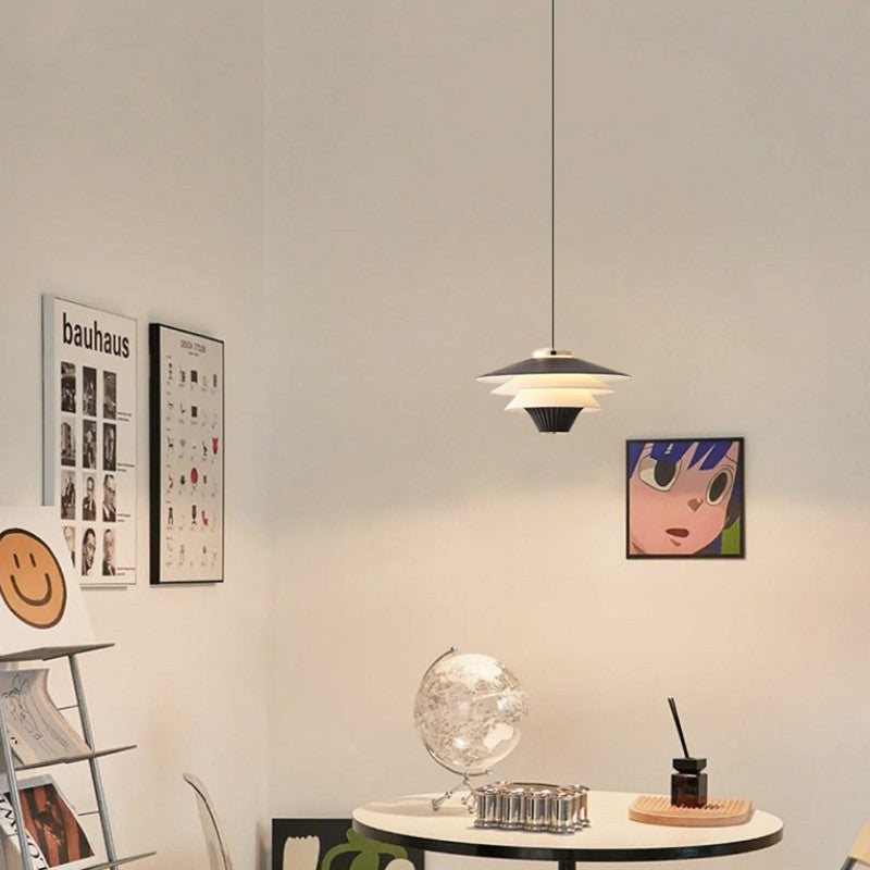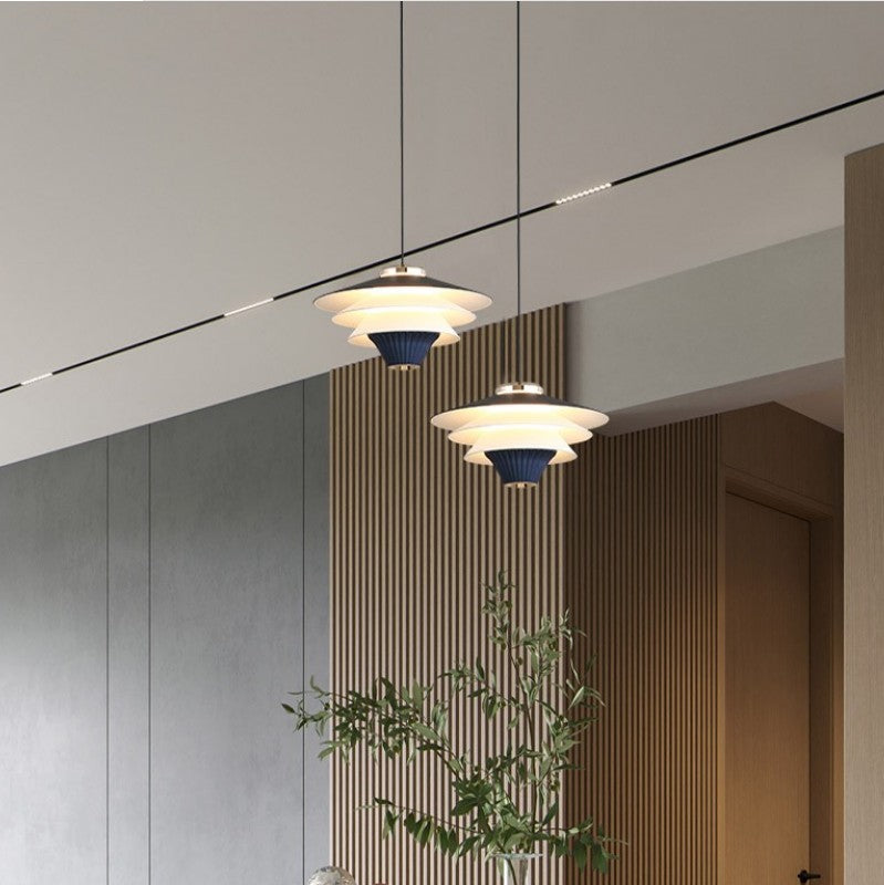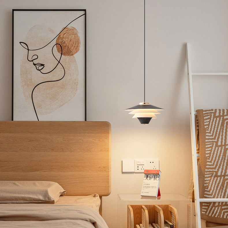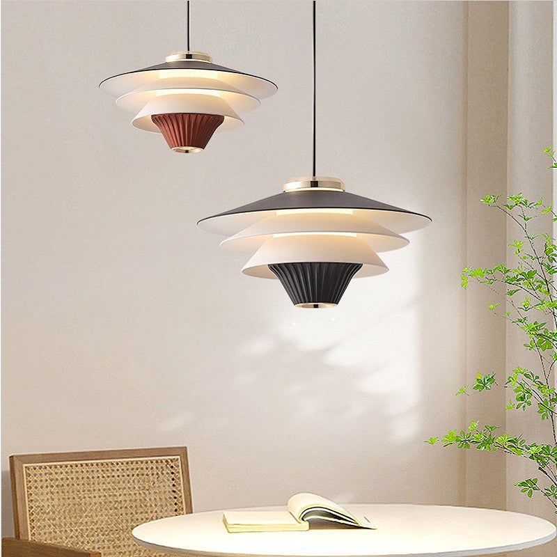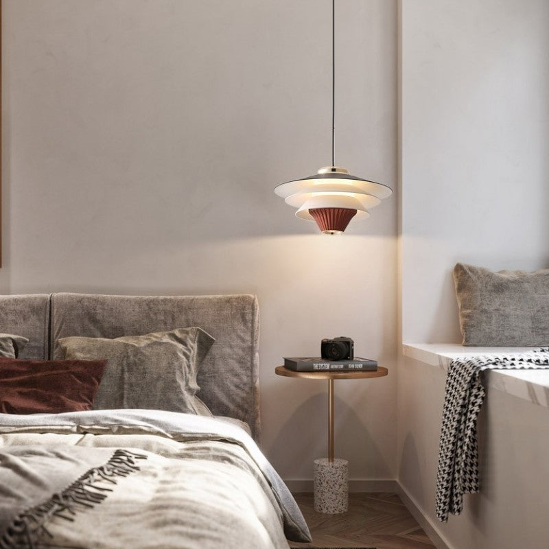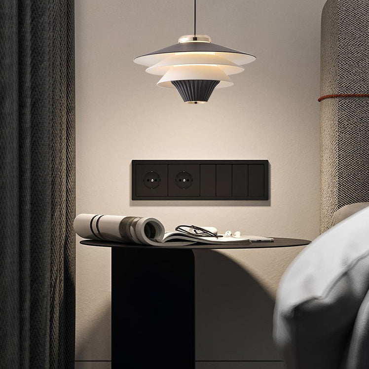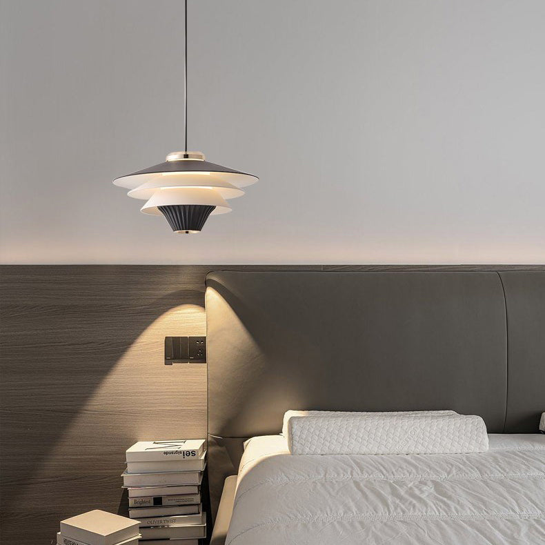Contemporary Creative Multi-Tier Round Flying Saucer Iron Aluminum Acrylic LED Pendant Light For Bedroom