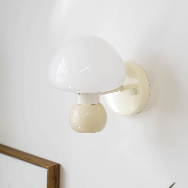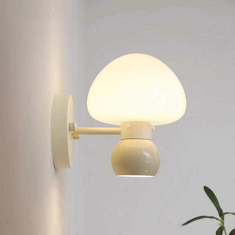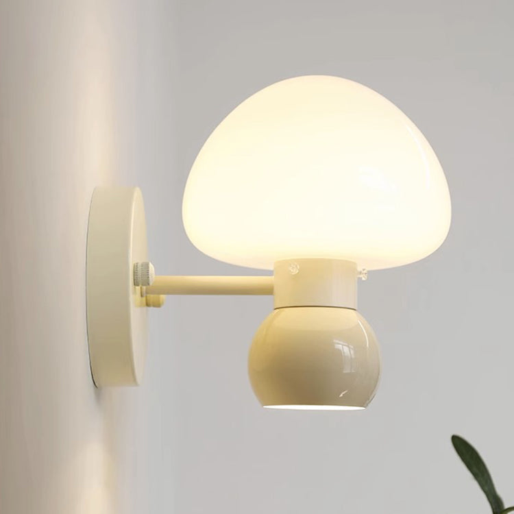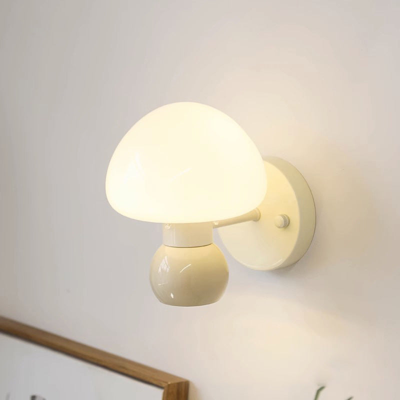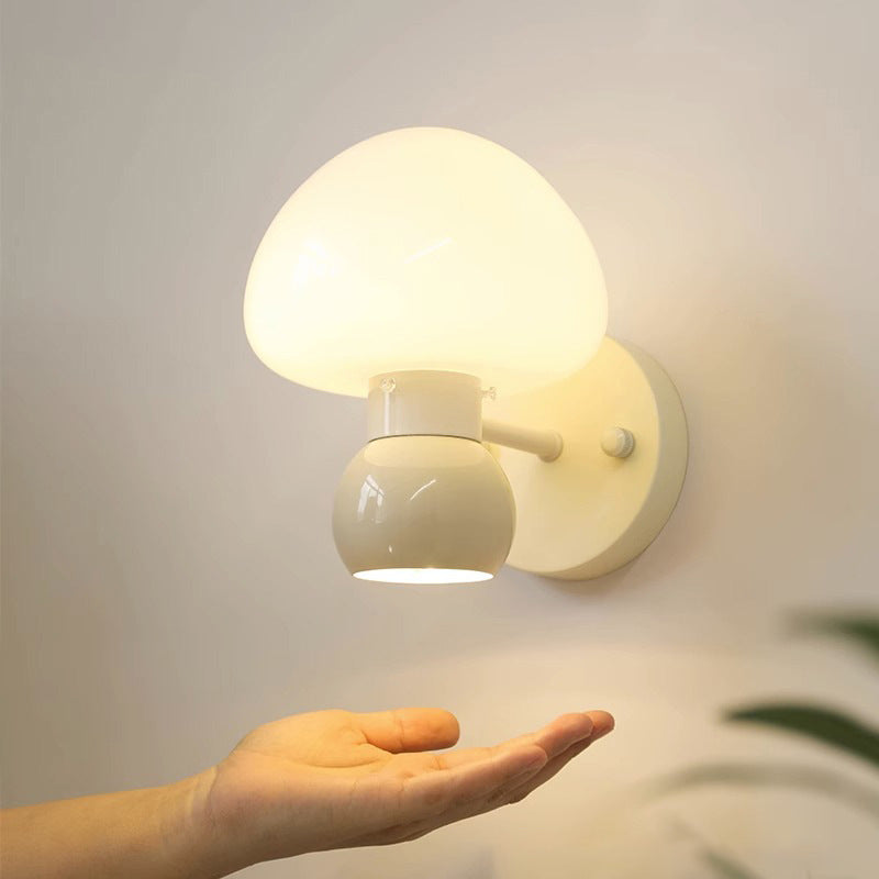 Contemporary Creative Mushroom Iron Glass 1-Light Wall Sconce Lamp For Bedroom
