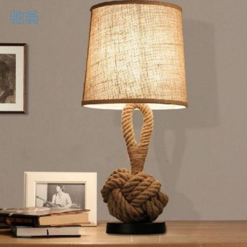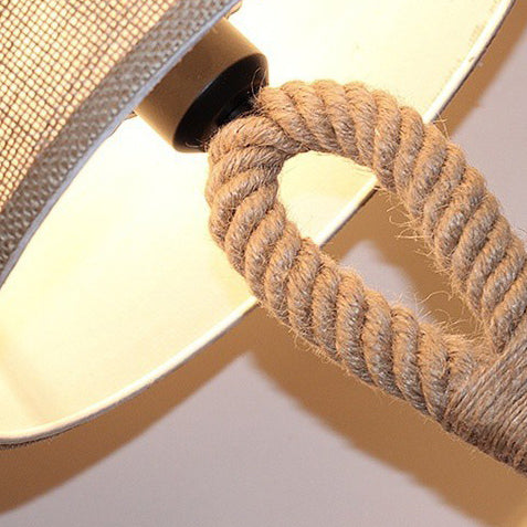 Contemporary Creative Nautical Twisted Rope Knot Drum Shape Fabric Iron 1-Light Table Lamp For Bedroom