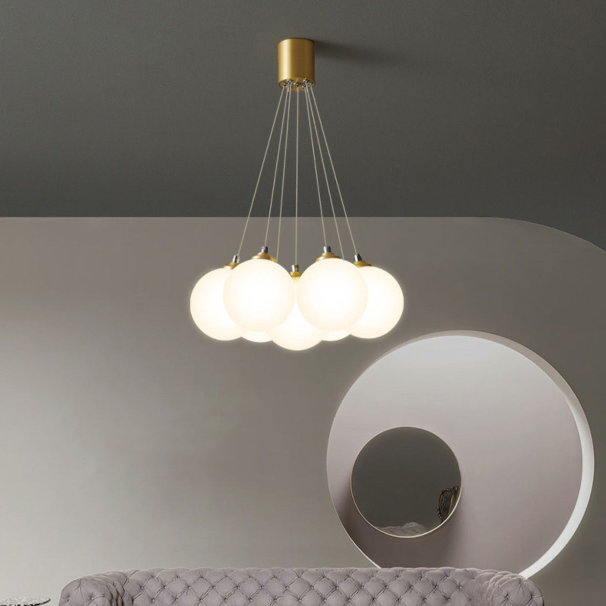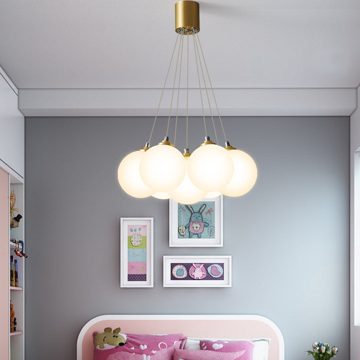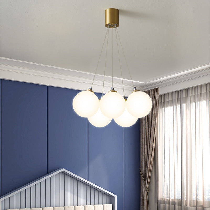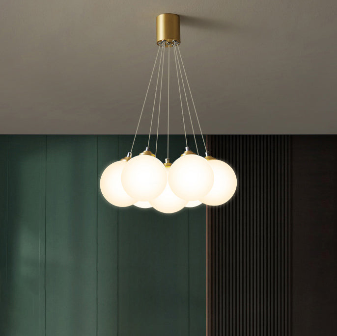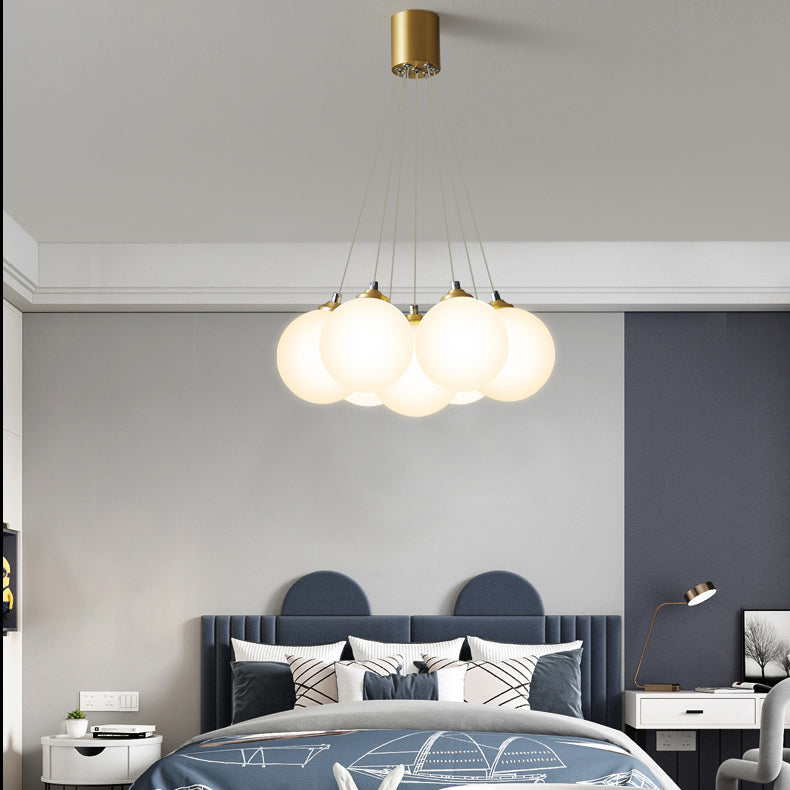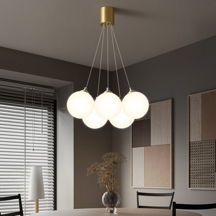Contemporary Creative Orb Balloon Copper Glass 4/5/7 Light Chandelier For Living Room