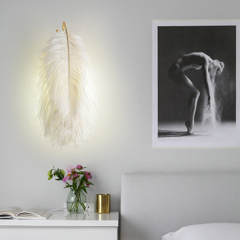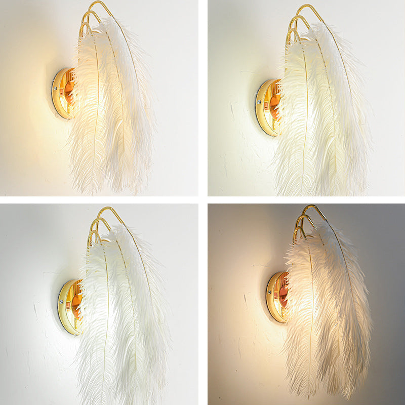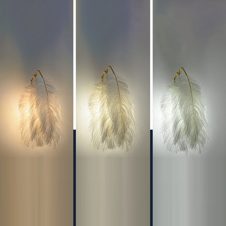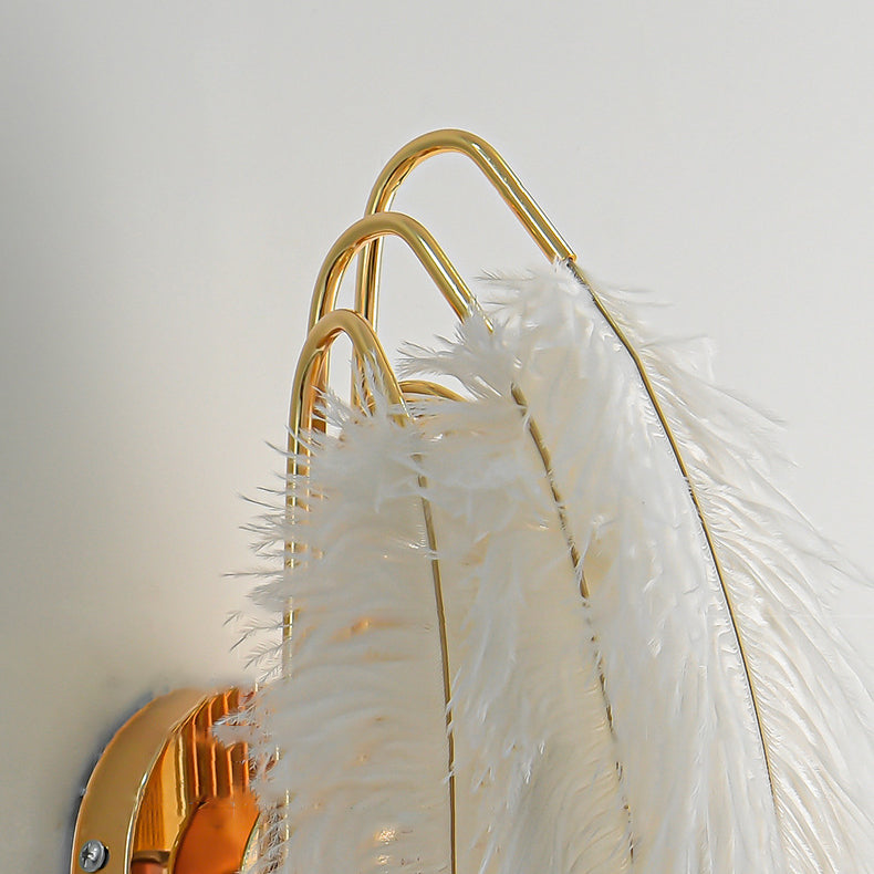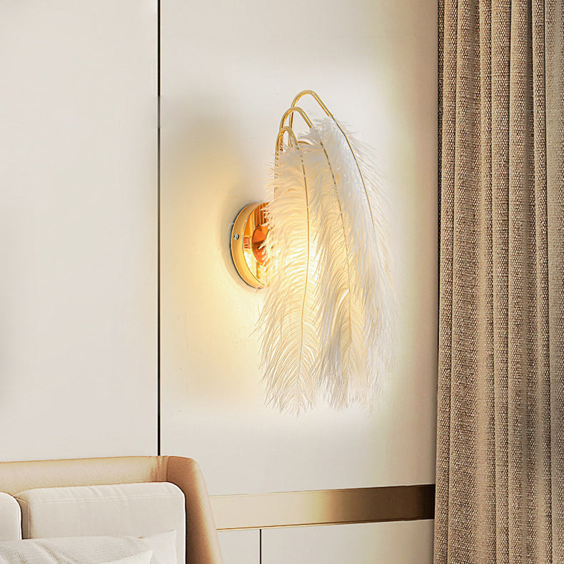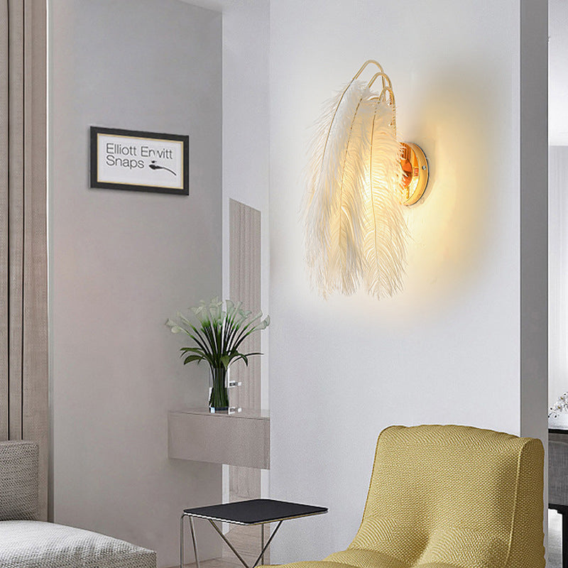 Contemporary Creative Ostrich Feather Design 1-Light Wall Sconce Lamp For Living Room