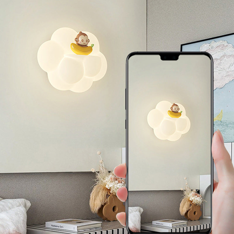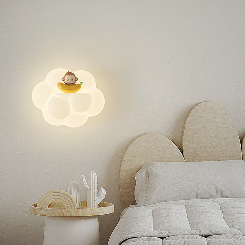 Contemporary Creative PE Cloud Shade Animal Bear Monkey LED Wall Sconce Lamp For Bedroom
