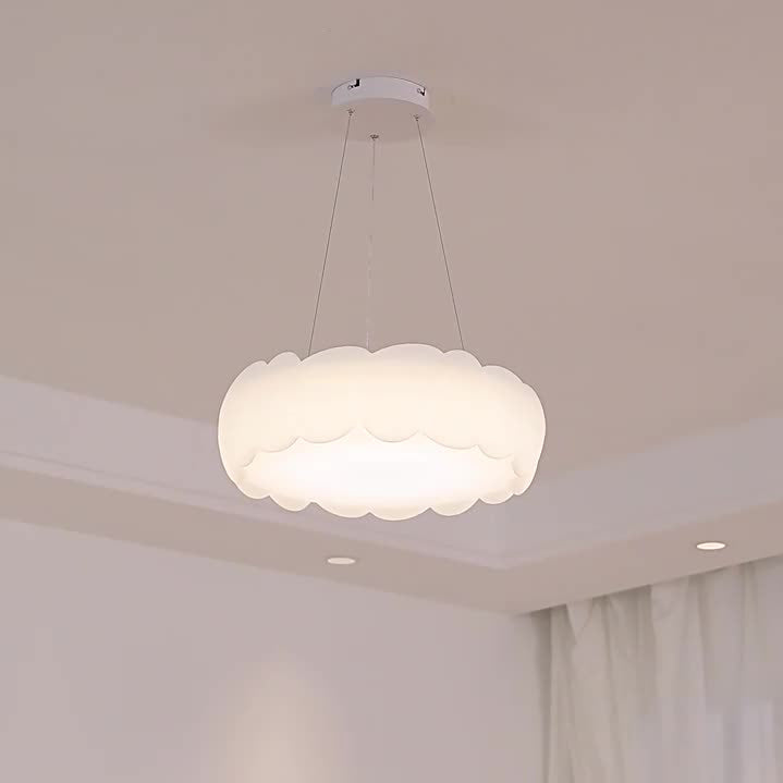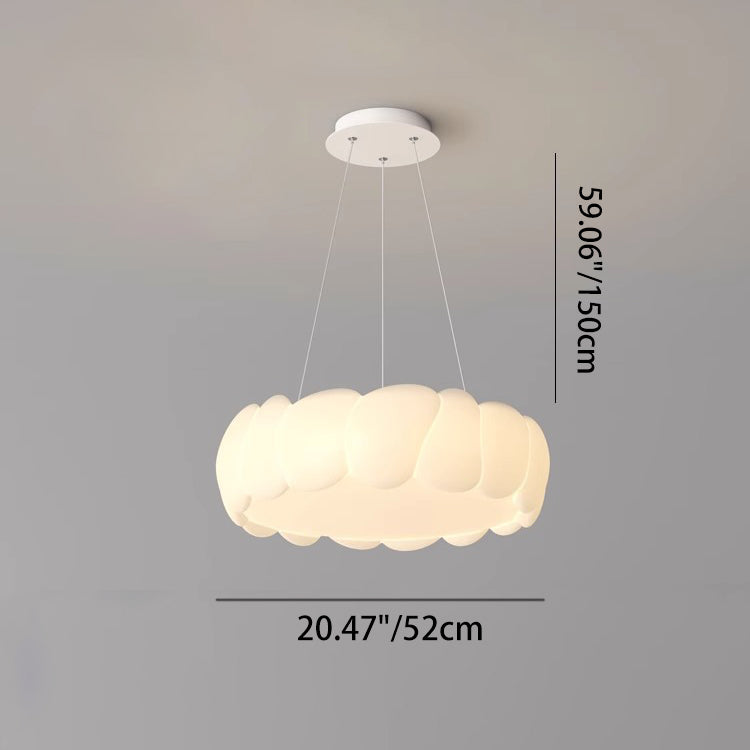 Featuring a white bubble-wave round design, this modern LED chandelier offers high color rendering, anti-glare, and low blue light illumination—perfect for creating a warm, eye-friendly atmosphere in your dining or living room. Crafted from durable PE and iron with a playful yet elegant silhouette.