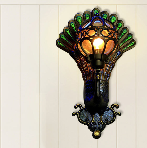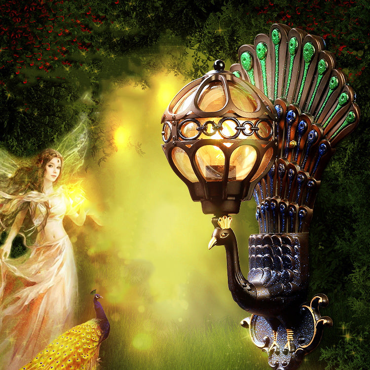 Contemporary Creative Peacock Sphere Aluminum Metal Glass 1-Light Wall Sconce Lamp For Hallway