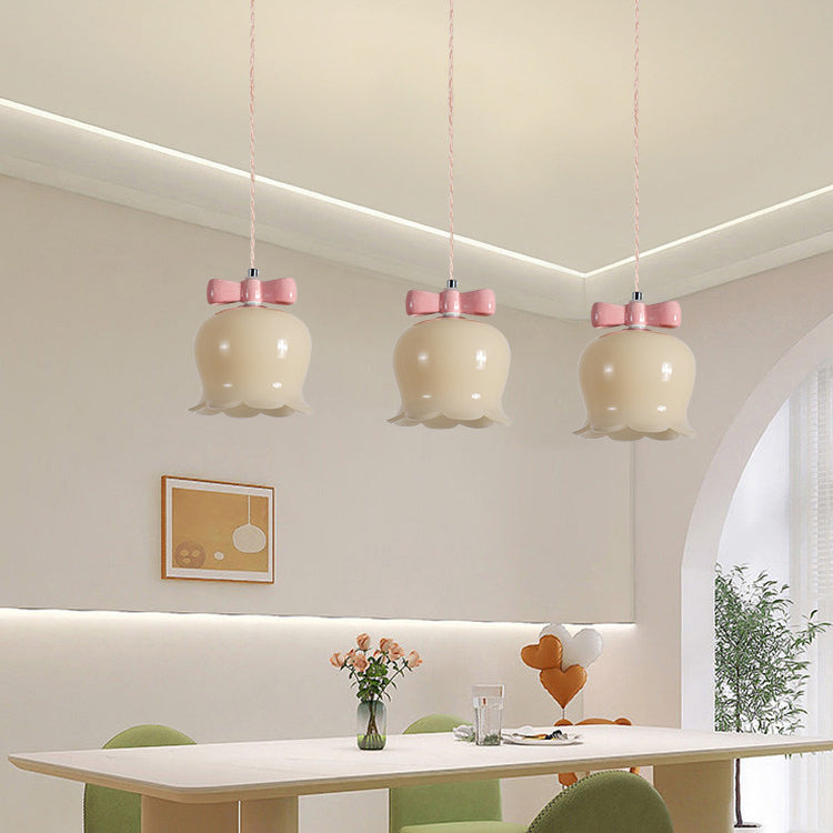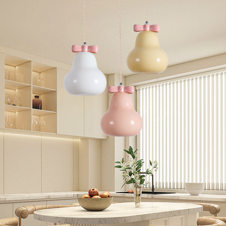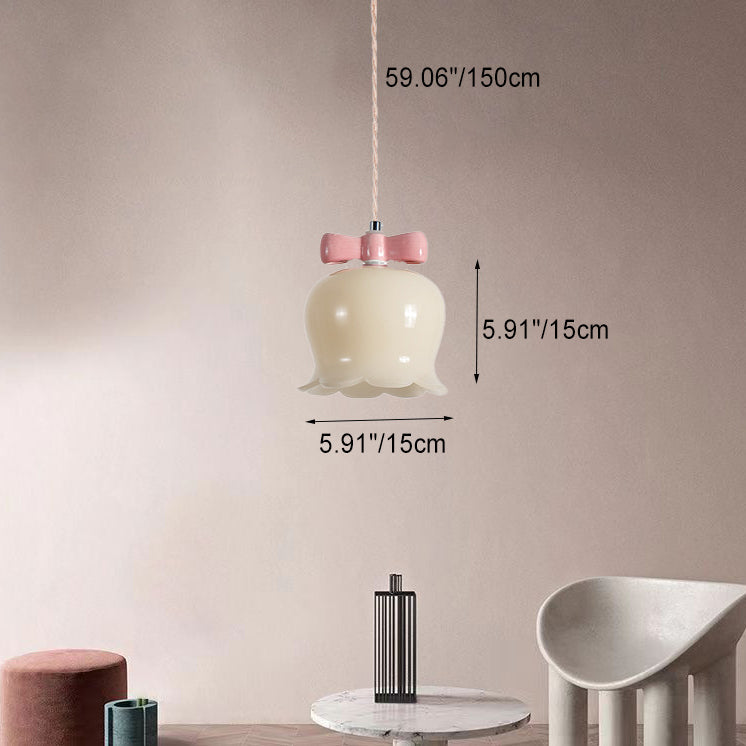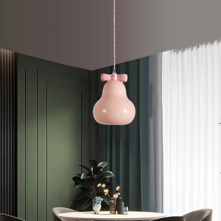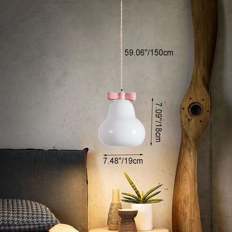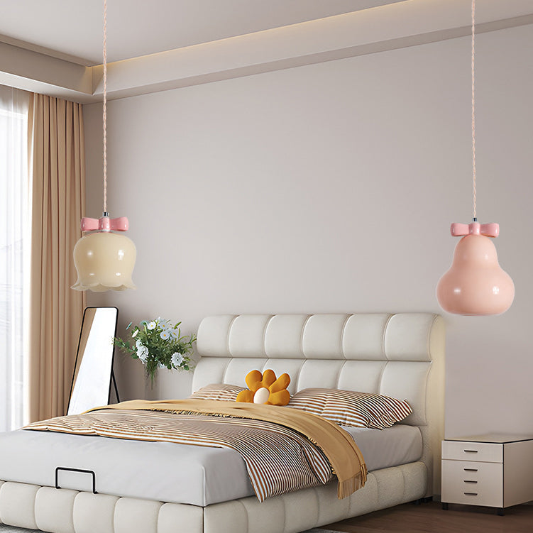 Contemporary Creative Pear Chimes Orchid Bow Shape Round Iron Glass Ceramic 1-Light Pendant Light For Bedroom