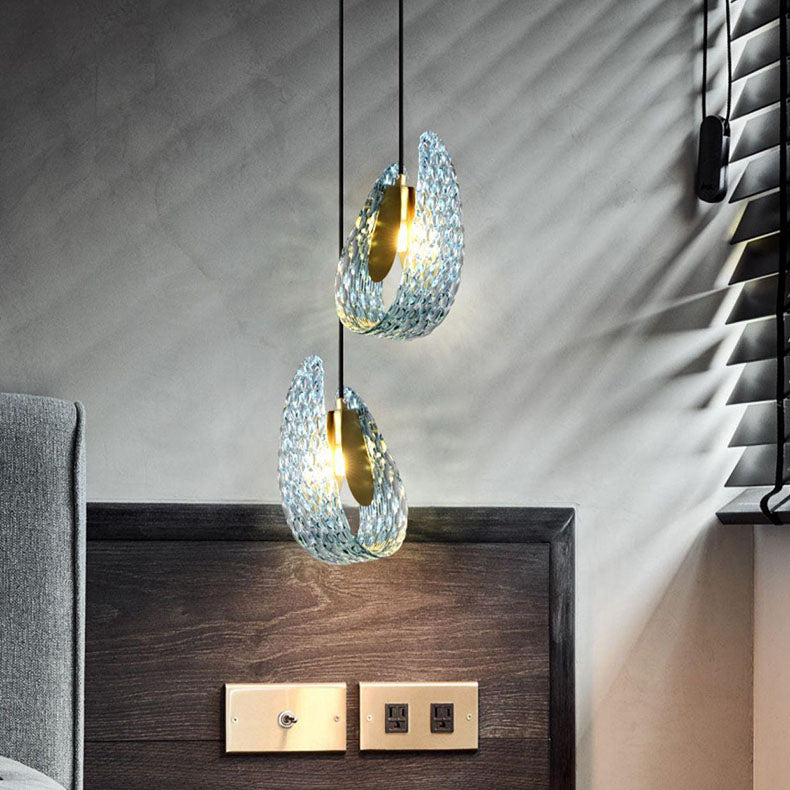 Contemporary Creative Petal Copper Glass 1-Light Pendant Light For Bedroom