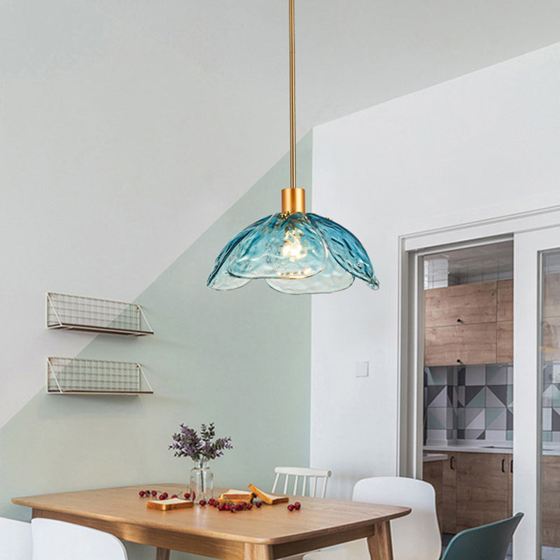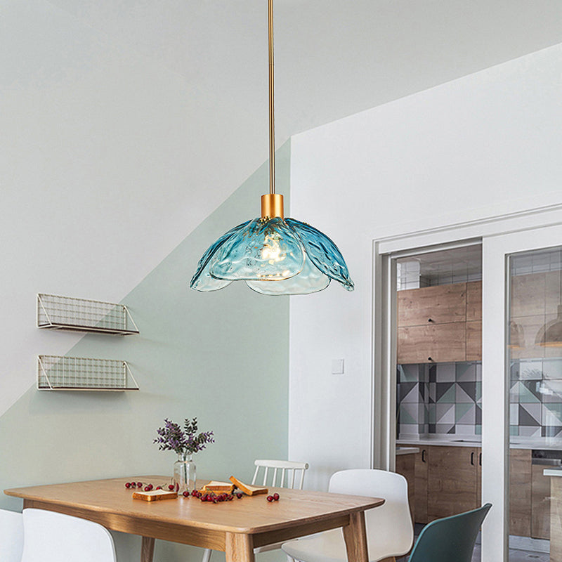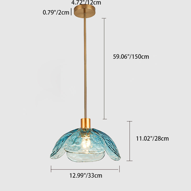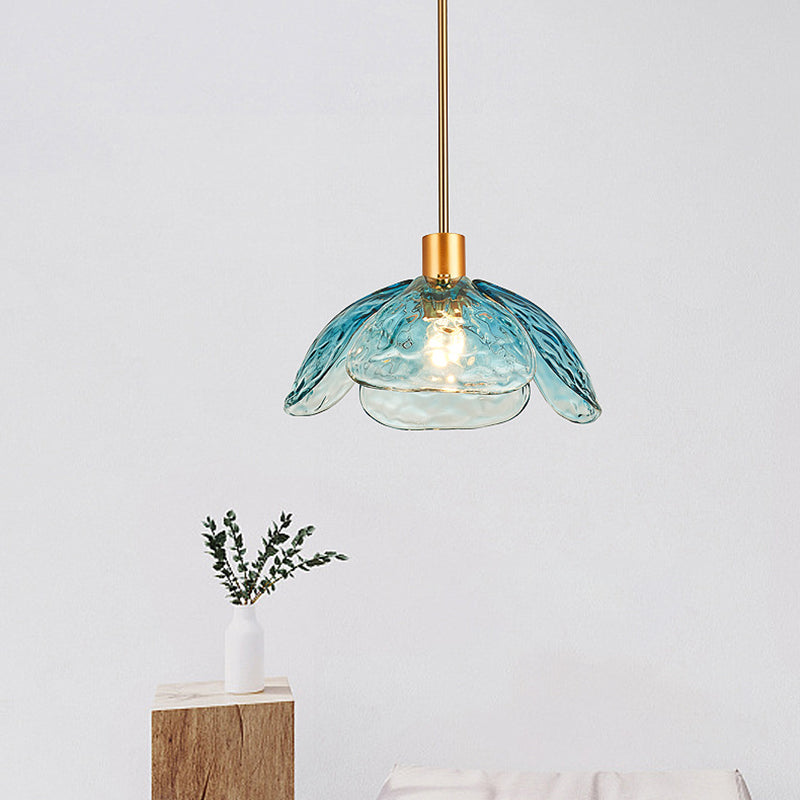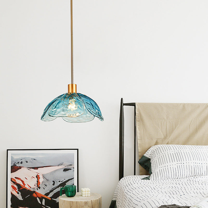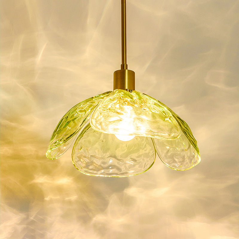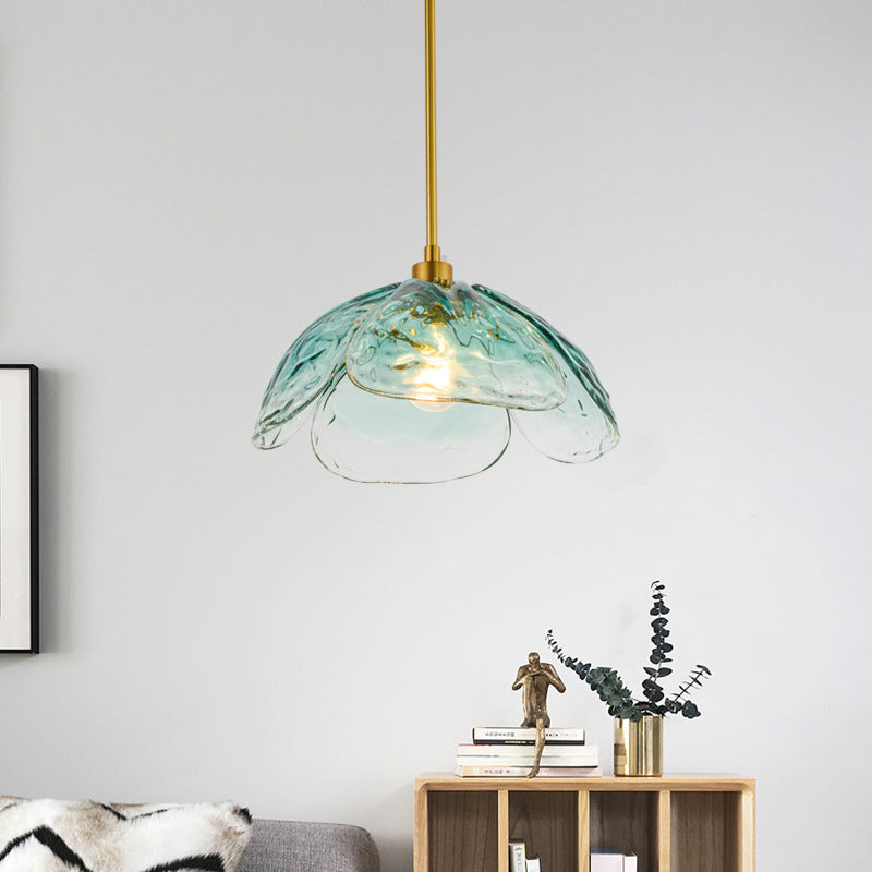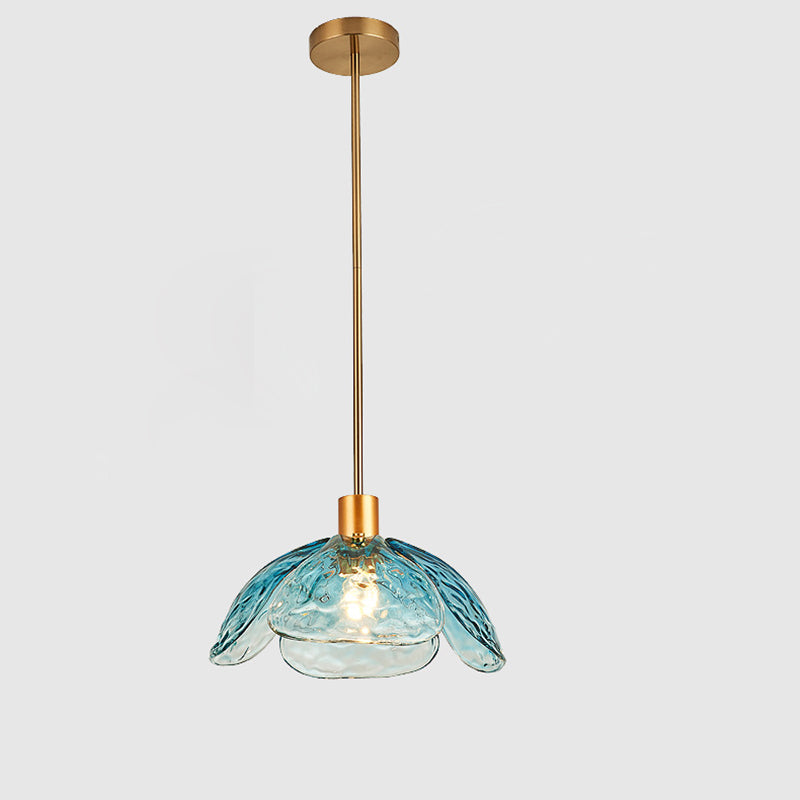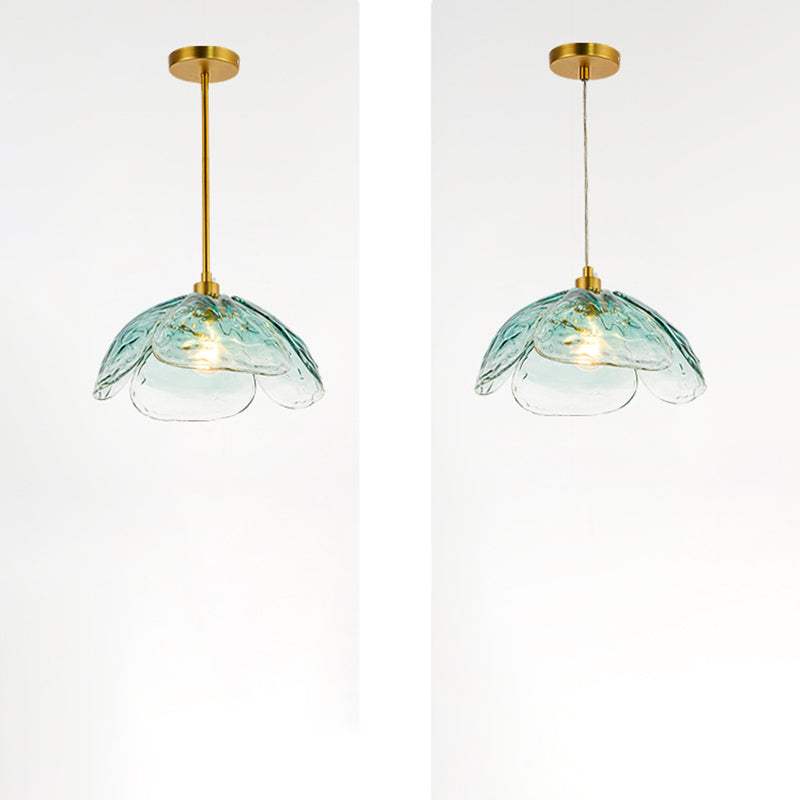 Contemporary Creative Petal Glass Design Brass 1-Light Pendant Light For Bedroom
