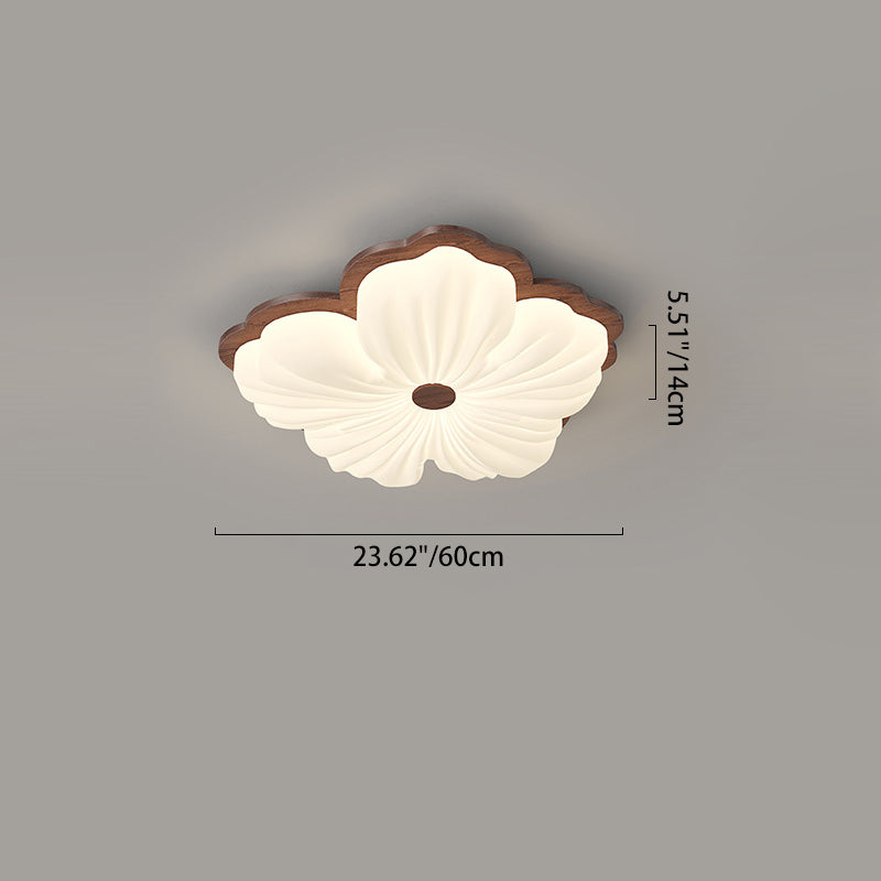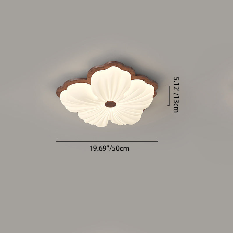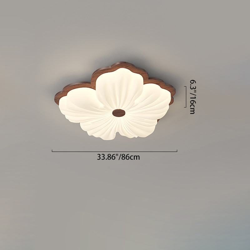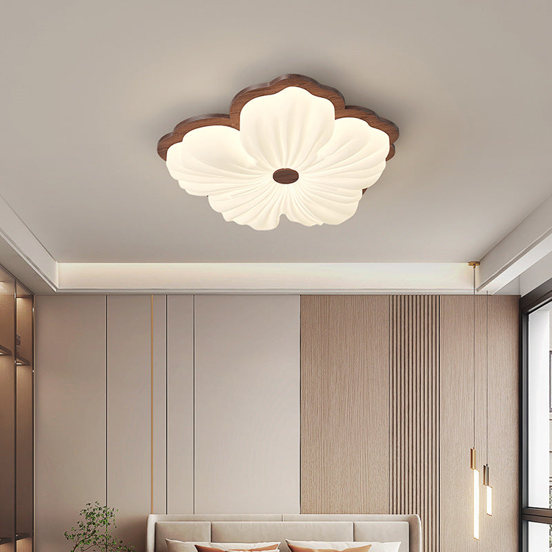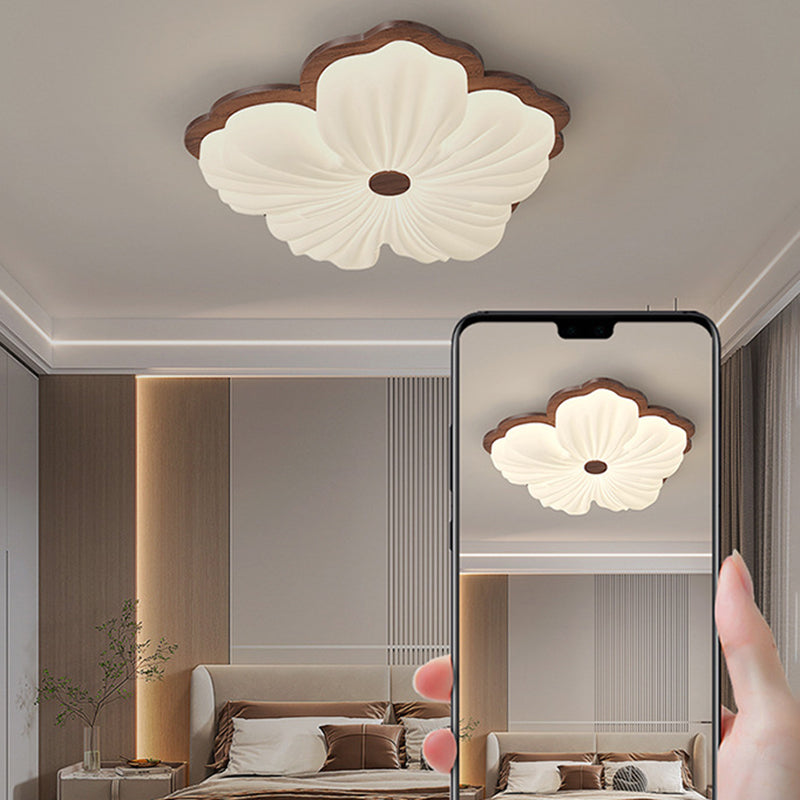 Contemporary Creative Petal Shape PE Rubberwood LED Flush Mount Ceiling Light For Bedroom