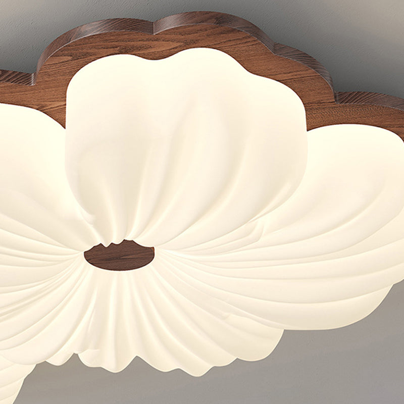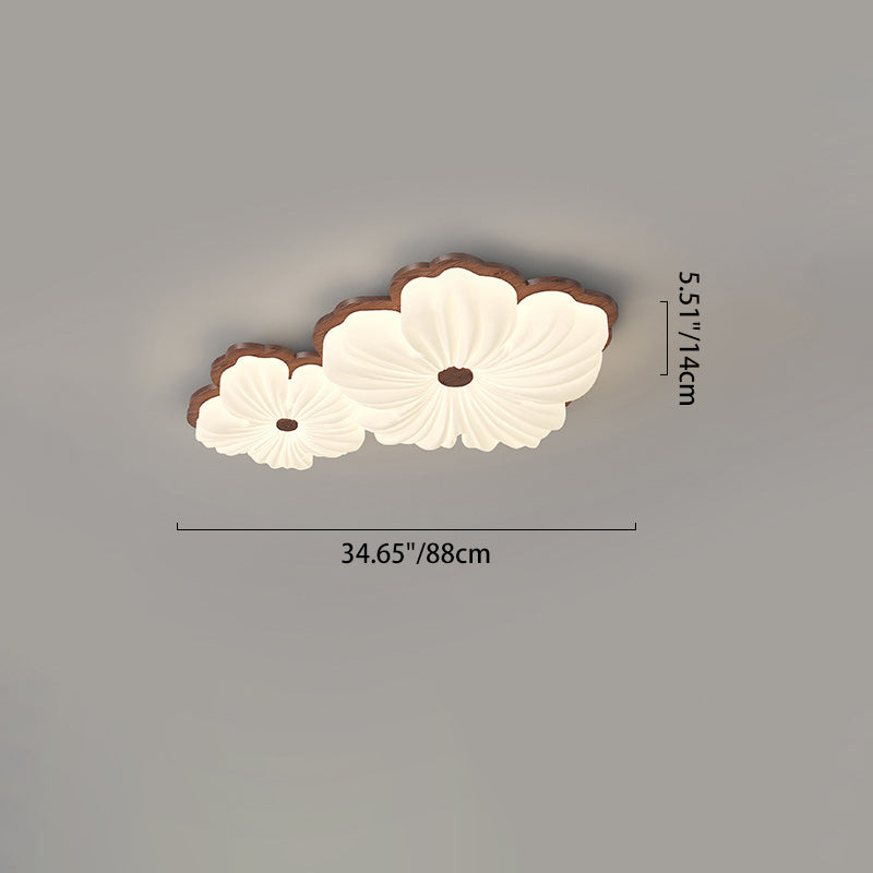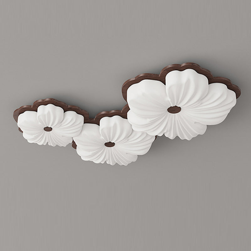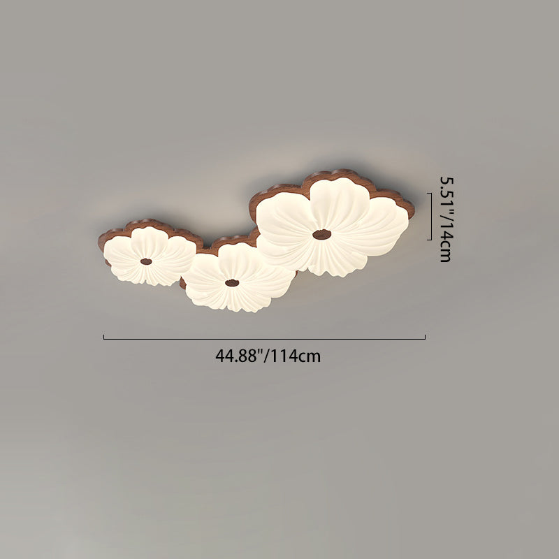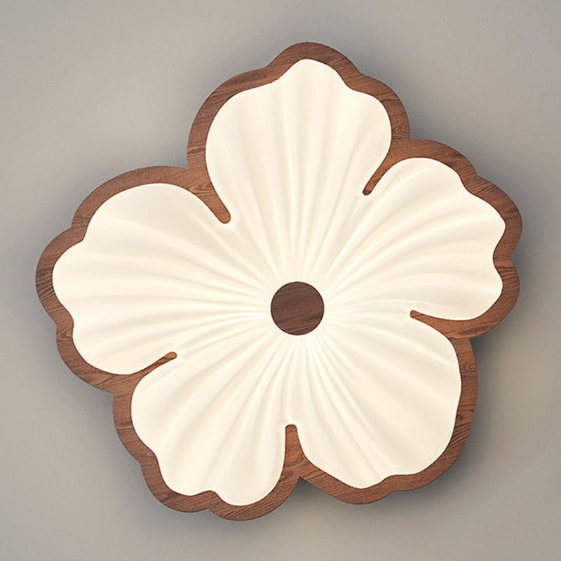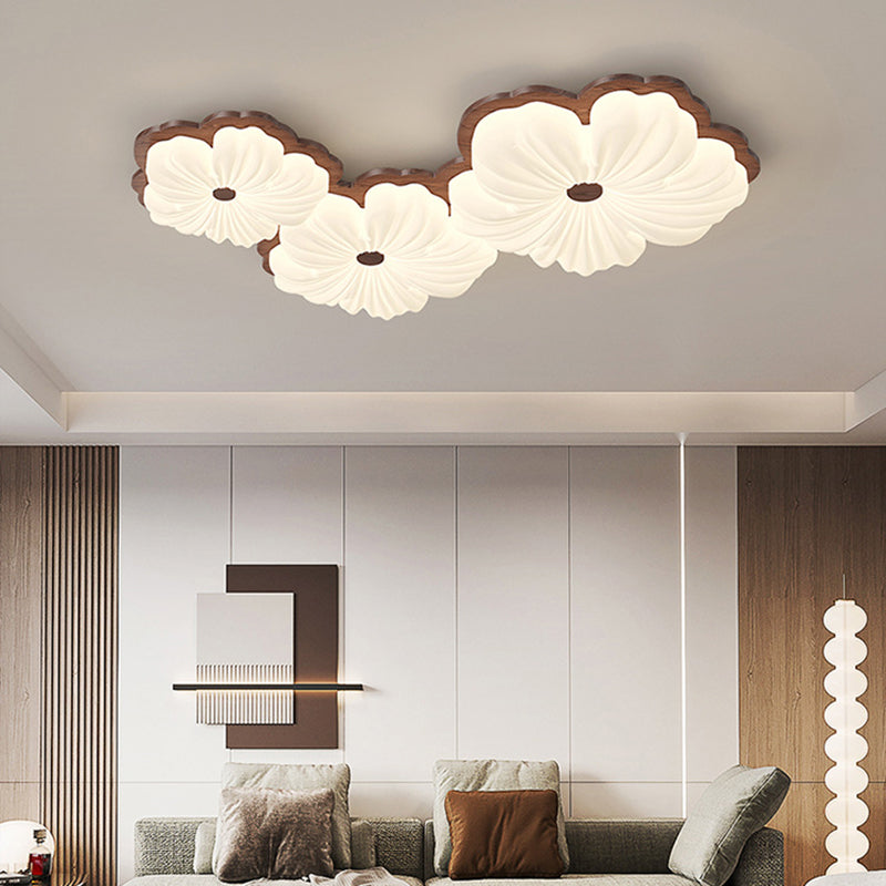 Contemporary Creative Petal Shape PE Rubberwood LED Flush Mount Ceiling Light For Bedroom